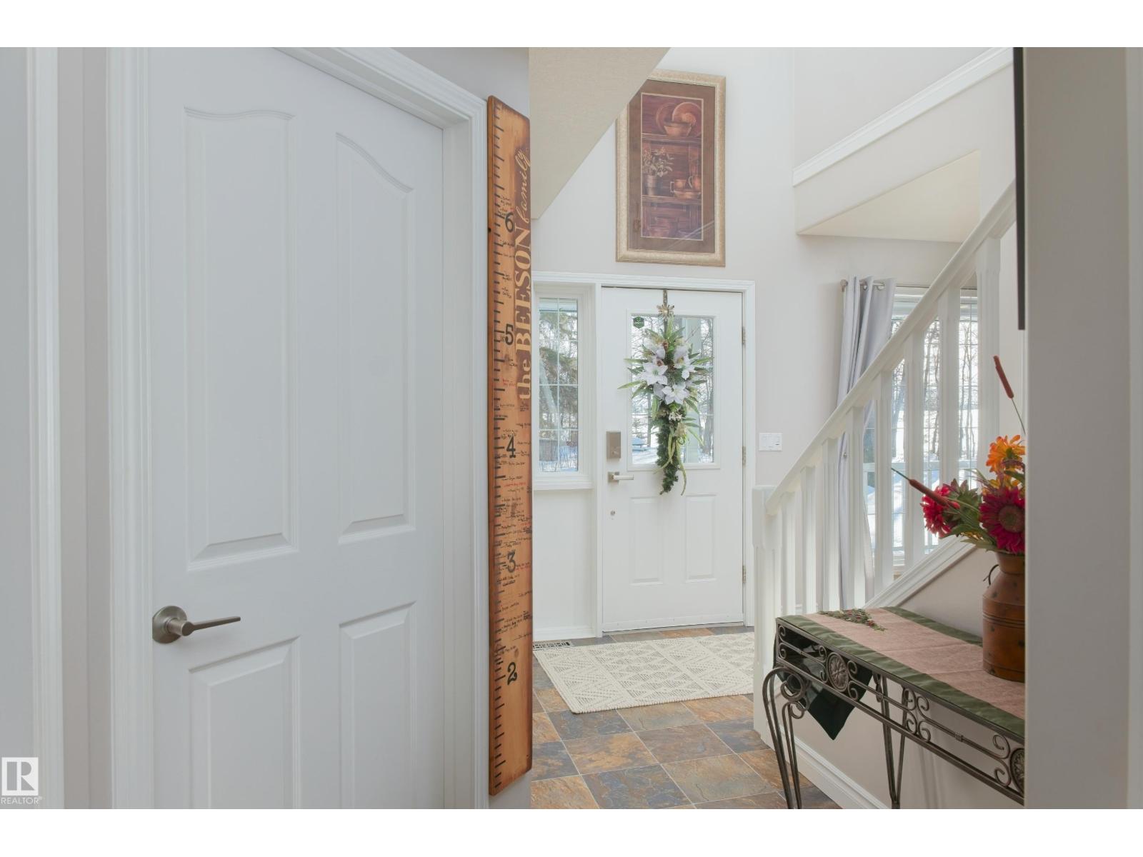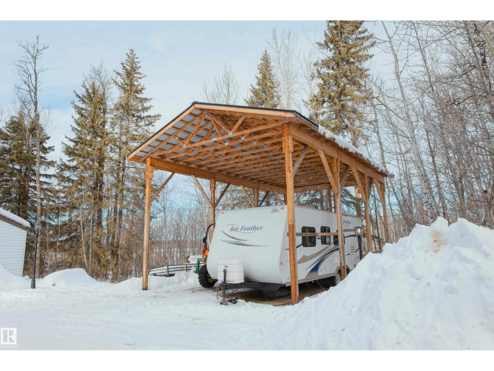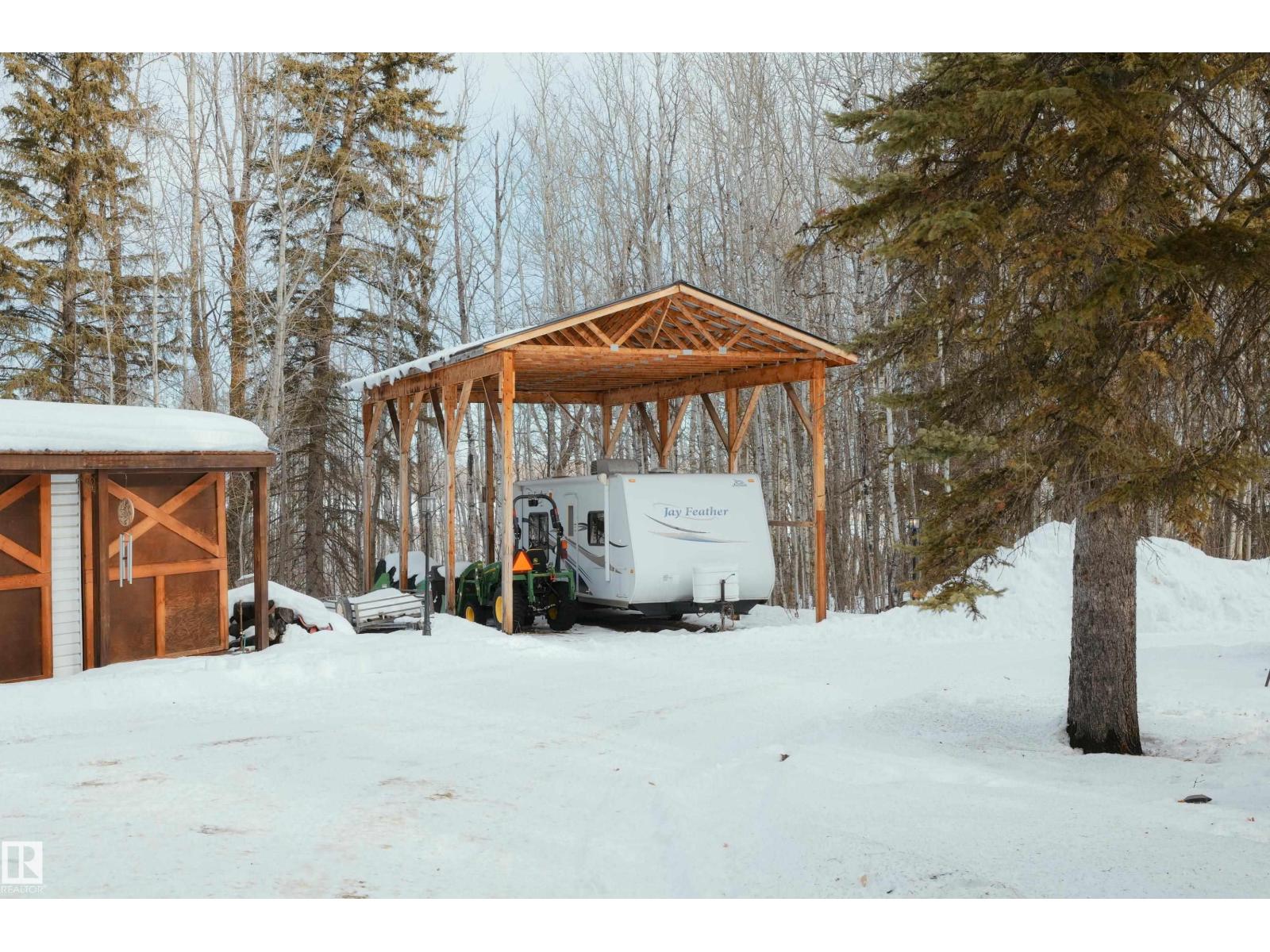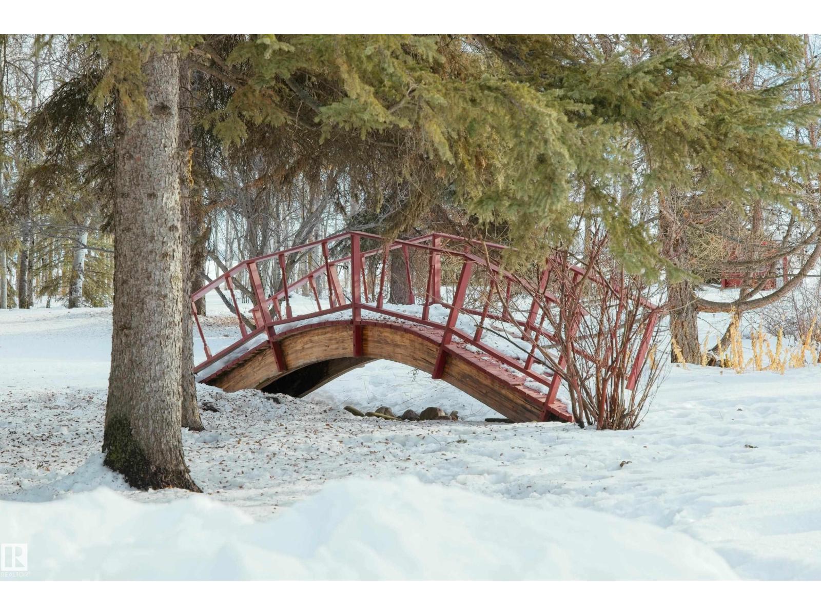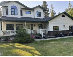 Remarkable 21.5 acre property only minutes North of Barrhead along hard top roads but privately situated amongst beautifully mature sheltering trees & bush cover. 1995 Story book 2 storey home features extensive style & upgrades including rich custom cabinetry & quartz countertops, plush bdrm carpeting, wood burning & infinity gas fireplaces & AC. Plan includes 4 bdrms pus flexible main floor office, 3.5 baths (exquisite ensuite), convenient main floor laundry & amazing basement family room w/ must be seen one of a kind entertainment bar. Gorgeous yard site provides a personal paradise full of atmosphere setting highlights. Seasonal creek w/ bridge, garden plot, dugout, fire pit entertainment area, back deck hot tub & covered gazebo. Quality double car attached garage along w/ oversized detached heated work shop, timber framed yard & rec storage plus high wall R.V shelter. An absolute lifetime find of a property w/ the size of acres, quality of home, magical atmosphere & unparralleled location. Must See! (33735842)