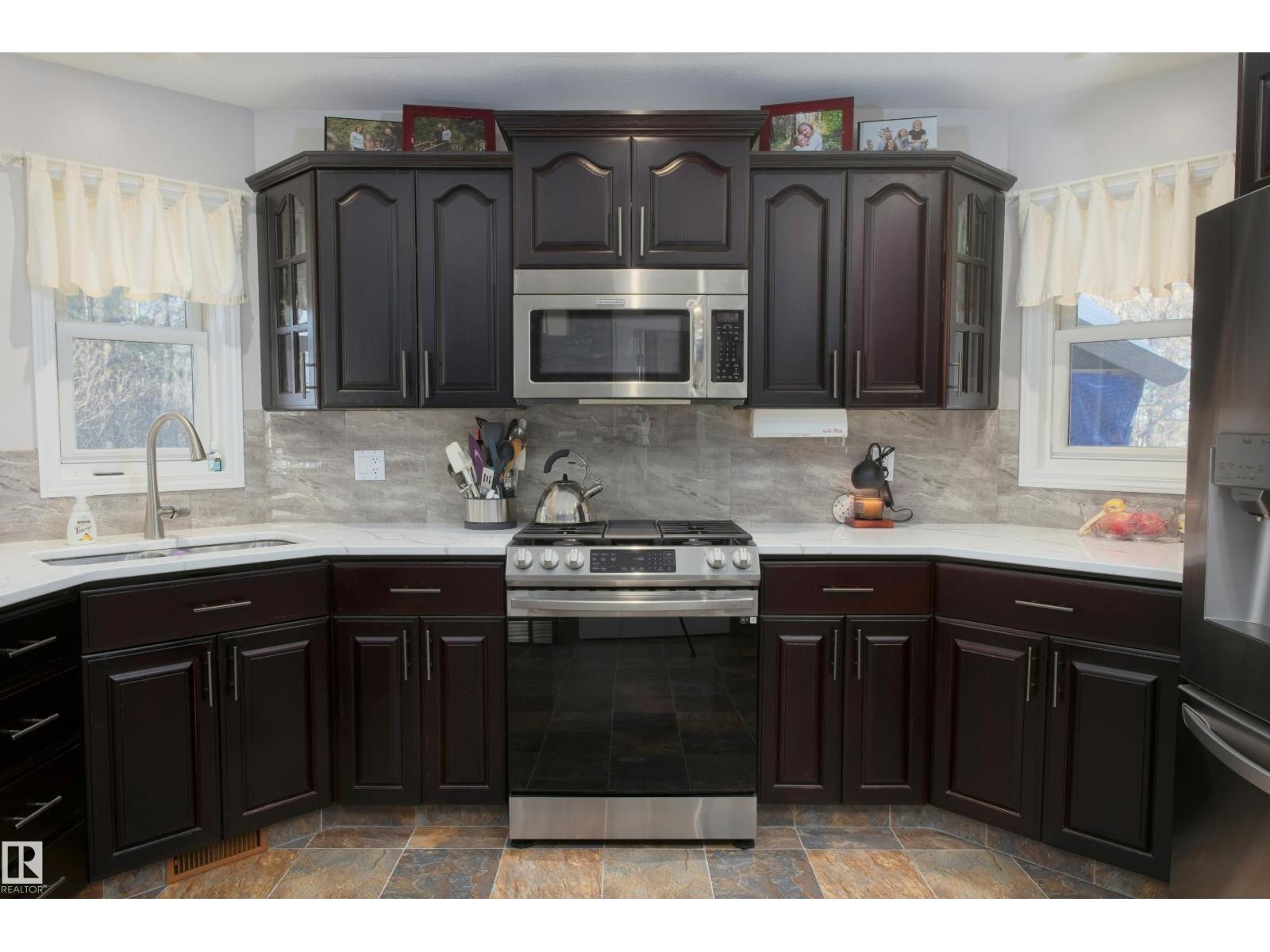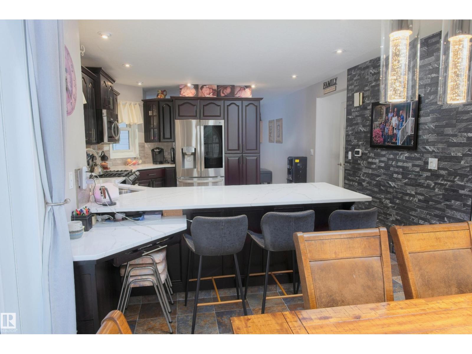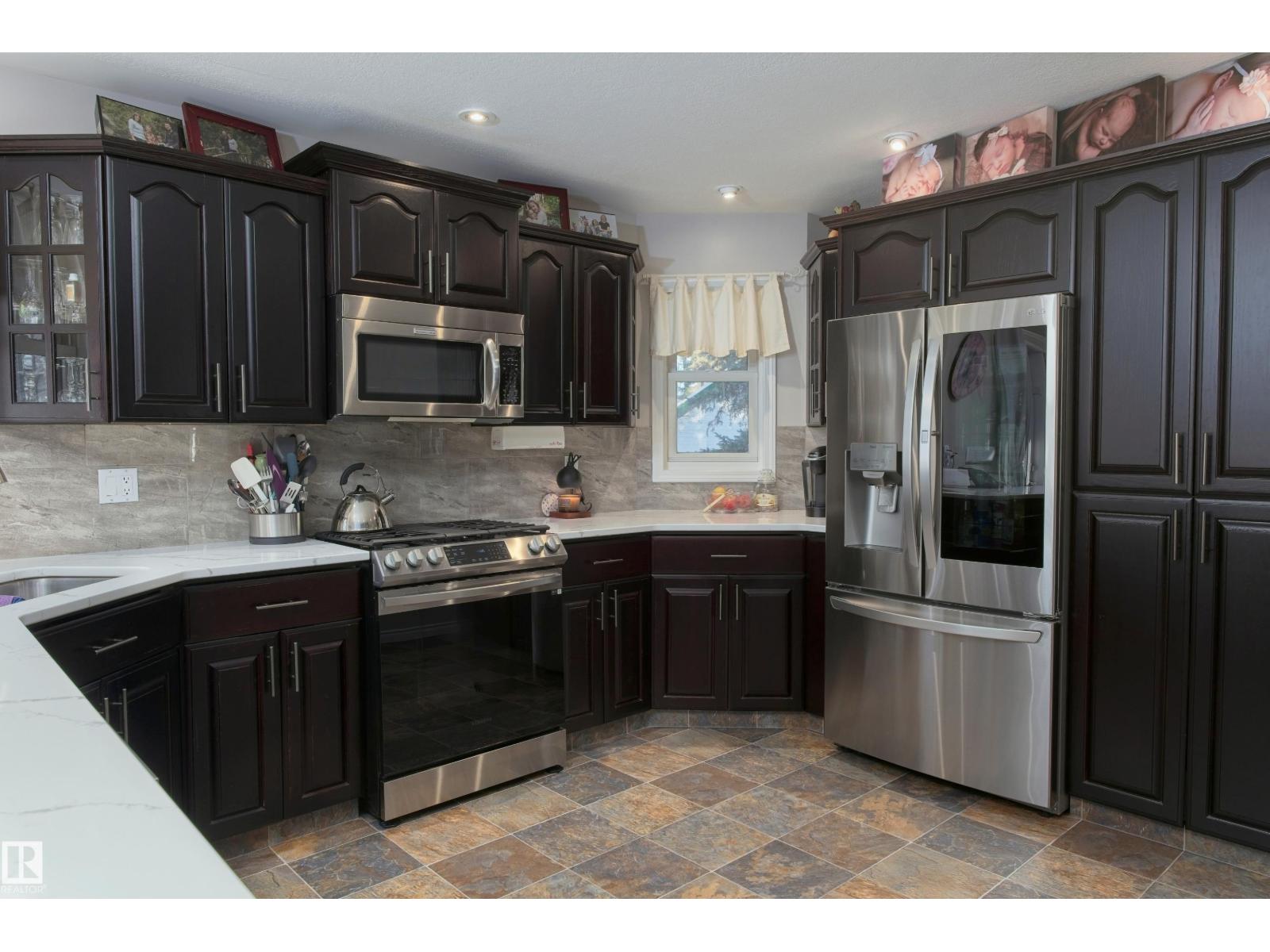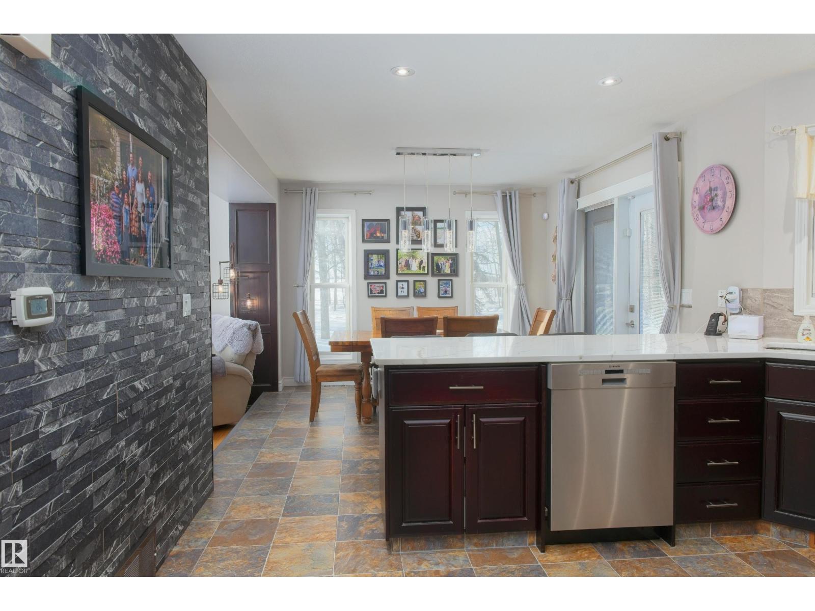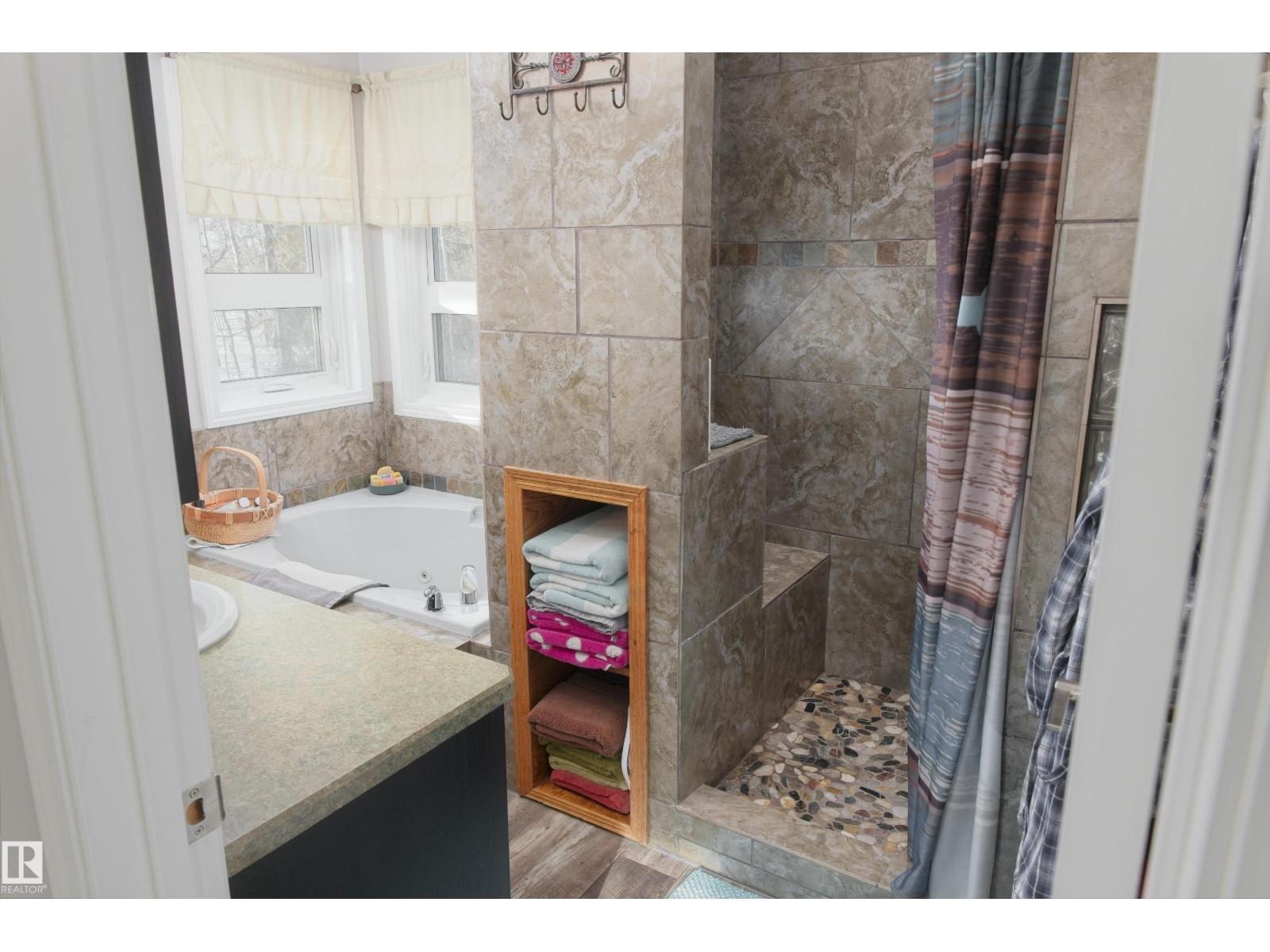 Remarkable 21.5 acre property only minutes North of Barrhead along hard top roads but privately situated amongst beautifully mature sheltering trees & bush cover. 1995 Story book 2 storey home features extensive style & upgrades including rich custom cabinetry & quartz countertops, plush bdrm carpeting, wood burning & infinity gas fireplaces & AC. Plan includes 4 bdrms pus flexible main floor office, 3.5 baths (exquisite ensuite), convenient main floor laundry & amazing basement family room w/ must be seen one of a kind entertainment bar. Gorgeous yard site provides a personal paradise full of atmosphere setting highlights. Seasonal creek w/ bridge, garden plot, dugout, fire pit entertainment area, back deck hot tub & covered gazebo. Quality double car attached garage along w/ oversized detached heated work shop, timber framed yard & rec storage plus high wall R.V shelter. An absolute lifetime find of a property w/ the size of acres, quality of home, magical atmosphere & unparralleled location. Must See! (33735842)