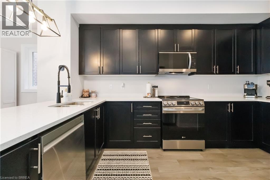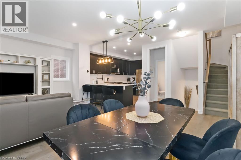 Welcome to this beautifully upgraded end-unit townhome in Brantford’s highly sought-after North End. Offering one of the largest floor plans in the complex, this home features a bright foyer leading to a spacious open-concept main level with seamless living, dining, and kitchen areas—perfect for everyday living and entertaining. The modern kitchen boasts granite countertops, stainless steel appliances, and a large peninsula with seating. Step out through the garden door to a fully covered balcony, ideal for year-round enjoyment. A convenient powder room completes the main floor. Upstairs, you’ll find three generous bedrooms, including a primary suite with walk-in closet and private ensuite, plus an additional full bath and second-floor laundry. Ideally located close to schools, parks, shopping, and amenities, with a new park currently being developed behind the property. A move-in-ready home offering space, comfort, and an excellent North End location. (70059973)