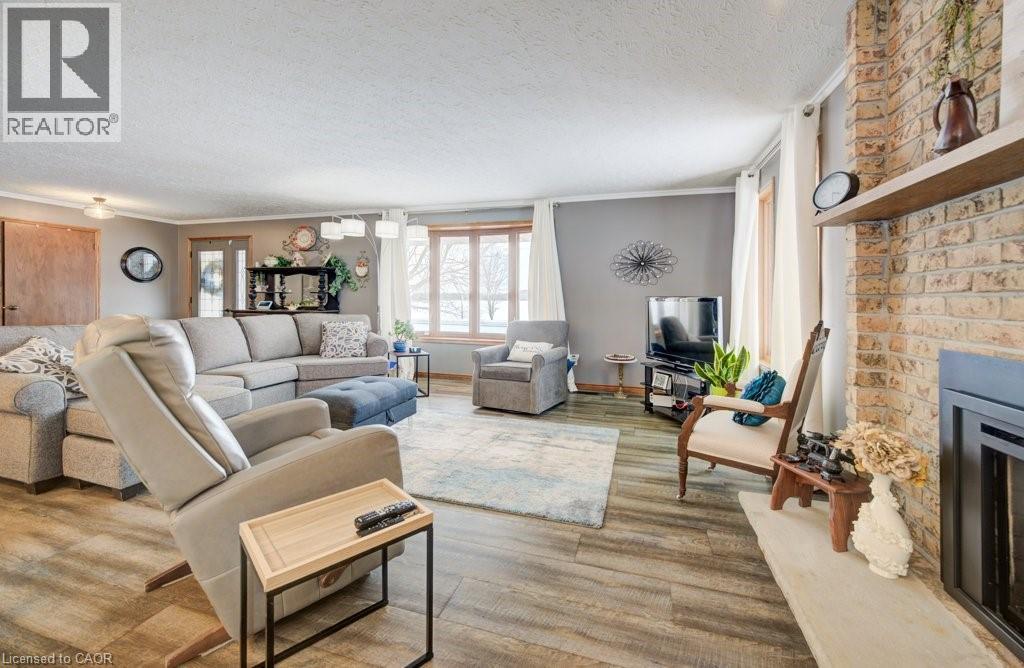 Welcome to 1A Crawford Street, where executive living meets peaceful country charm at the end of a quiet dead-end street just outside of Wingham. This all-brick bungalow offers privacy, space, and refined finishes while remaining minutes from town amenities, the hospital, Maitland Links Golf Course, Lake Huron, and the Blyth Festival, with easy access to London, Kitchener, Waterloo, and Cambridge. The bright open-concept main floor is ideal for everyday living and entertaining, featuring a custom kitchen with quartz countertops, built-in appliances, pantry storage, a breakfast bar island, and coffee bar, flowing into a warm living area anchored by a natural gas fireplace and beautiful brick hearth. The spacious primary bedroom includes a walk-in closet with built-in organizers and a private 4-piece ensuite, complemented by two additional bedrooms, a second main floor bathroom, and convenient main-floor laundry. The fully finished basement adds incredible versatility with a natural gas ‘woodstove’, expansive recreation and bar area, pool table space, a soundproof office, additional bathroom, and ample storage. Outside, enjoy a private composite deck surrounded by mature maples and sweeping farmland views, along with a covered front porch, landscaped yard, gardens, fire pit area, and oversized double garage. Thoughtfully upgraded, energy efficient, and offering a flexible closing, this exceptional home delivers comfort, functionality, and a serene setting in one impressive package. (70064824)