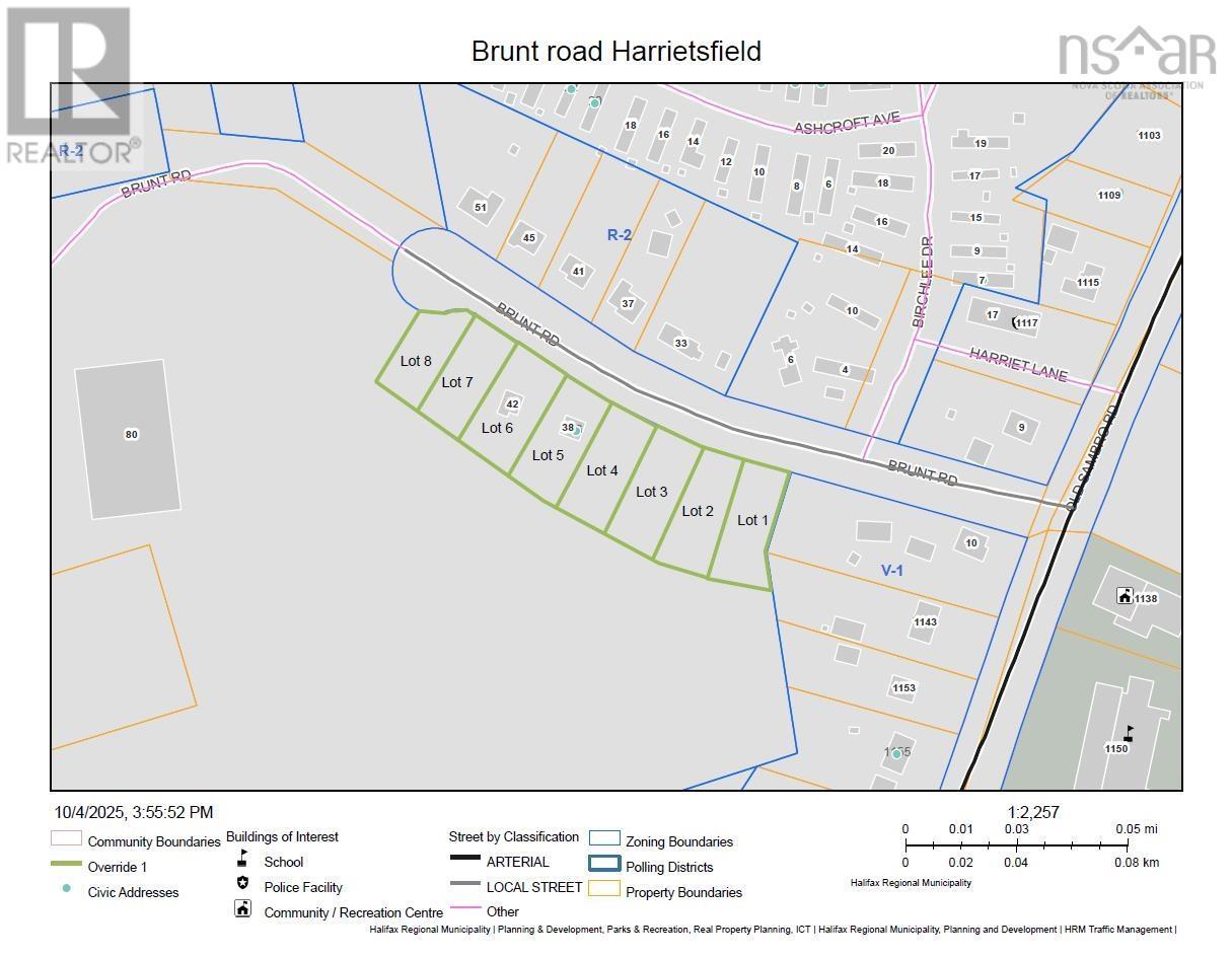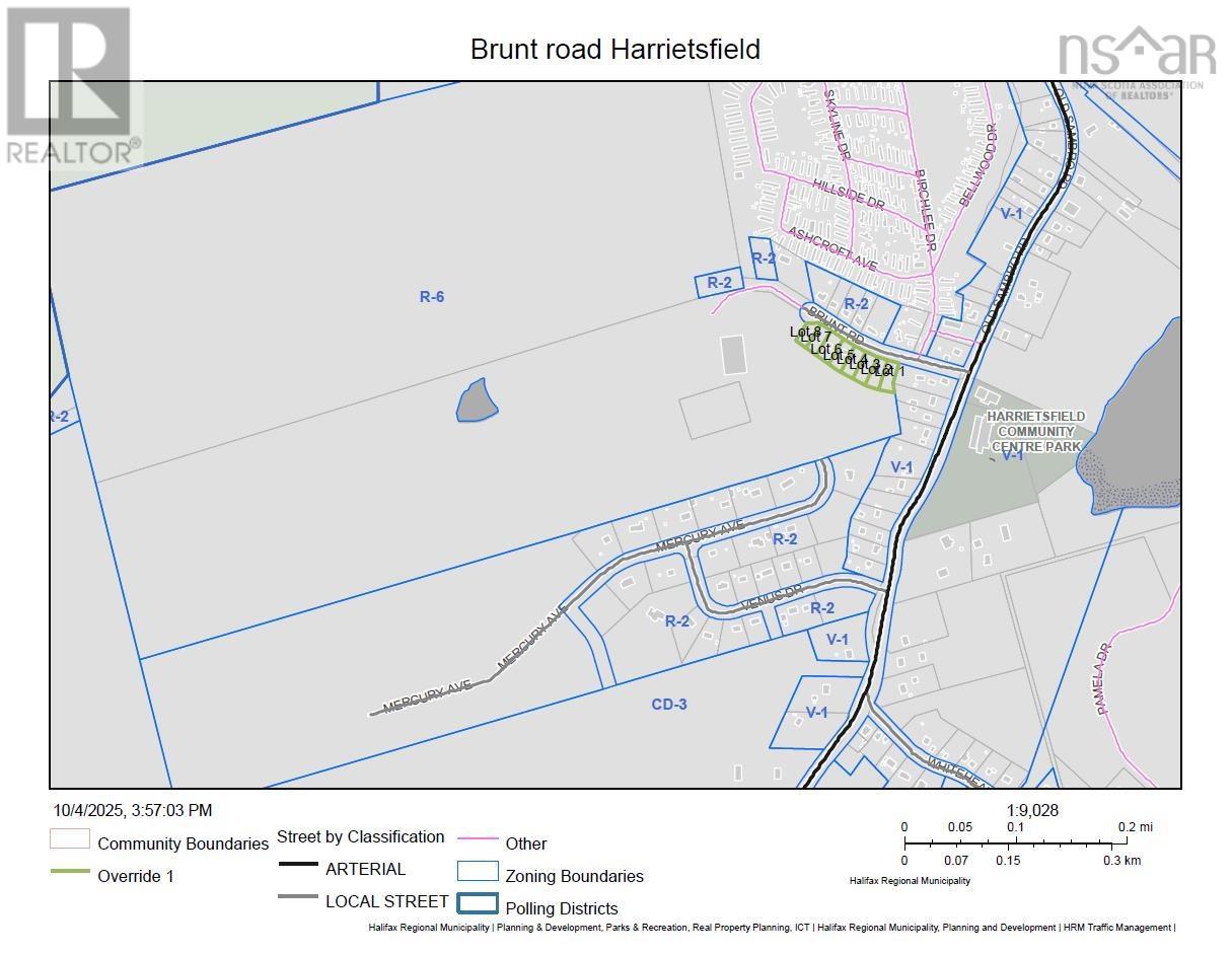 INVESTOR ALERT!! R-6 zoned development land directly across from Harrietsfield Elementary with preliminary HRM approval for 5-lot subdivision and survey work underway to finalize the plan. Clean slate! All prior structures removed, mostly cleared interior with treed buffers and existing driveway access off Brunt Road, ready for efficient servicing and phased construction. Prime location in an established residential community with nearby homes, school, church, lakes, and recreation, plus convenient Old Sambro Road access to Halifax and area amenities. Rare opportunity to control a large contiguous landholding in a tightening HRM market-build phase one with five approved lots today while banking remaining acreage for future growth and policy shifts. An opportunity not to be missed; invest in your future (231866901)