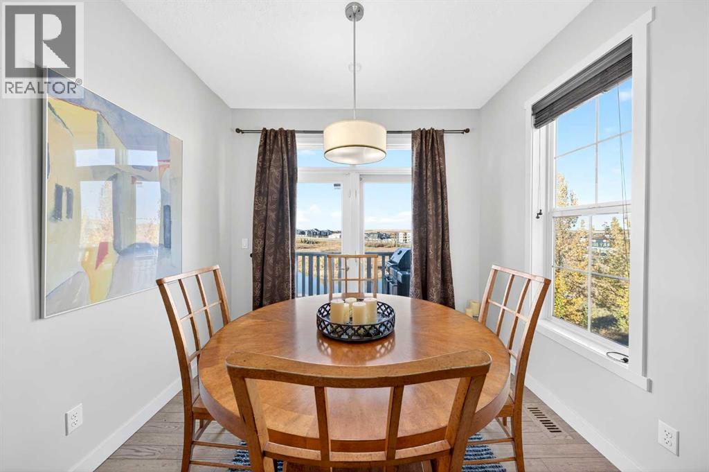 Discover this stunning End-Unit Townhouse in Nolan Hill, backing onto a peaceful Pond, Green Space, and Walking Paths—no neighbors behind! This home features 3 Bedrooms, 2.5 Baths, and 1,546 sq. ft. of thoughtfully designed living space.Step into the Main Floor with 9’ ceilings and gleaming hardwood floors throughout the Open-Concept Layout. The Kitchen showcases a Central Island, Raised Eating Bar with Quartz Countertops, Stainless Steel Appliances, plus a convenient Pantry. The Living Room includes a Juliet Balcony, while the Dining Area opens onto a Balcony with Gas Hookup, perfect for BBQs while enjoying serene Pond views. A Half Bath with Window completes the Main Level.On the upper level, the Primary Bedroom offers a Walk-In Closet, 3-Piece Ensuite with a standing shower and seat, and a large window overlooking the Pond. Two additional Bedrooms, one with a Walk-In Closet, share a 4-Piece Bathroom, and the Upper-Level Laundry adds practicality.Additional highlights include a Double Attached Tandem Garage with a rear room that’s perfect for a Gym or Workshop, plus Visitor Parking conveniently next to the unit. Within walking distance to Green Space Pathways, Shopping, and Public Transit, with easy access to Shaganappi Trail and Stoney Trail.Don’t miss this rare opportunity to enjoy Nolan Hill living at its finest! (31545573)