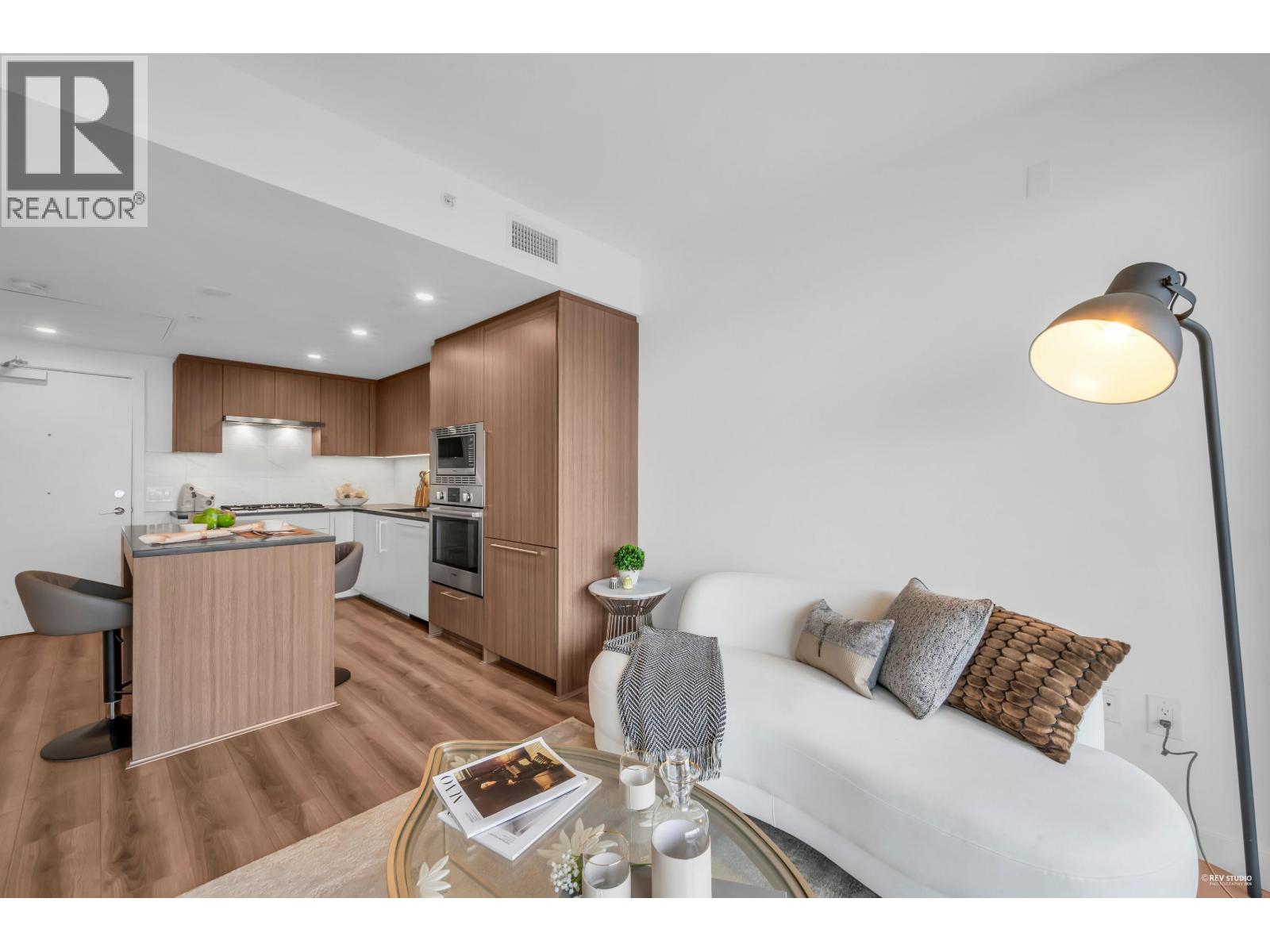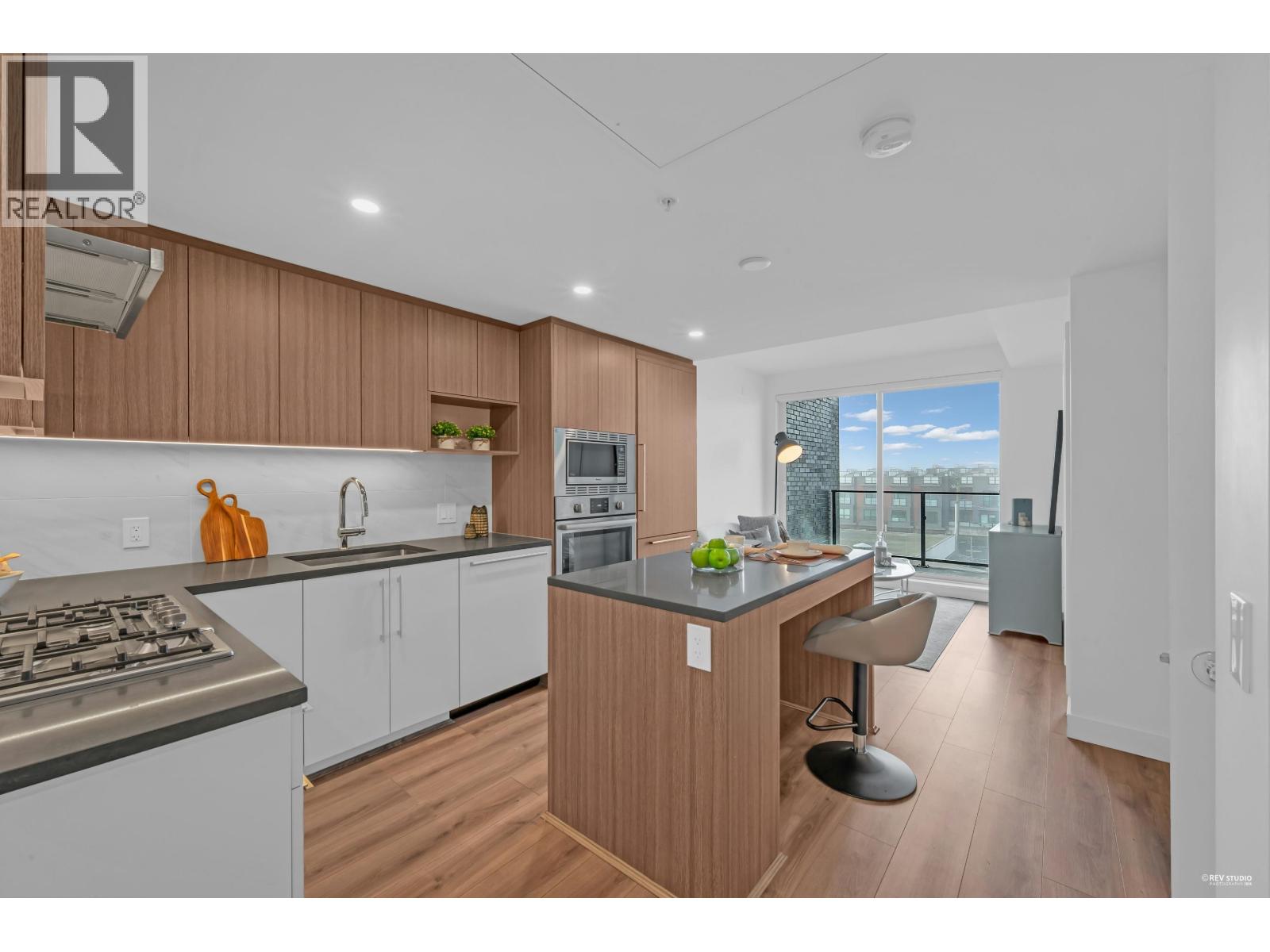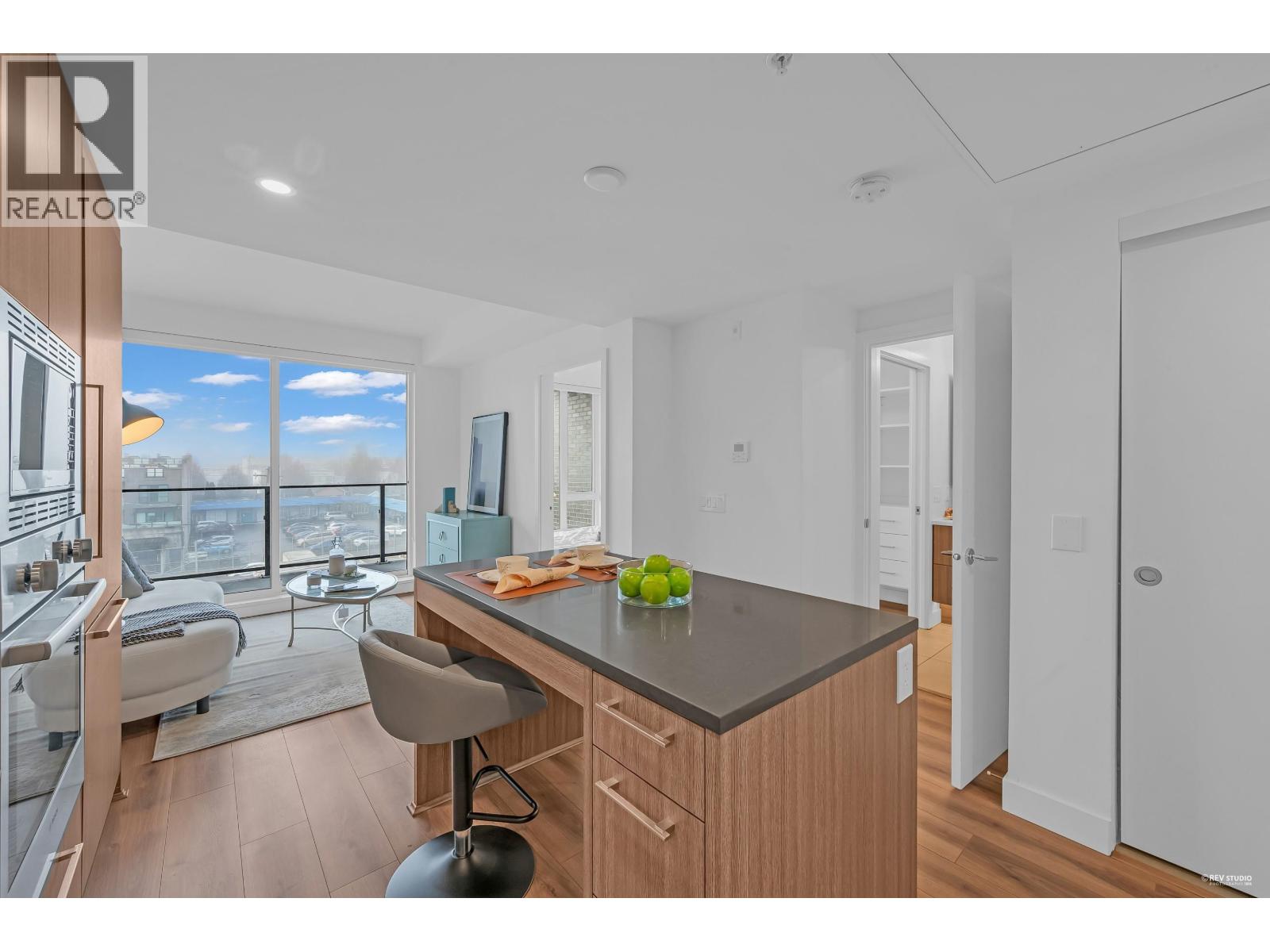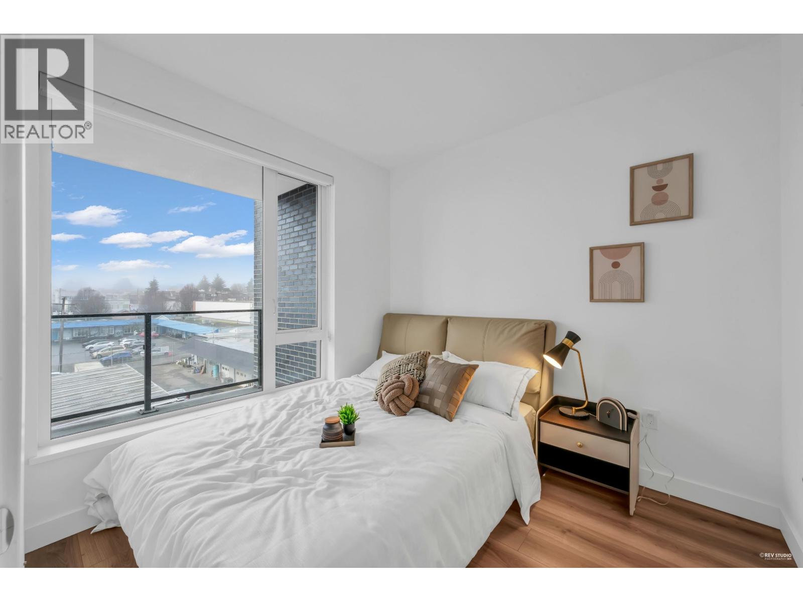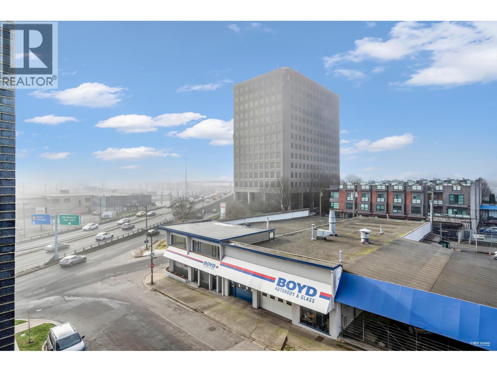 CALLING ALL INVESTORS AND FIRST TIME HOME BUYERS! This 449 SF 1 Bed 1 Bath home is on the QUIET side with UNOBSTRUCTED City View. Vancouver Westside's new luxury CONCRETE & AIR-CONDITIONED condo in the heart of Marpole! Functional floorplan with no wasted space, open kitchen features BOSCH stainless steel appliances: gas range, FULL-SIZE integrated fridge, plenty of counter space & cabinets for storage. Floor-to-ceiling windows in the living room provide tons of natural light & access to a 102 SF covered balcony! Bedroom can fit a King Size bed with a walk-through closet to a cheater ensuite wrapped in beautiful bath tiles & cabinetry. 1 PARKING & LOCKER. Rentals & Pets Allowed! Ezymart downstairs, 5 minutes drive to YVR, Marine Drive Skytrain, T&T Supermarket, Cineplex, retail & dining! (32346966)