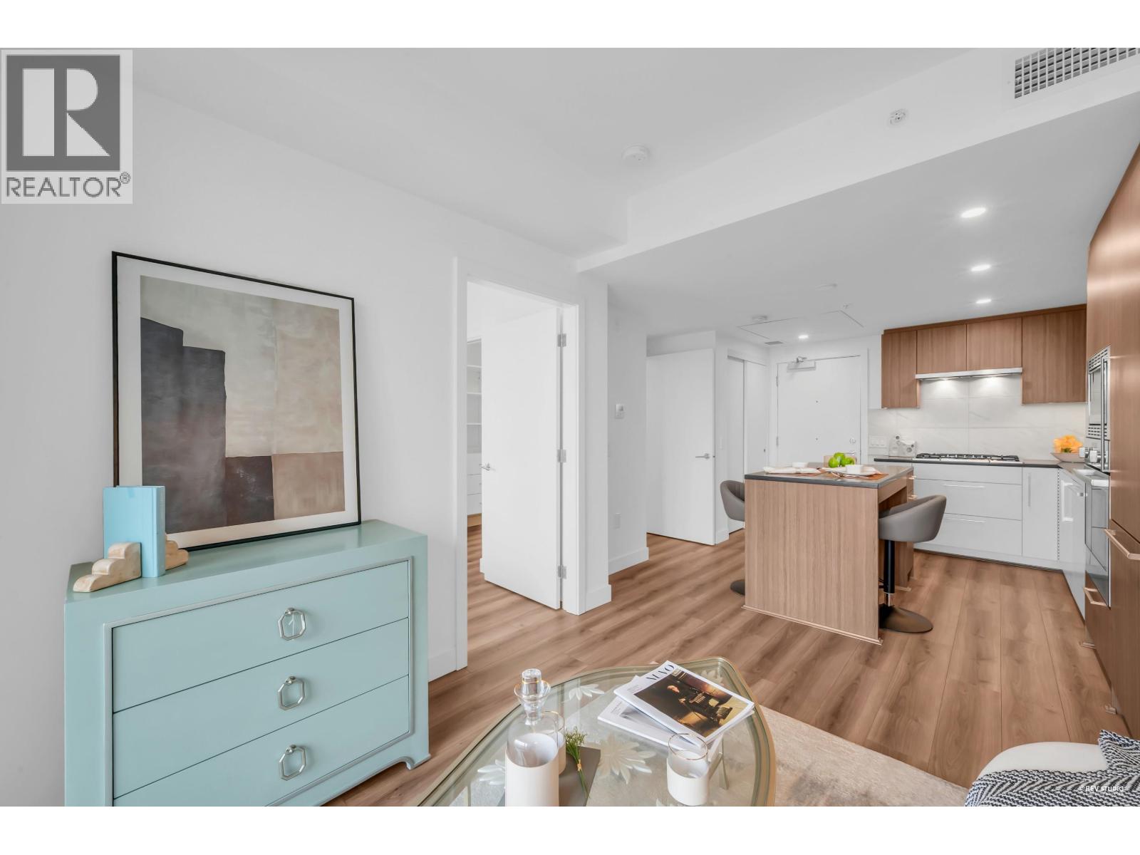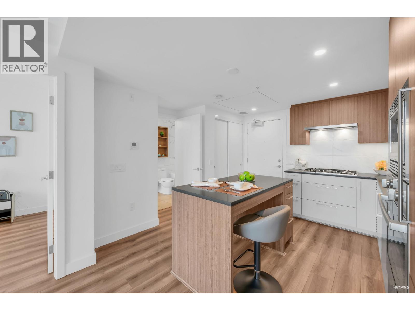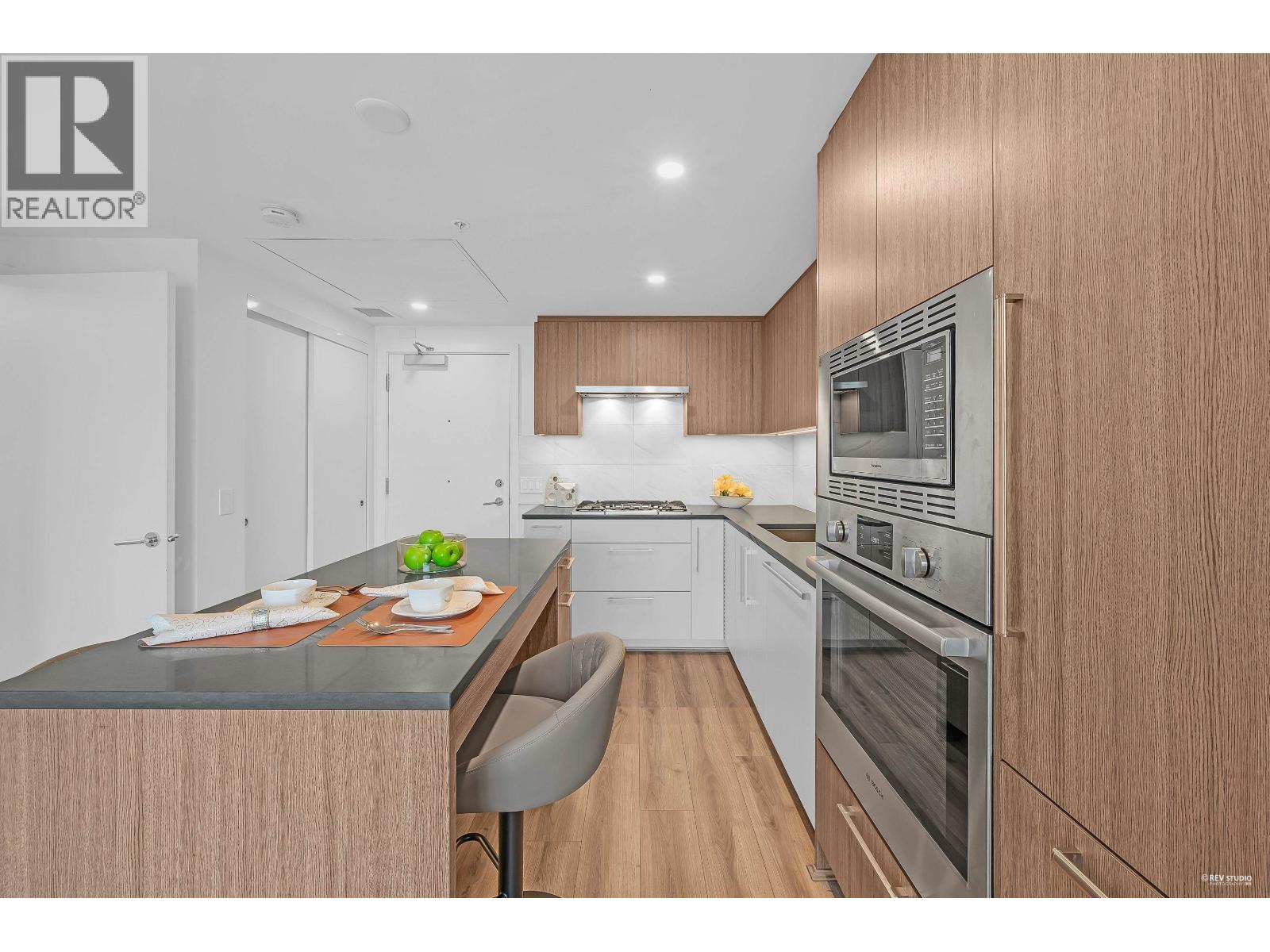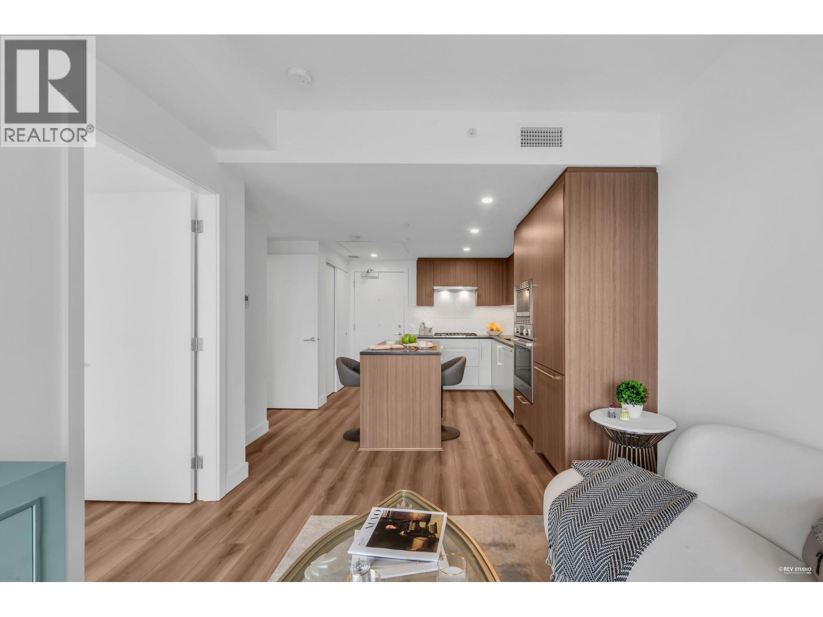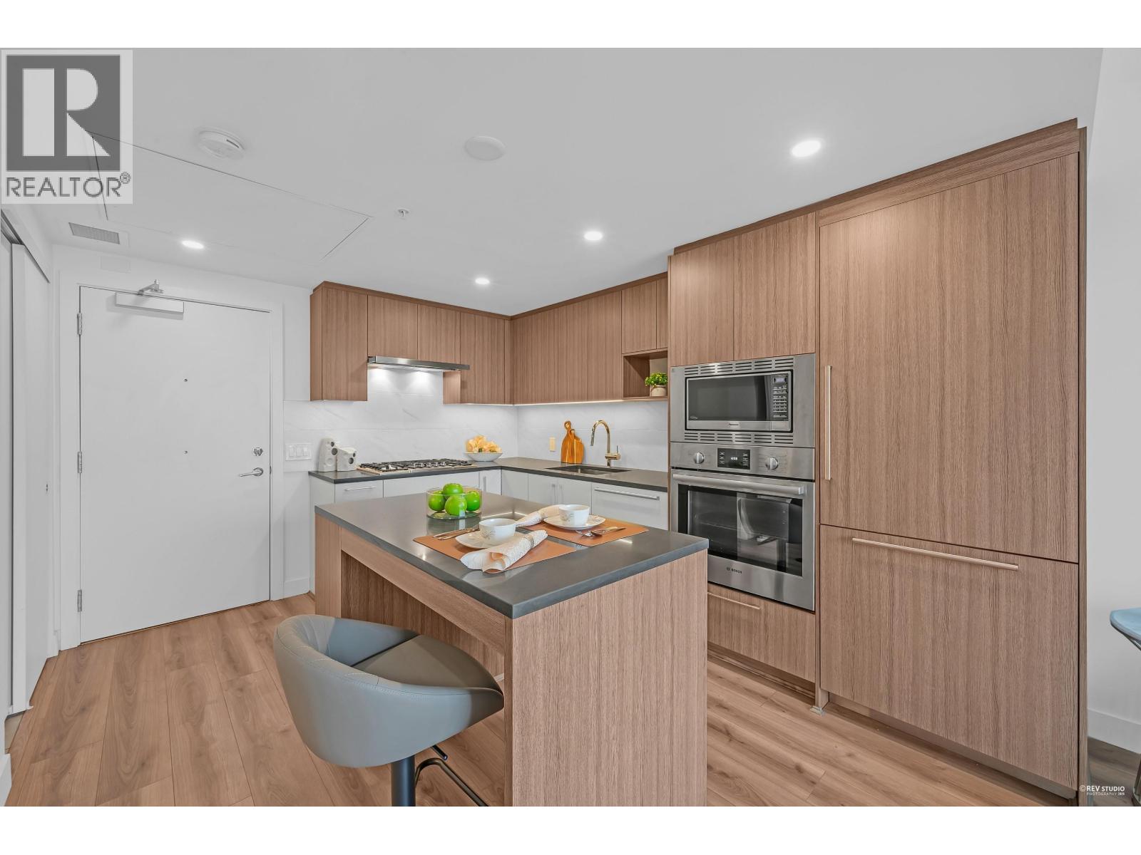 CALLING ALL INVESTORS AND FIRST TIME HOME BUYERS! This 449 SF 1 Bed 1 Bath home is on the QUIET side with UNOBSTRUCTED City View. Vancouver Westside's new luxury CONCRETE & AIR-CONDITIONED condo in the heart of Marpole! Functional floorplan with no wasted space, open kitchen features BOSCH stainless steel appliances: gas range, FULL-SIZE integrated fridge, plenty of counter space & cabinets for storage. Floor-to-ceiling windows in the living room provide tons of natural light & access to a 102 SF covered balcony! Bedroom can fit a King Size bed with a walk-through closet to a cheater ensuite wrapped in beautiful bath tiles & cabinetry. 1 PARKING & LOCKER. Rentals & Pets Allowed! Ezymart downstairs, 5 minutes drive to YVR, Marine Drive Skytrain, T&T Supermarket, Cineplex, retail & dining! (32346966)