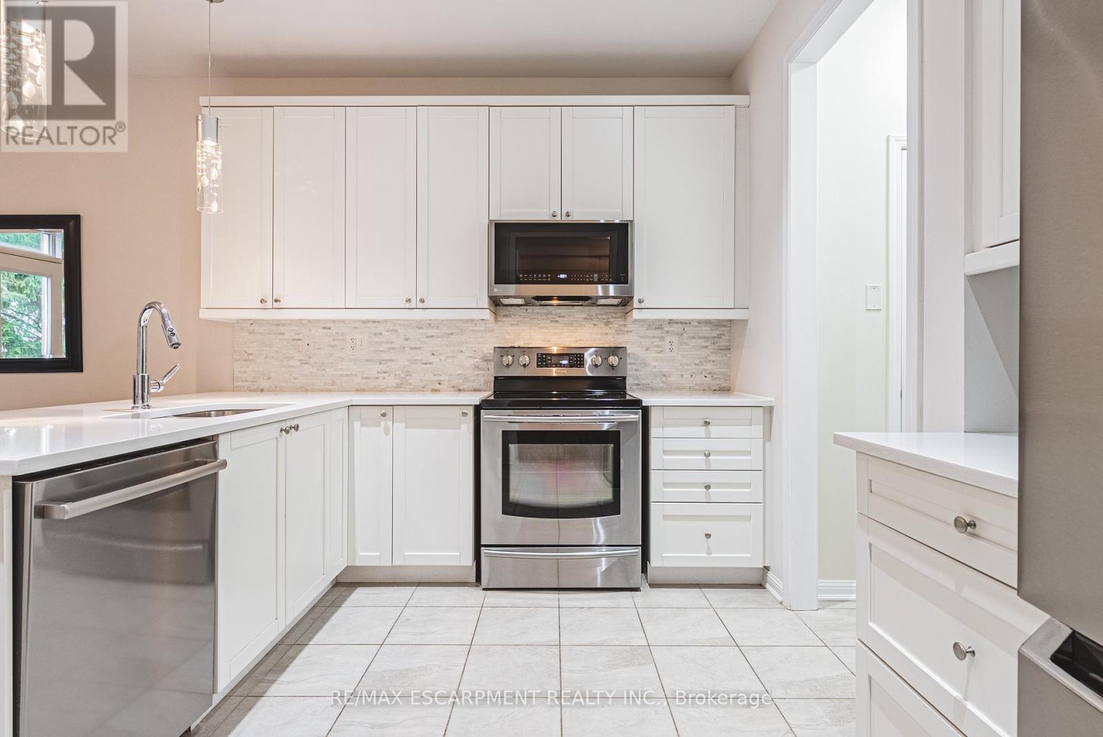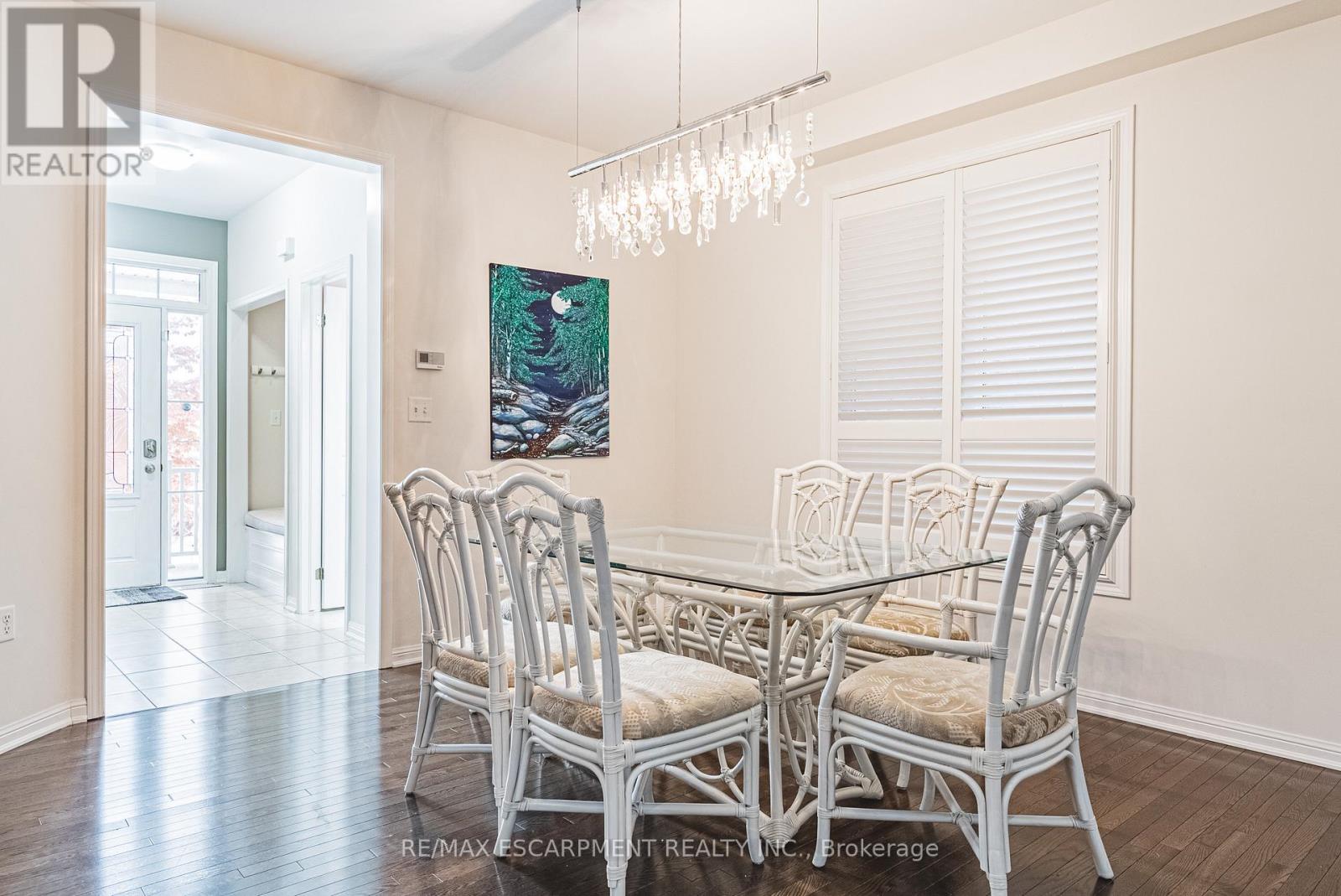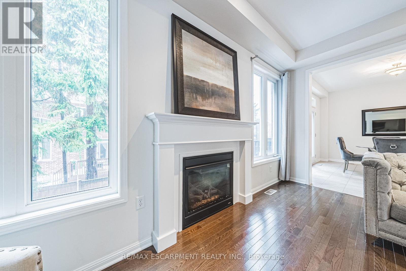 Spectacular 4-bedroom home with walk-out basement, ideally located across from a park and within walking distance to schools. This beautifully designed residence features a sleek, open-concept layout with impressive kitchen including quartz countertops, stainless steel dishwasher and microwave, elegant marble backsplash, breakfast bar, kitchen dining area with patio doors to balcony, extended upper shaker cabinetry, full-wall pantry, pot drawers and a lazy Susan-perfect for both everyday living and entertaining. This family friendly home also offers a separate formal dining area, adding versatility and charm and open to the impressive great room showcasing coffered 9-foot ceilings, smooth finishes, rich dark-stained hardwood floors, and an abundance pot lighting, creating a refined, magazine-worthy ambiance. The welcoming foyer features a custom niche seating area and the main floor also includes a guest powder room. Enjoy this carpet free home with hardwood flooring & ceramic throughout the first and 2nd floors. The fully finished basement showcases laminate flooring, 4 piece bath, office, spacious Rec room with walk-out to the rear yard and ample storage. The second level boasts four generously sized bedrooms, including a luxurious primary suite with a spa-inspired ensuite featuring a glass shower, soaker corner tub, and elegant finishes. This 2nd floor also provides a second full bathroom and spacious laundry room for every day convenience. Close to all Ancaster has to offer, including shopping, restaurants, golf courses and more. Room sizes approximate. (41976247)