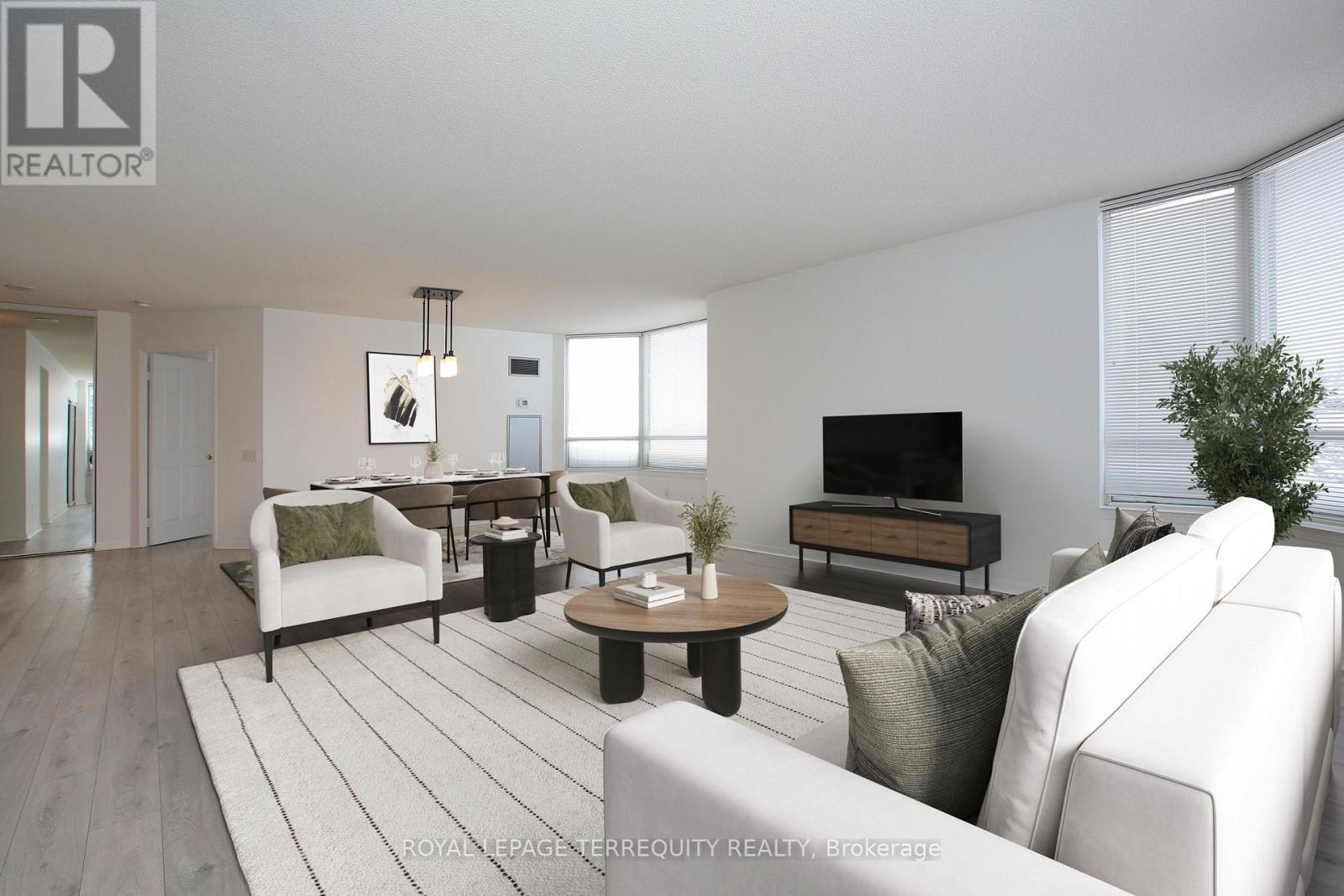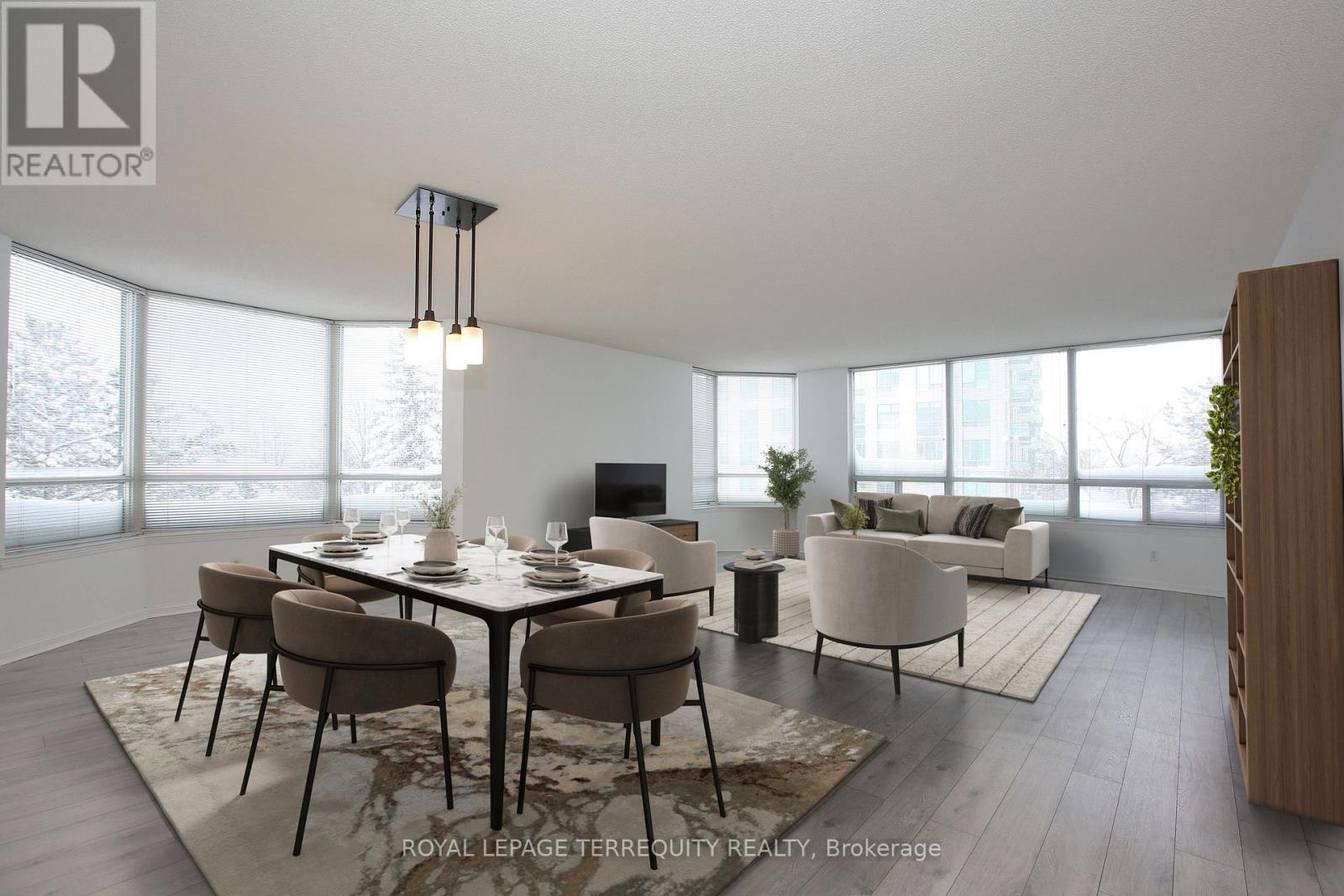 Spacious 1,500 Sq. Ft. Corner Unit Comes With 2 Walk-Out Balcony and Exposure to East, South and North!!!!!!!! Abundance of Natural Lights. Oversized Living and Dining Rooms. Fresh Paint Throughout. Laminate Flooring in Living, Dining and Bedrooms. Split Bedroom Plan With 2 Full Washroom. Fits King Size Bed in Master Bedroom With Large Walk-In Closet and a Double Door Closet. Steps From Promenade Mall, Bus Terminal, Walmart, Library, Schools and Restaurants. 24 Hr. Gatehouse Security, Guest Suite, Visitor Parking, Outdoor Pool and Tennis Court. ***Virtual Staging*** (41976637)