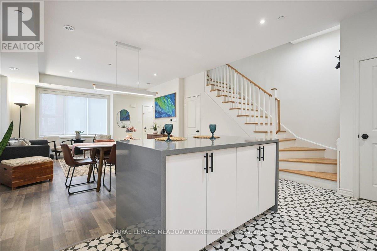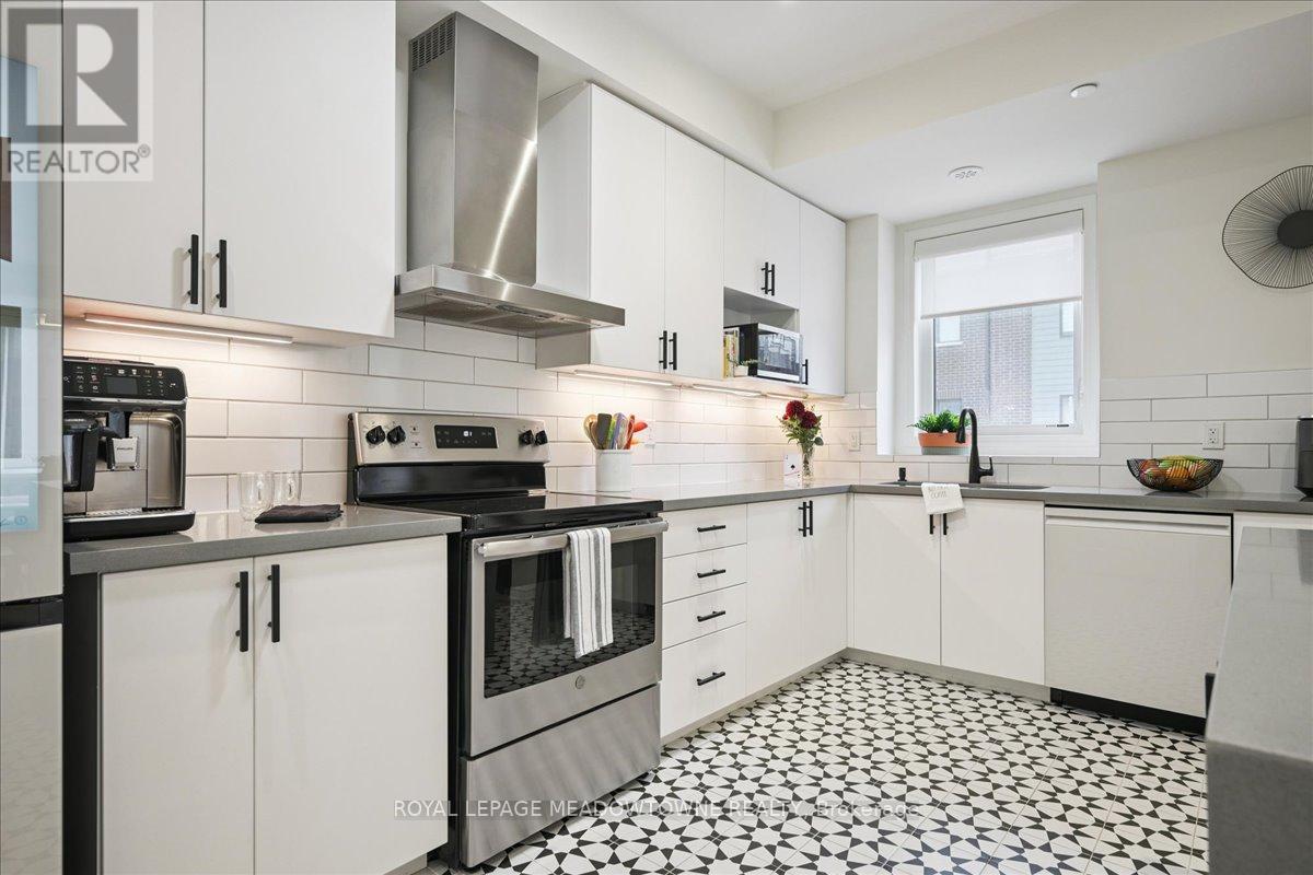 Great opportunity at Clarkson's Southdown Towns Awaits! Modern &Stunning 3Br + 3Ws end-unit townhome with south-facing exposure and a bright, functional 1,942 sq. ft. layout -the largest model. Features9-ft ceilings. Upgraded gourmet kitchen with quartz waterfall island, quartz countertops, backsplash, and a dreamed walk-in pantry. Newer Samsung appliances (2024-2025) with extended warranties (see Schedule of Inclusions). A true move-in ready gem. 2nd floor offers two spacious bedrooms, additional office/play space, laundry room, and a5-pc bath. The large primary bedroom floor includes walk-out to balcony, large W/I closet a 4-pc ensuite & a computer nook. Enjoy panoramic endless south views from rooftop terrace & balcony. Gas line on terrace (BBQ) & gas line in kitchen (future gas upgrade available).Owned tankless water heater. Upgraded plumbing fixtures with quartz &marble vanities. Roller shades & bedrooms blackout dual blinds. Underground parking directly below unit with private oversized storage room (7' x 14'). Visitor parking. Close to shopping, transit, highways, & 5-min walk to Clarkson GO Station+++ Shows A+ (41976636)