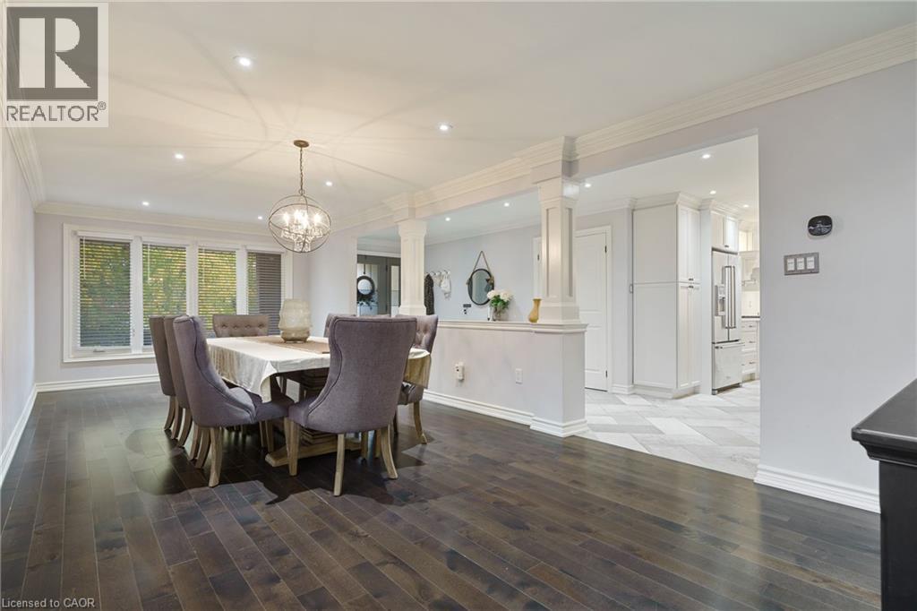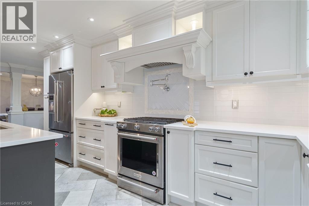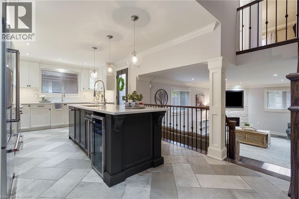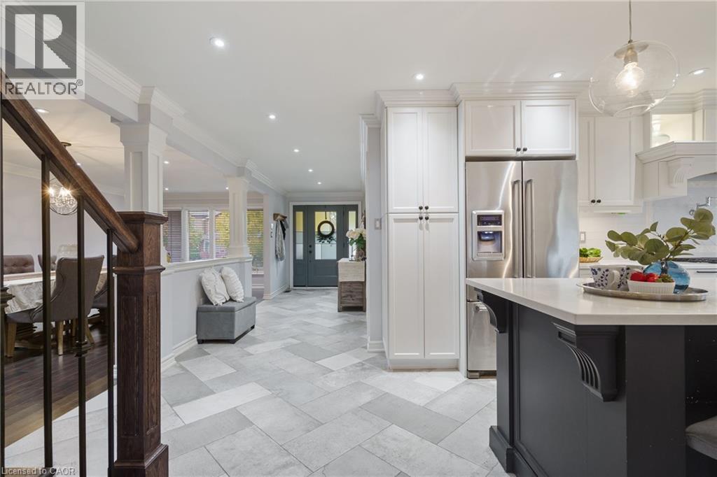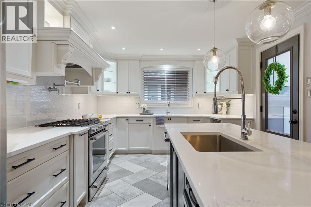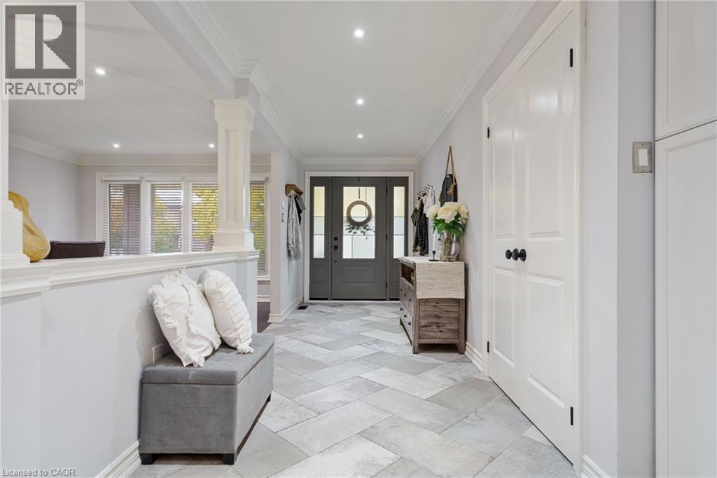 Welcome to this beautifully renovated all-brick 5-level backsplit offering over 2,005+ sq. ft. of finished living space above grade, perfectly situated on a quiet, tree-lined street just steps from Ferris Park. This exceptional home blends timeless craftsmanship with modern upgrades and offers excellent in-law potential, featuring a separate entrance to the basement with a second kitchen already in place. The main level showcases a bright open-concept layout with hardwood maple flooring, crown moulding, and pot lights throughout. The stunning custom maple kitchen is a true showpiece, featuring solid soft-close cabinetry, dual sinks, a 9-ft quartz island, pot filler over the gas stove, under-cabinet lighting, glass backsplash and stainless steel appliances—striking the perfect balance of beauty and function. Just two steps down, the spacious family room welcomes you with a custom-built stone gas fireplace, ideal for gatherings or relaxing nights in. Conveniently located on this level is a 3-piece bath and a versatile rec room or fourth bedroom, perfect for guests, a home office, or playroom. The elegant wrought iron staircase connects all levels seamlessly. Upstairs, you’ll find three generous bedrooms and a beautifully renovated 4-piece bath with custom cabinetry and premium finishes. The fourth and fifth levels are partially finished, ready to unlock approximately 700+ sq. ft. on the fourth level and an additional 600 sq. ft. on the fifth, providing substantial potential to expand living space. Outside, enjoy a fully fenced backyard with an irrigation system, a two-car garage, and a wide private driveway. Recent updates include a new roof, air conditioning, and furnace (2023). Located close to parks, schools, transit, and shopping, with QEW access in under five minutes, this move-in-ready Stoney Creek home perfectly combines modern comfort, space, and style. (70065662)