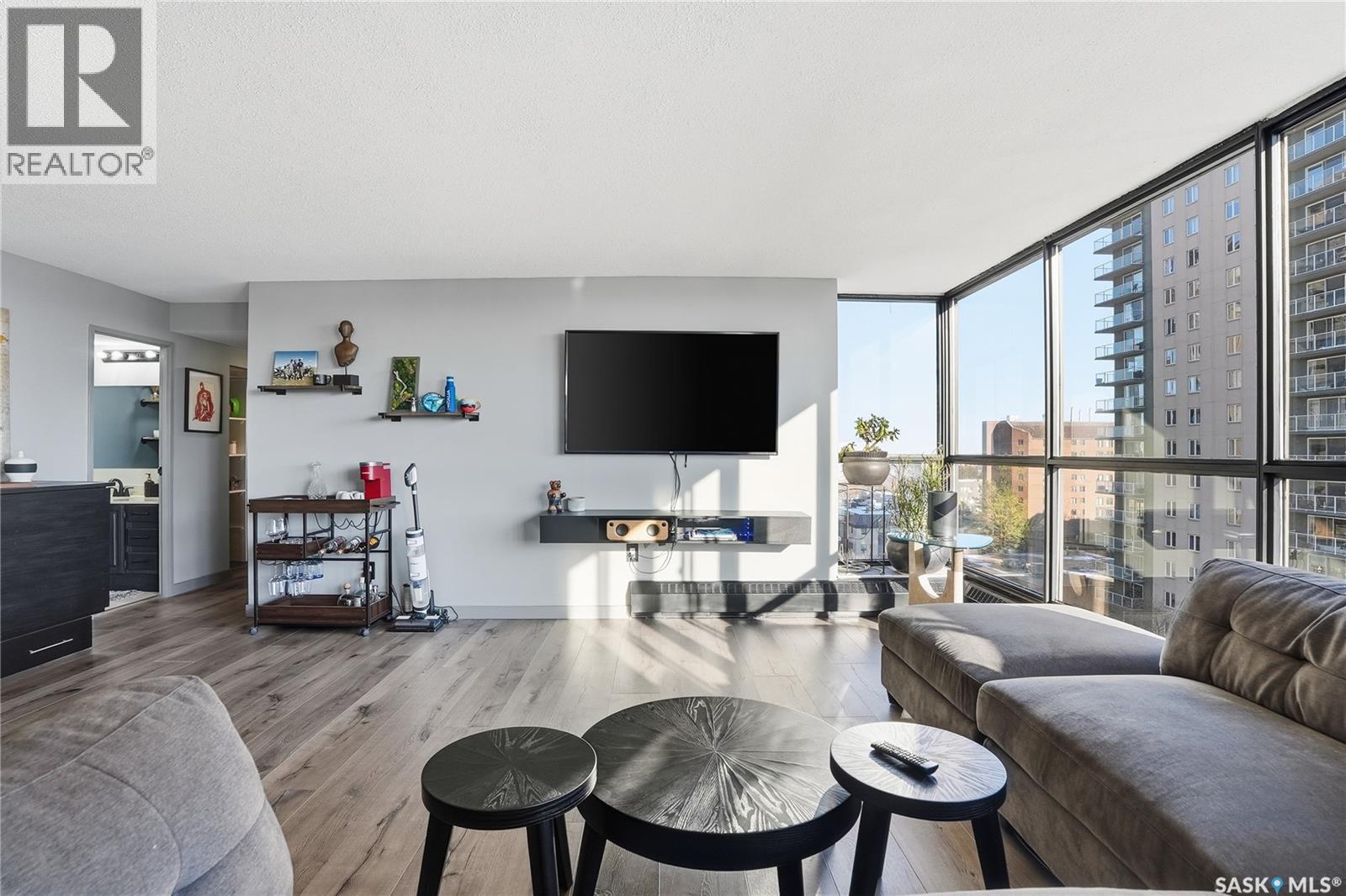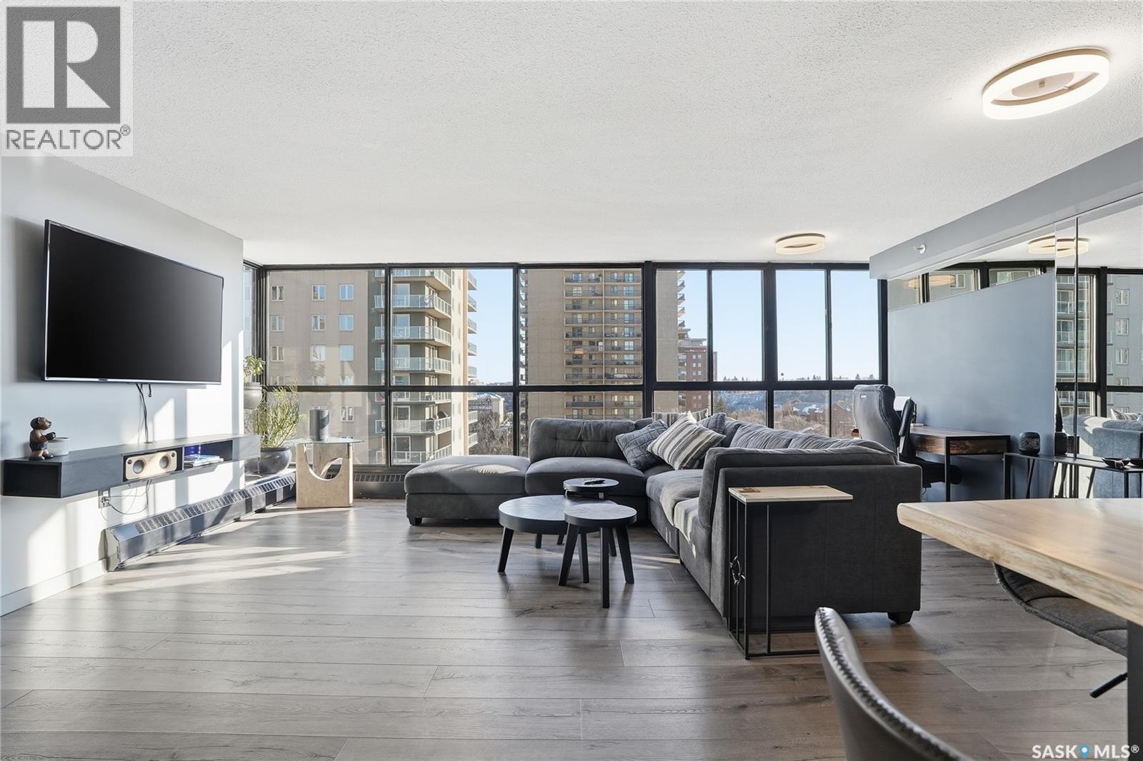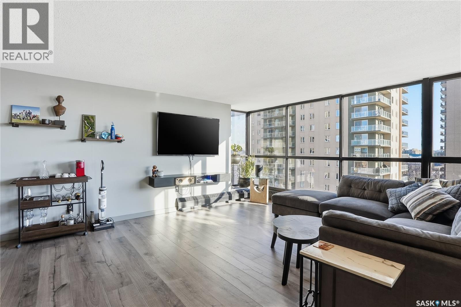 With sweeping views of downtown, this beautifully updated two-bedroom, two-bathroom home in The Terrace offers the perfect balance of comfort, style, and convenience. Floor-to-ceiling windows in the living and dining areas fill the space with natural light and create a bright, welcoming atmosphere that’s ideal for both relaxing and entertaining. Both bedrooms enjoy wonderful sunlight, and the spacious primary suite is a true retreat with a walk-in closet and private ensuite. Thoughtful updates throughout make this home move-in ready, allowing you to simply unpack and enjoy. The building’s amenities — including an indoor pool, hot tub, recreation room, and outdoor patio with barbecue area — add to the ease of everyday living. Located within walking distance to the University of Saskatchewan, City Hospital, RUH, and downtown, this is an ideal home for those seeking a vibrant, low-maintenance lifestyle in a central, established neighbourhood. Immediate possession is available — a wonderful opportunity to make this beautiful space your next chapter. (29293670)