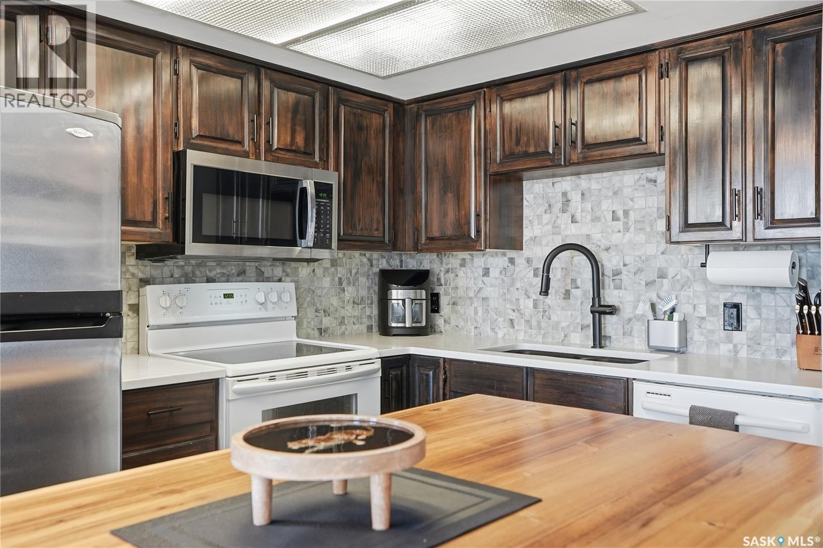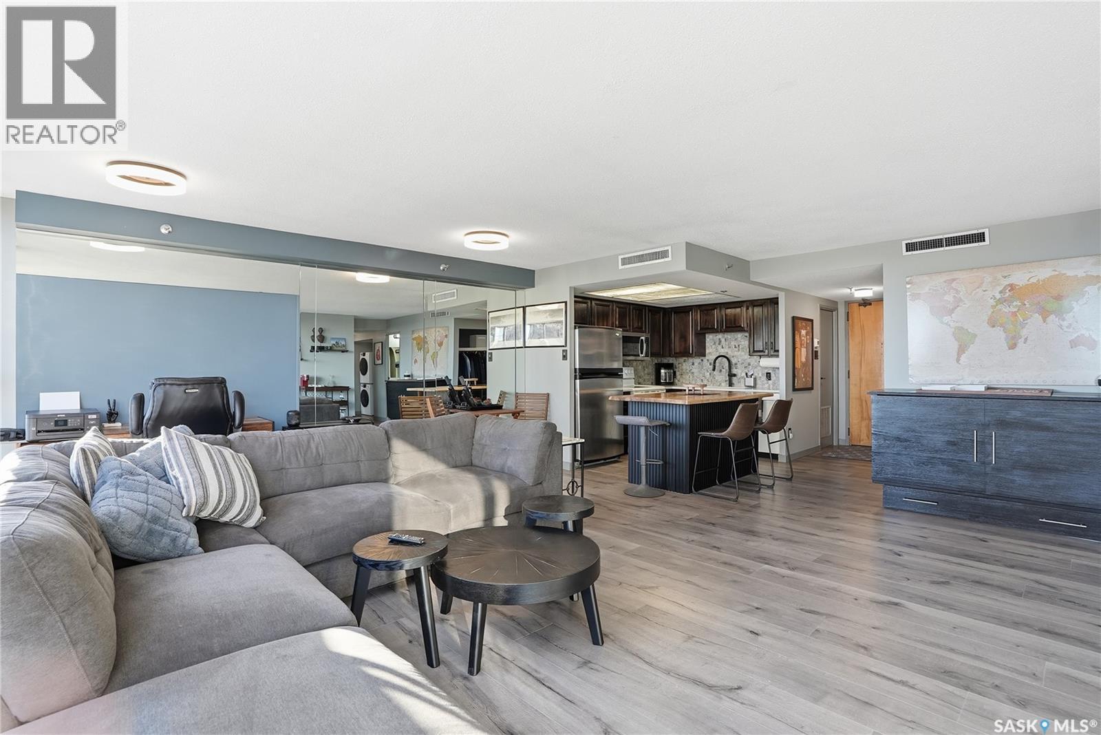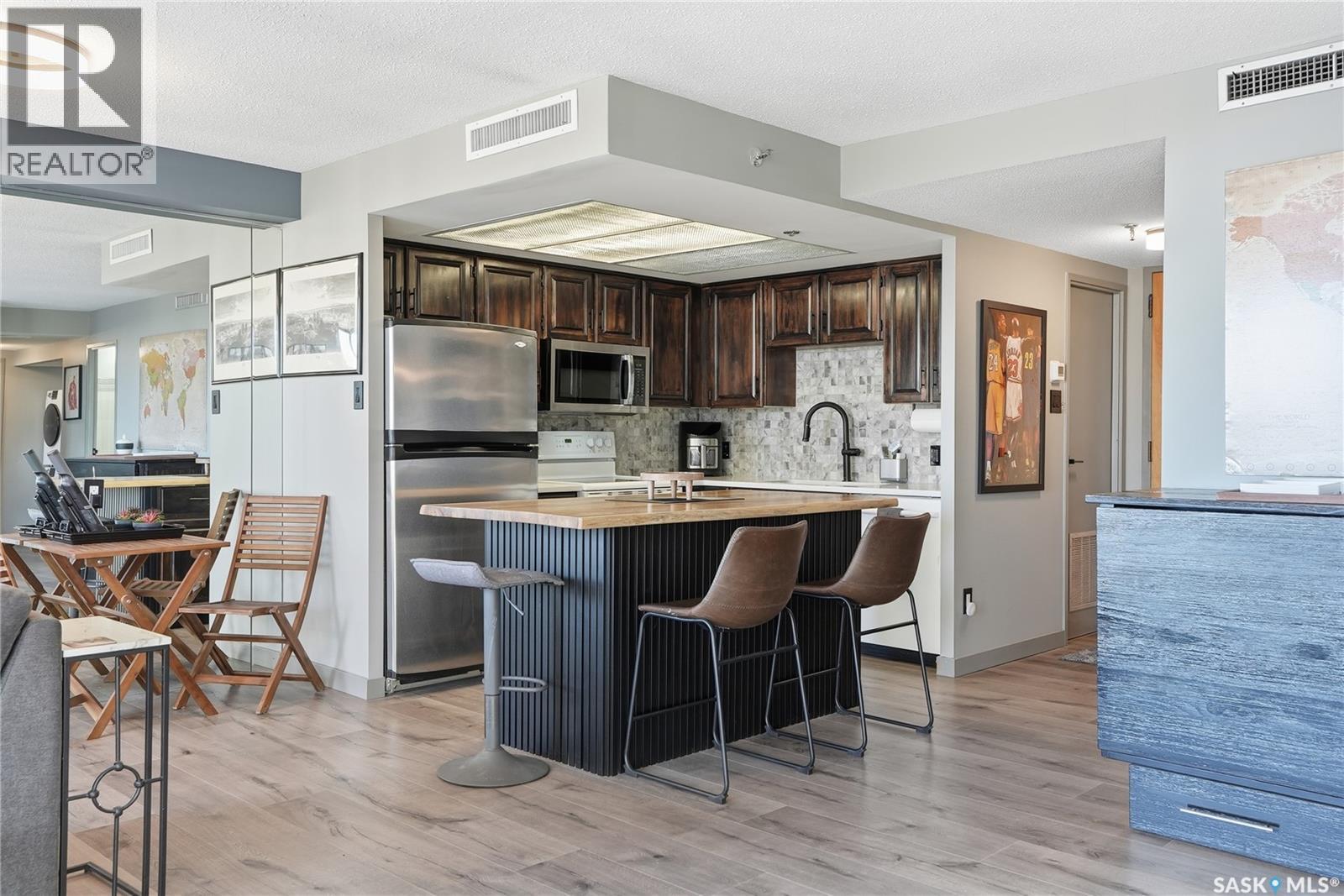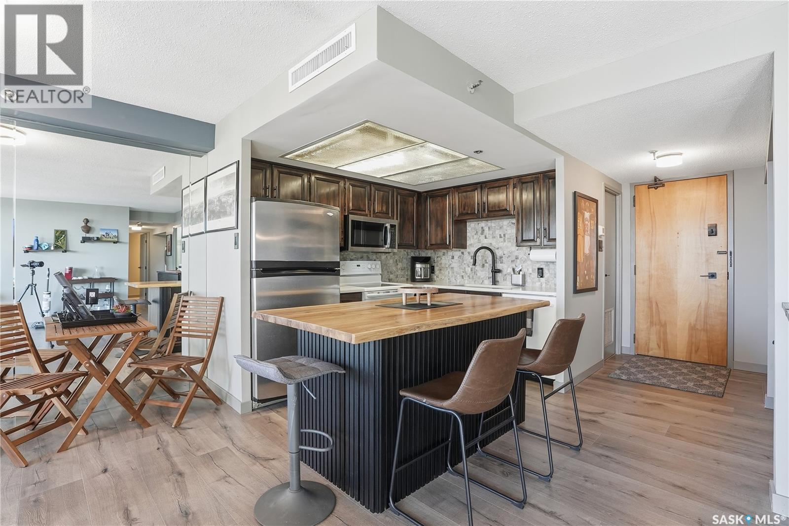 With sweeping views of downtown, this beautifully updated two-bedroom, two-bathroom home in The Terrace offers the perfect balance of comfort, style, and convenience. Floor-to-ceiling windows in the living and dining areas fill the space with natural light and create a bright, welcoming atmosphere that’s ideal for both relaxing and entertaining. Both bedrooms enjoy wonderful sunlight, and the spacious primary suite is a true retreat with a walk-in closet and private ensuite. Thoughtful updates throughout make this home move-in ready, allowing you to simply unpack and enjoy. The building’s amenities — including an indoor pool, hot tub, recreation room, and outdoor patio with barbecue area — add to the ease of everyday living. Located within walking distance to the University of Saskatchewan, City Hospital, RUH, and downtown, this is an ideal home for those seeking a vibrant, low-maintenance lifestyle in a central, established neighbourhood. Immediate possession is available — a wonderful opportunity to make this beautiful space your next chapter. (29293670)