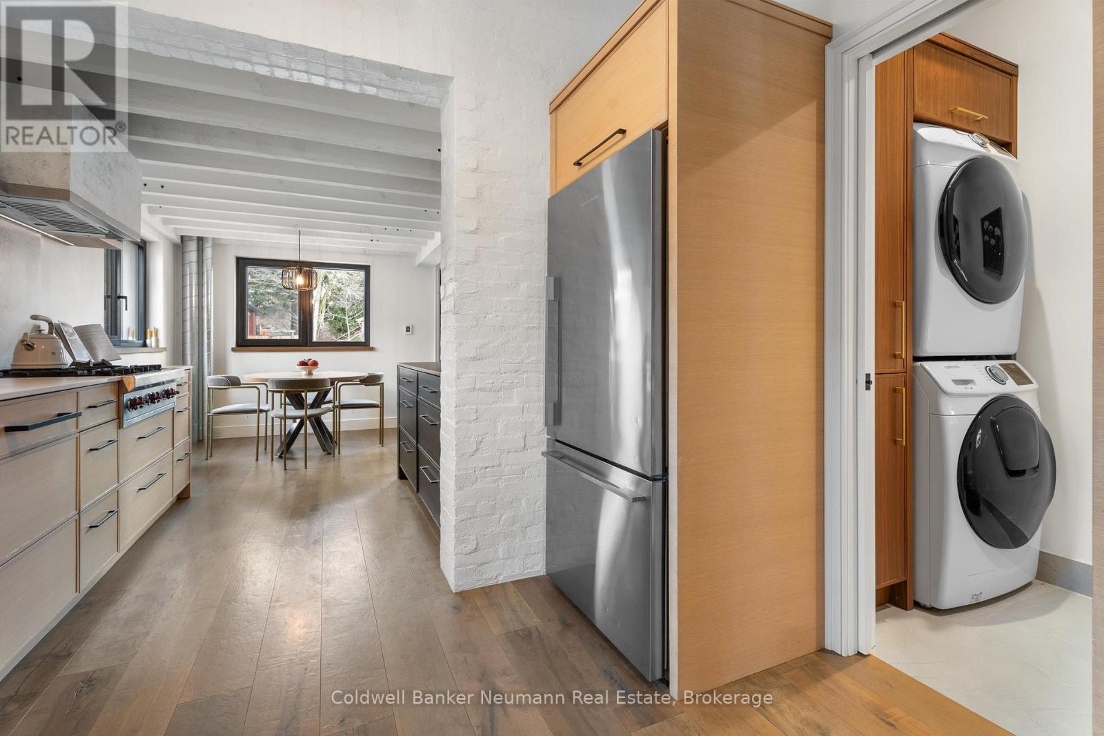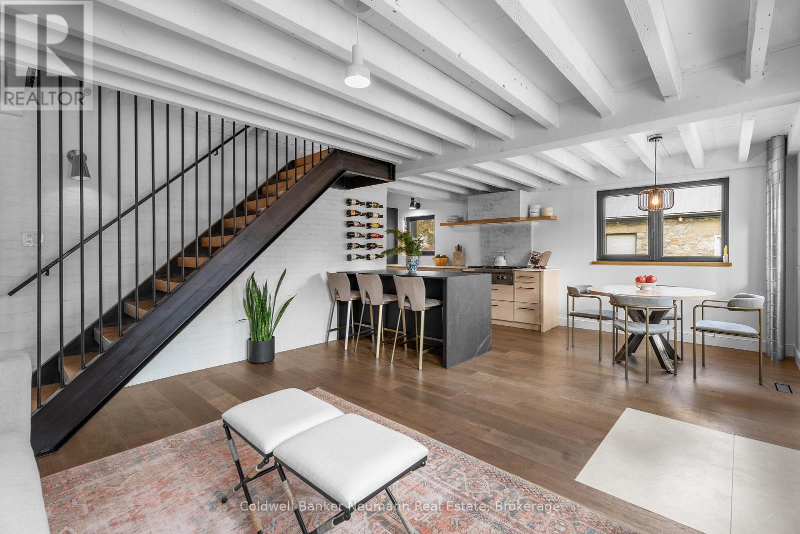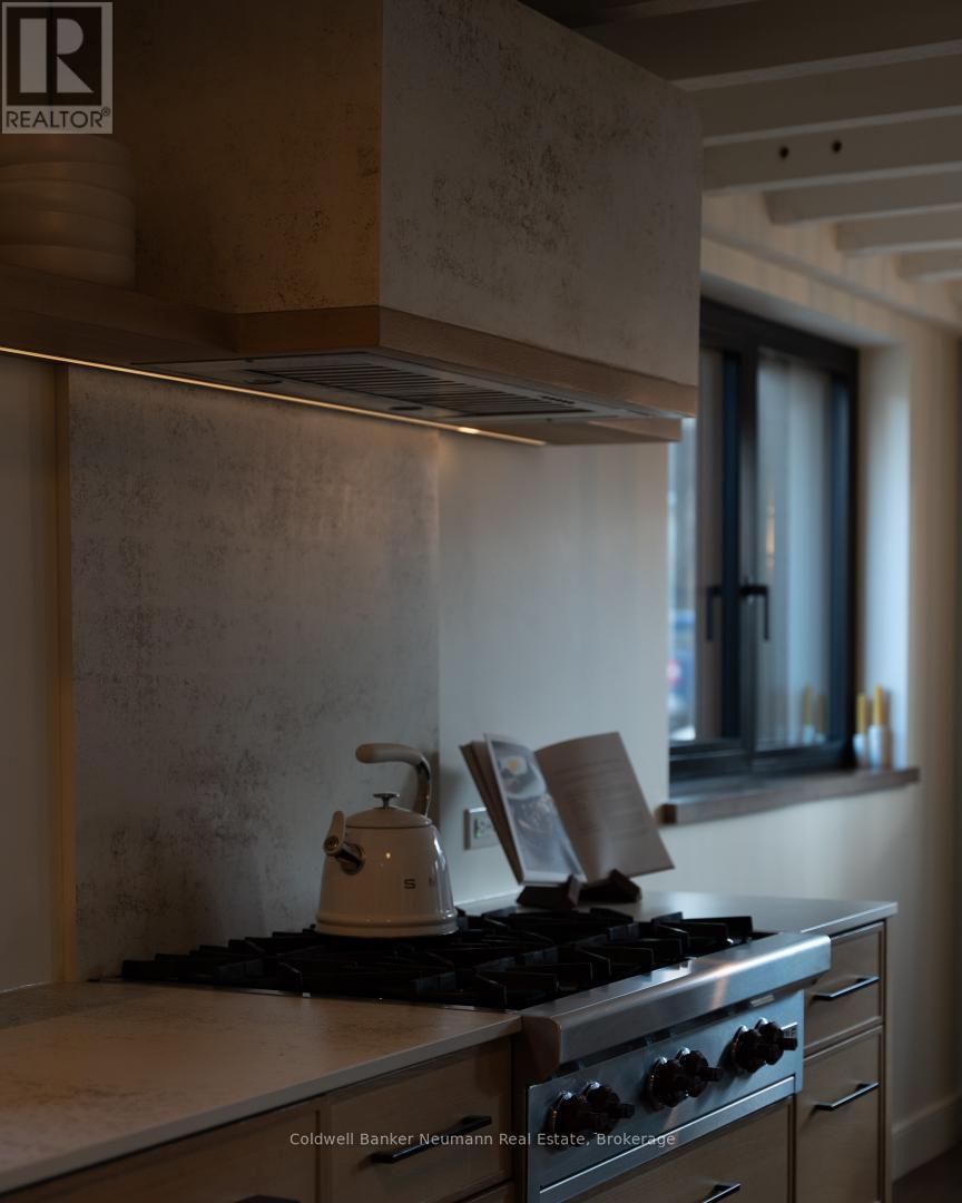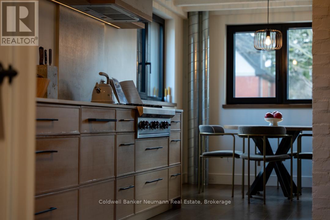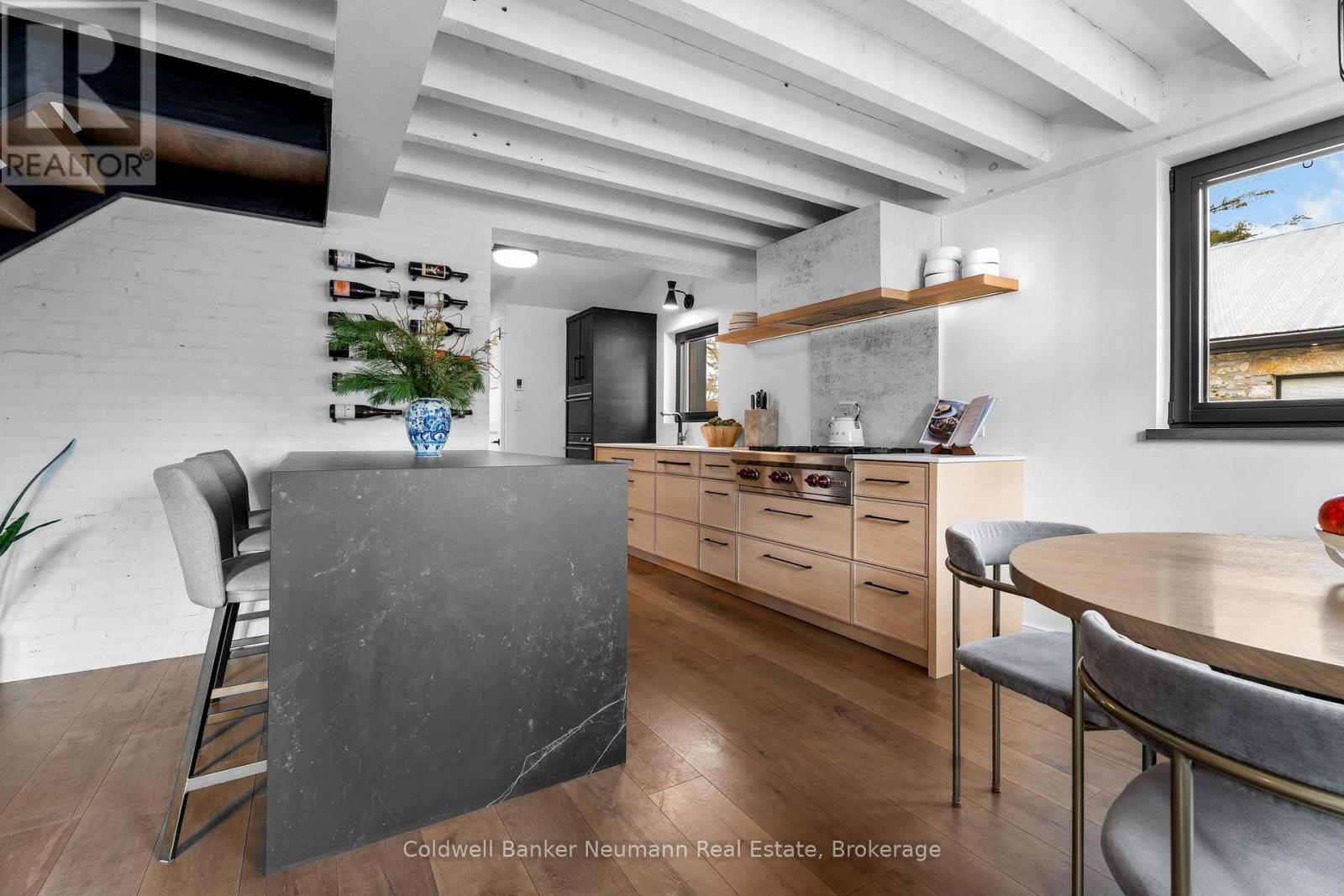 Welcome to a truly exceptional property in the heart of Arkell, where history, craftsmanship, and modern efficiency come together. Originally built in the 1800s and once home to a local blacksmith shop, this one-of-a-kind residence has been thoughtfully renovated to preserve its character while delivering outstanding comfort and performance. Reimagined using high-performance, Passive House-inspired building principles, the home was upgraded with a strong focus on the building envelope, ventilation, durability, and indoor air quality. The result is a remarkably energy-efficient, quiet, and comfortable home with consistent temperatures year-round. Inside, the main living space has been opened into a bright, cohesive kitchen and living area that blends contemporary design with preserved century details. Original rafters, exposed brick, and a striking floating staircase add architectural interest, while high-end appliances-including a Wolf cooktop, Fisher & Paykel refrigerator, wall ovens, and a built-in coffee maker-make the kitchen ideal for everyday living and entertaining. A rear addition with cathedral ceilings, moody finishes, and a fireplace creates a cozy, chalet-inspired retreat. Beyond its beauty, the home's performance truly sets it apart, featuring triple-pane windows, a continuous air barrier with thick exterior insulation, and a heat-recovery ventilation system for enhanced comfort, sound insulation, and energy savings. Set on two separate deeds with commercial zoning, the property offers flexibility for business use, live/work potential, or future development. A detached 900 sq. ft. heated shop provides year-round functionality, while the expansive landscaped yard offers space to relax, entertain, or expand. Rich in history, meticulously renovated, and full of opportunity, this is a rare and remarkable legacy property. (41976793)