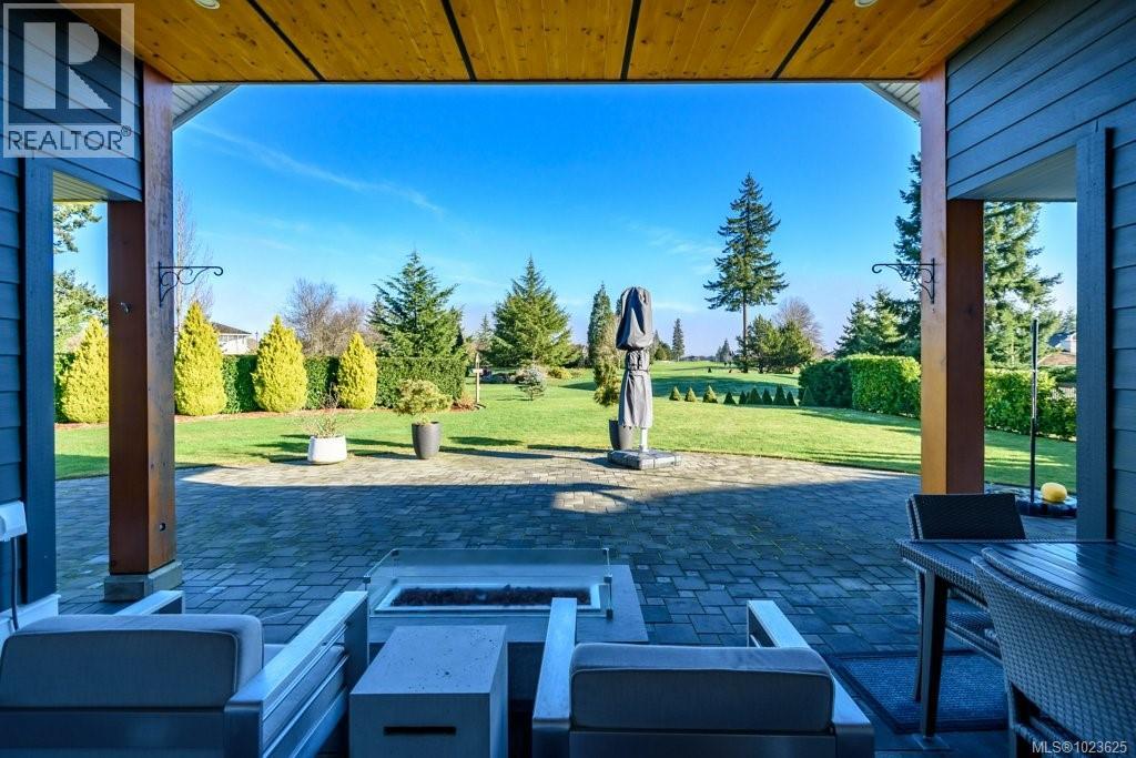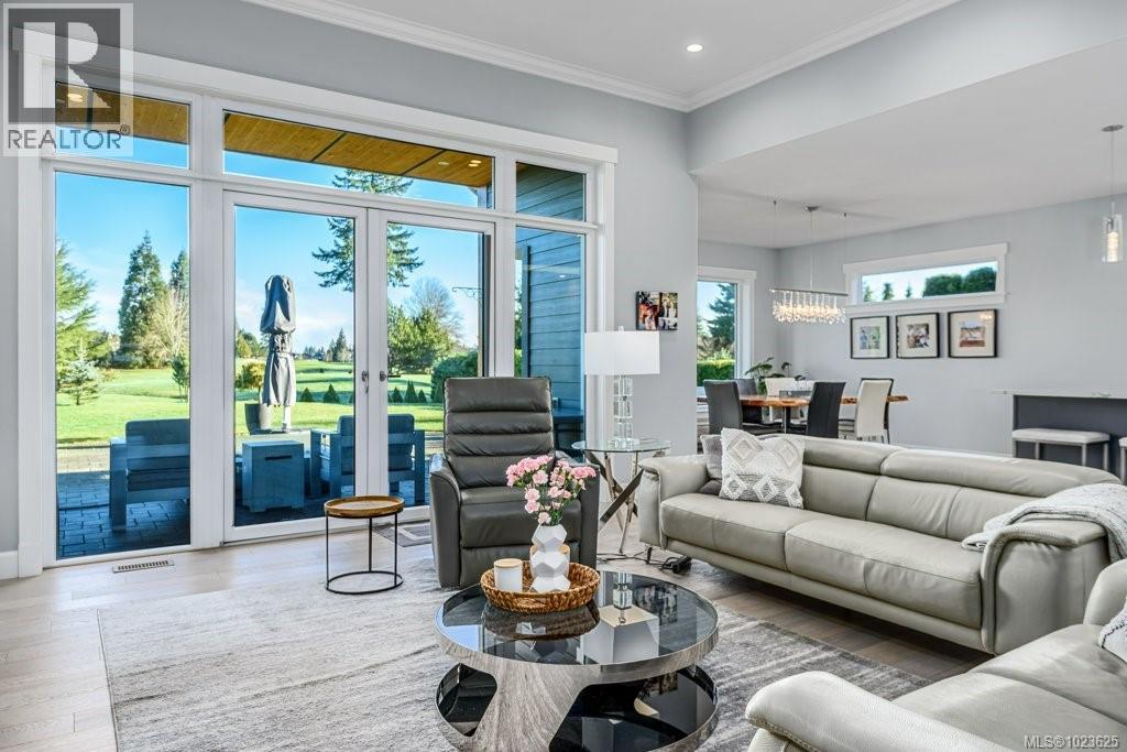 Welcome to Hampton Gate, an exclusive gated golf course community located at Crown Isle on Vancouver Island. This contemporary rancher is ideally positioned between the 16th and 17th fairways, offering exceptional golf course frontage and unparalleled views down the 11th fairway. Set on a quiet cul-de-sac at the end of the complex on one of the largest lots, this custom-built 2019 home showcases refined craftsmanship, including European white oak engineered hardwood flooring, Innotech tilt-and-turn windows, quartz countertops, and 11-foot ceilings in the great room. Outdoor living is highlighted by an impressive 1000 sq ft patio with interlocking pavers, a covered area for all-season use, and a Watkins saltwater spa in a private setting. Green built options include EV charger, heat pump, and efficient natural gas on demand hot water/furnace/fireplace/bbq. With level-entry living, wide hallways, and a 5-foot paved walkway encircling the home, this residence offers flexible options for all ages. Generous size garage fits 2 cars, storage and workshop area comfortably. Come and see why Hampton Gate is a great place to call home! (30290596)