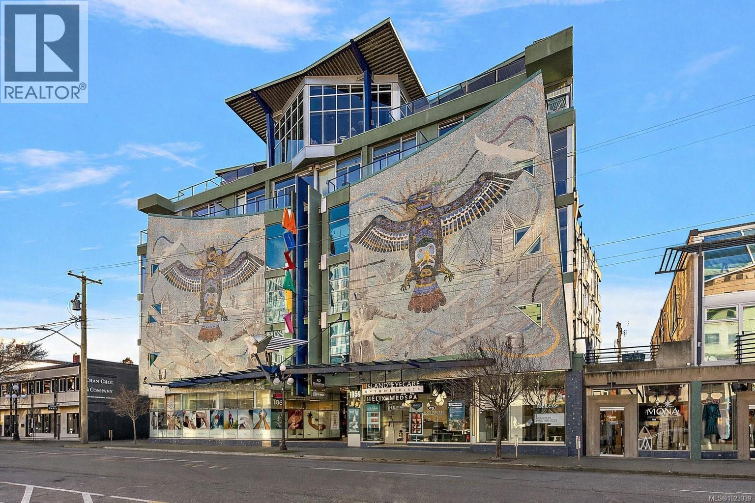 Welcome to Unit 407 in the iconic Mosaic building at 1061 Fort Street. This bright west-facing residence features soaring ceilings and floor-to-ceiling windows that flood the space with natural light and capture beautiful city sunsets. A smart loft-style sleeping area maximizes functionality while keeping the main living space open and airy, perfect for modern urban living. Built with steel and concrete, the Mosaic is a well-known, pet-friendly building offering highly flexible LIVE/WORK zoning, ideal for professionals, creatives, investors, or first-time buyers. Inside you will find in-suite laundry, a cozy gas fireplace, secure bike storage, and a separate storage locker. Located in the desirable Upper Fort District, you are steps to downtown, Cook Street Village, cafes, restaurants, groceries, transit, and more. This is a fantastic opportunity to own a distinctive home in one of Victoria’s most recognizable and sought-after buildings. (30290323)