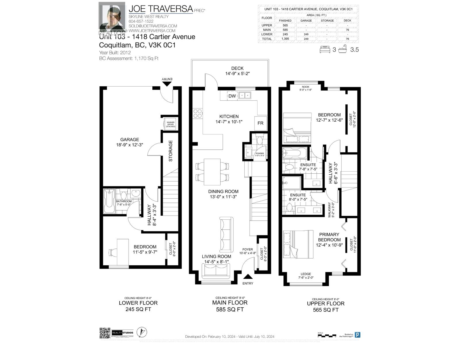 Bright and rare 3 bedroom, 3 level townhome, located in Central Coquitlam near transit, shops, parks, and schools. Very open floorplan for entertaining your guests. Living room, adjoining dining room & convenient half bathroom complete the main floor. 2 equal sized bedrooms upstairs can fit king beds + 1 bedroom with its own full bathroom in basement for separation! Attached single car garage with tons of extra parking. Desirable Maillardville location close to the freeway, Mackin Park, Superstore, restaurants, and steps to direct bus or Lougheed/Braid Skytrain. Only 30 mins to Downtown! Open House Jan 31 2-330pm (32347953)