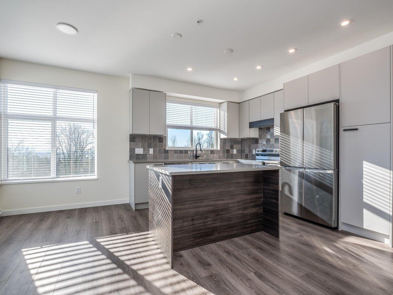 VISTA! This bright, SE facing, large corner unit features 2 bedrooms plus den and 2 full bathrooms. Open-concept layout with soaring ceilings and expansive windows overlooking the courtyard! The modern kitchen boasts sleek quartz countertops, stainless steel appliances, tiled splashbacks and plenty of cabinetry. Step out to your patio-perfect for morning coffee and evening relaxation. Enjoy resort-style amenities with fully equipped fitness centre, children's playground, and resident lounge. Two side by side parking stalls included. Ideally located steps from parks, trails, shopping, dining, and transit. Quick possession possible! (32348294)