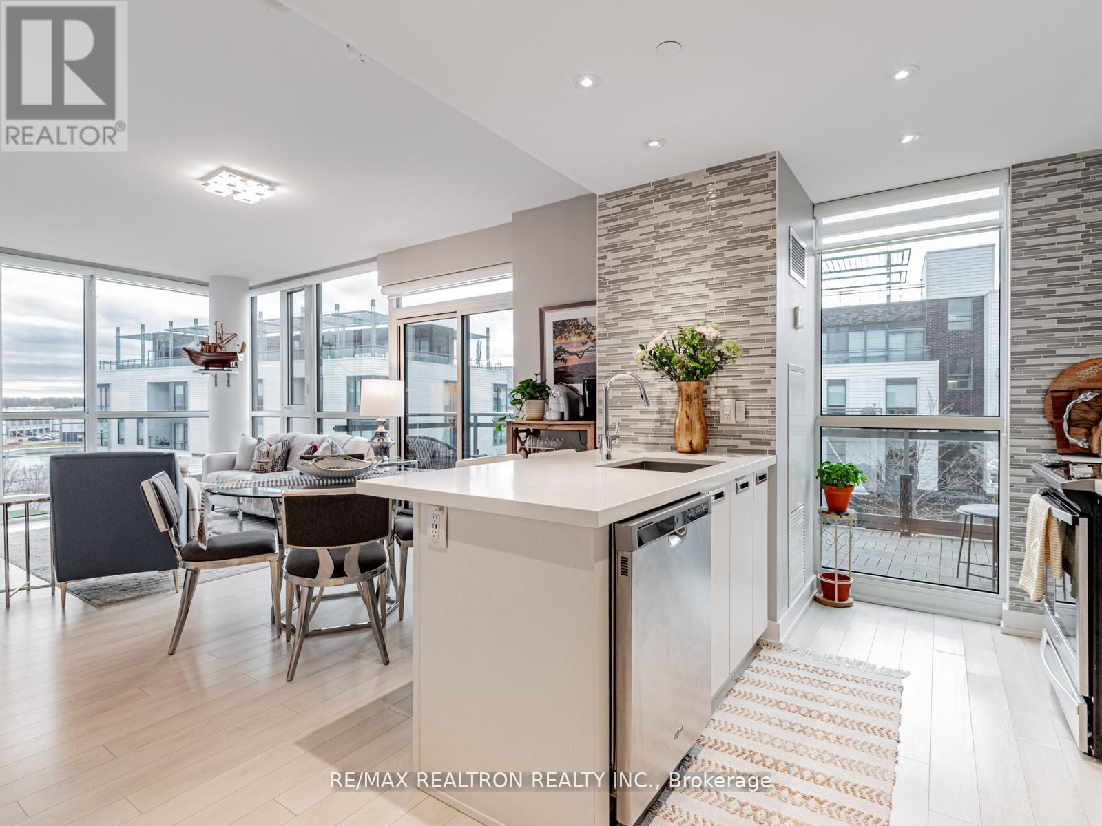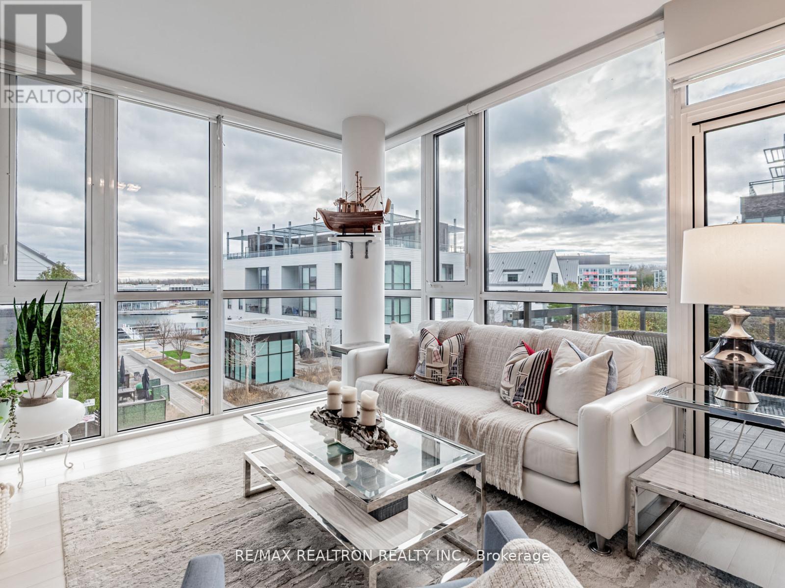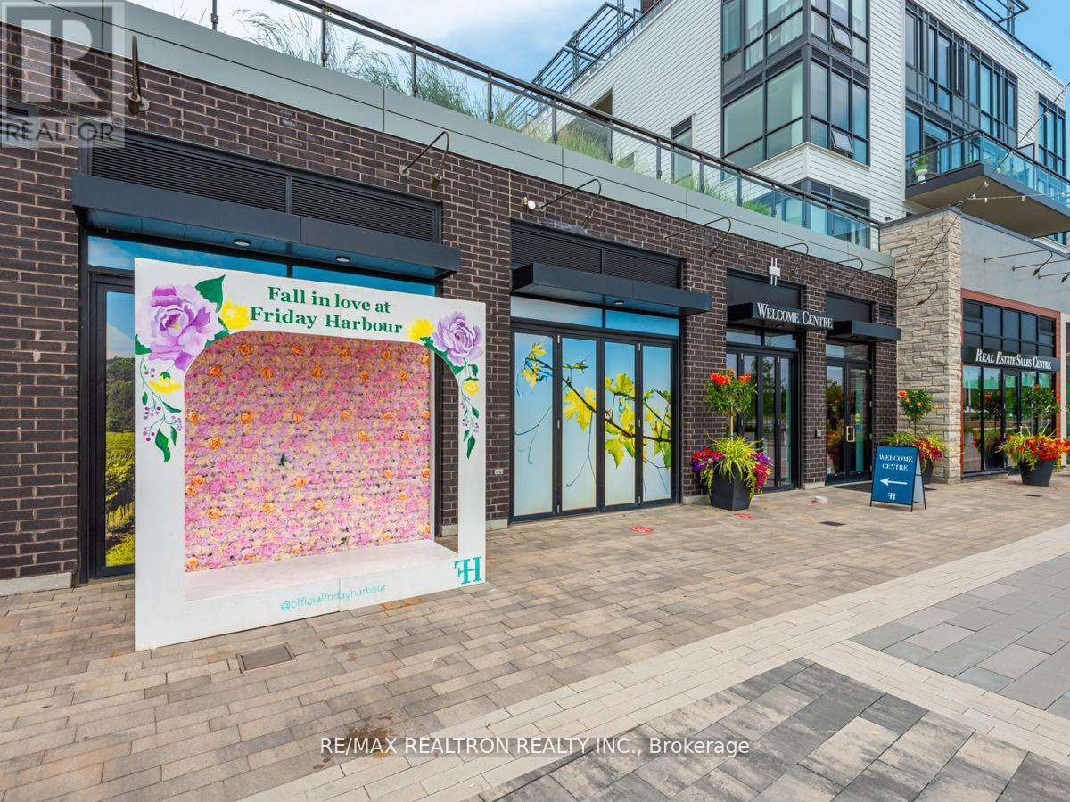 A rare opportunity to own a luxurious waterfront suite with sweeping Marina views at Friday Harbour Resort. This beautifully upgraded condo offers nearly 1,000 sq. ft. of refined living, featuring two spacious bedrooms and two full bathrooms thoughtfully placed on opposite sides for exceptional privacy. The sunlit primary suite includes a walk-in closet and private ensuite, while the open-concept living and dining area extends to a generous southwest-facing balcony-an ideal space for relaxing or entertaining with stunning Marina and courtyard scenery. Floor-to-ceiling windows brighten the modern kitchen and main living spaces, creating an airy, inviting feel. Enhanced with custom lighting, tinted windows, and upgraded balcony flooring, every detail elevates the home's sense of comfort and sophistication. Set within the acclaimed Friday Harbour community, you'll enjoy year-round resort amenities including a vibrant boardwalk, exceptional dining, a state-of-the-art gym, nature trails, a beach, and access to one of Lake Simcoe's premier marinas. A perfect blend of luxury, lifestyle, and waterfront living. ***EXTRAS*** Lifestyle investment: Lake Club Monthly $230.60, Annual Resort Fee $2060.95 and Basic Monthly Fee $845.98. Buyer to pay 2% plus hst FH association fee. (41978220)