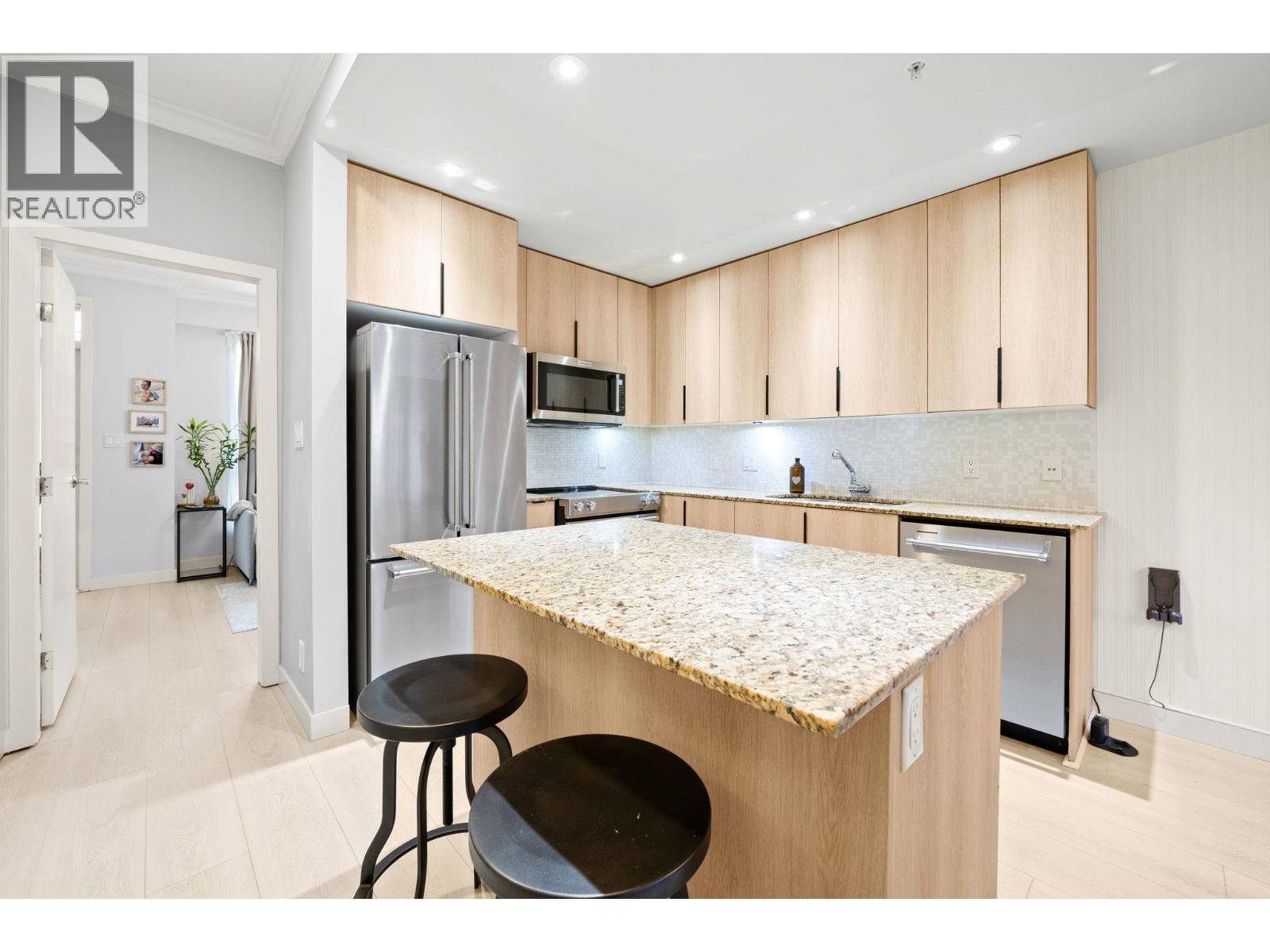 One of best locations in Port Moody - Suter Brook Village! At your doorstep: restaurants, groceries, cafes, shopping, gyms, & just steps to Rocky Point Park, Brewers Row & skytrain. Beautifully maintained & efficient open concept floorplan in this 3 bed 3 bath 1337 sf 2 level townhouse! (3rd bed does not have a closet). Spacious main flr feat large living/dining rooms with luxury vinyl flooring, kitchen with stone counters, tons of cabinetry, 2 year old appliances & centre island, + 3rd bed or office & powder room.4 outdoor spaces incl 2 patios on main level & 1 off each bedroom. 2 good sized beds up (both with vaulted ceilings) incl primary w/5 pce ensuite! Hot water tank 2023.Building amenities incl: gym, indoor pool/hot tub, sauna, party room/pool table. Comes with 2 parking! (32348843)