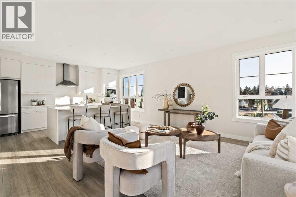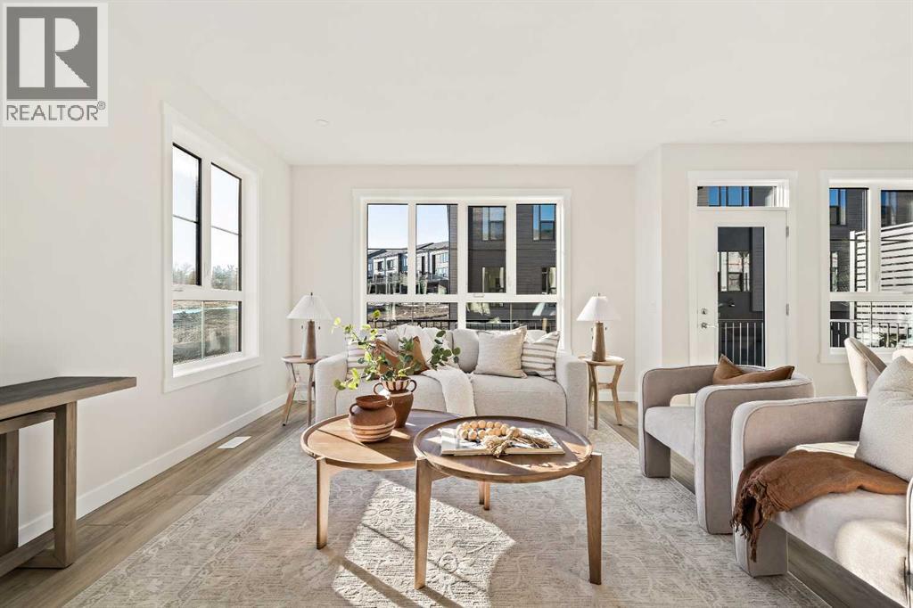 Welcome to the Torrey at Crown Park - an exceptional opportunity offering a brand new move-in ready townhouse that features 3 bedrooms, 2.5 bathrooms and a private double attached garage. Featuring nearly 1,700 ft2 of living space, this end-unit townhome is perfectly situated with optimal southwest exposure providing a bright living space that is flooded with natural light. The bright and open main living area features a stunning kitchen with endless upgrades including built-in appliances, a waterfall quartz island and timeless white cabinetry. The kitchen has been designed for entertaining, located directly off of the expansive main living area. Walls of windows surround the entire main level, providing you with a naturally lit living space all year long. The ~17'x16' great room has ample space for virtually any furniture configuration and opens to the large dining area - creating a seamless flow between spaces. The main level is complete with a 2 pc powder room and direct access to the sprawling 26' balcony that spans the width of the home. The outdoor living space is equipped with a BBQ gas line and hose bib, adding to everyday convenience. The upper level has been thoughtfully designed with the primary suite spanning the width of the home and the secondary rooms and bathroom on the opposite end. The ~12'x12' primary bedroom has ample space for a king bedroom suite and includes a walk-in closet and a private 4 pc ensuite with dual sinks and a walk-in tiled shower. The upper level is finished by two additional bedrooms, a full bathroom and laundry - ensuring everyday convenience. The flexibility of three bedrooms makes this the perfect family home or guest bedroom with a home office space - providing exceptional long term value. The entry level of the home provides access to the private double attached garage, which has additional space for storage, as well as a large storage room - keeping all of your valuables safe and secure all year round. Located in one of Ca lgary's last inner-city developments, just minutes to downtown Calgary with endless transportation routes at your fingertips, this brand new home offers exceptional value and is perfect for first time buyers, investors, or those wanting a lock-and-leave lifestyle with maintenance-free living. Backed by a comprehensive builder warranty + Alberta New Home Warranty, this brand new home allows you to purchase with peace of mind! (31547823)
