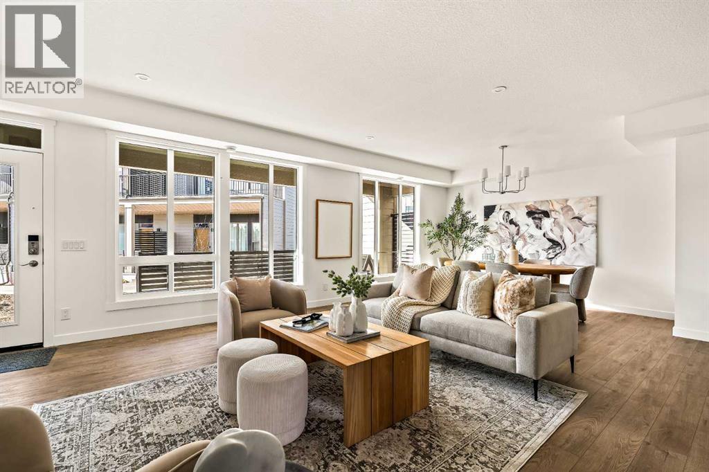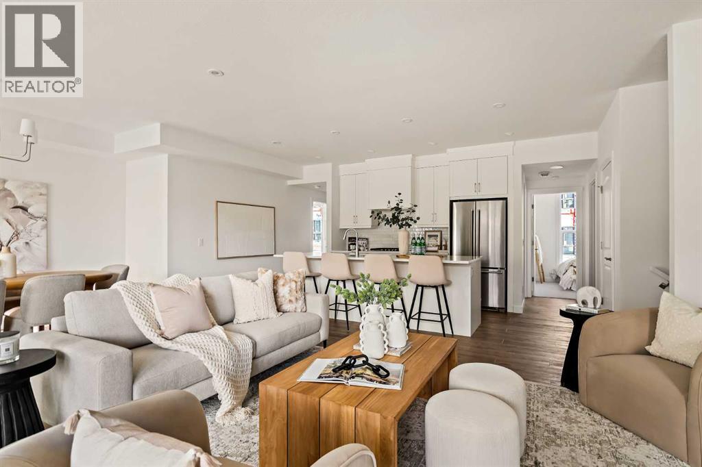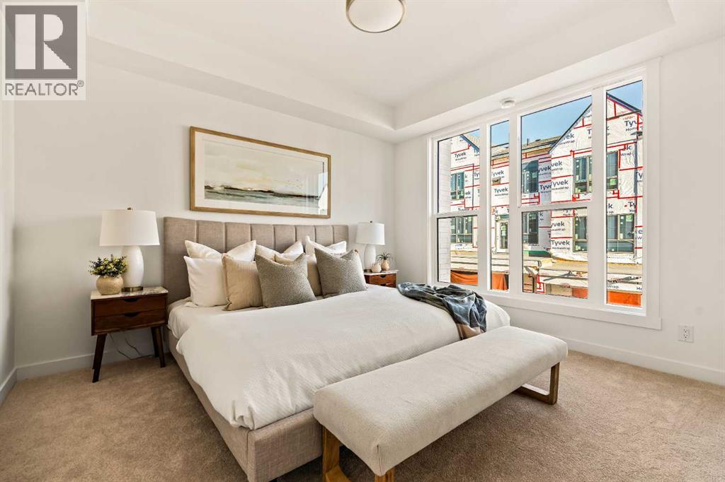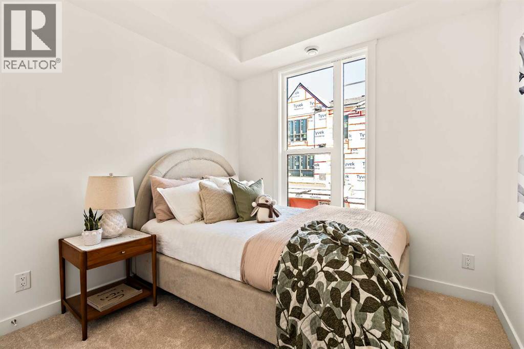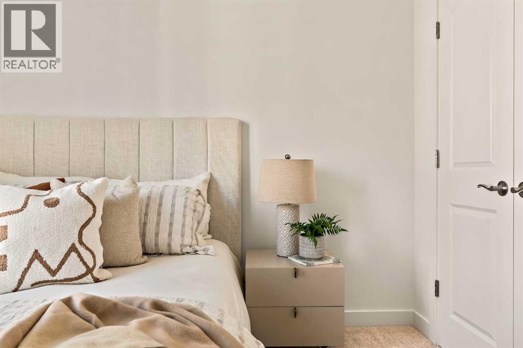 Welcome to the Regent at Crown Park - a thoughtfully designed townhouse that offers single-level bungalow style living without compromise. Designed with down-sizers in mind, this maintenance-free townhouse combines a bungalow lifestyle with a double attached garage - all while giving you a maintenance-free lifestyle, perfect for those who travel, or simply just don't want the hassle of exterior maintenance, landscaping or snow removal! This brand new 3 bedroom, 2 bathroom townhome has nearly 1,300 ft2 of living space over one level and a lower level with virtually endless storage and a private double attached garage! The brilliantly designed living area was created for entertainment with a central kitchen that opens to the living and dining areas with a wall of windows that flood the space with natural light. The timeless kitchen has white shaker cabinets, light quartz countertops and a suite of built-in appliances including a chimney hood fan, gas cooktop and built-in oven. The sprawling kitchen overlooks both the living and dining areas, ensuring the chef is never left out. A central fireplace with floor-to-ceiling plaster finish anchors the main living area with ample space for 6 to sit comfortably. The large dining area has space for a table and buffet if desired, providing flexible furnishing options to meet your needs. The primary suite is located at the back of the home and features a large walk-in closet and spa-inspired ensuite with dual sinks and a tiled walk-in shower. The centrally located laundry room, complete with upper cabinetry and a countertop for added convenience, perfectly separates the primary suite from secondary rooms for optimal privacy. Two additional bedrooms and a full bathroom round out this expansive single-level living space. The secondary rooms provide added flexibility for a guest room(s), home office, media room or studio space - while keeping a broad appeal for resale value. The lower level has a large storage room and oversized ut ility room (~17'x7') that could easily be used for a hobby space. An oversized double attached garage completes the interior of the home. Lastly, a large covered southwest-facing patio, spanning over 26' wide, provides the perfect outdoor living space with views overlooking the park and is complete with a gas line and hose bib for added convenience to everyday living. A bungalow style townhouse with a double attached garage is an exceptionally rare find - don't let this opportunity pass by. Purchase with peace of mind - this brand new home includes a comprehensive builder warranty + Alberta New Home Warranty. Located just minutes from downtown, countless amenities and in an established and developed area, you can move into your new home with confidence - knowing all that is around your beautiful new home. (31547998)
