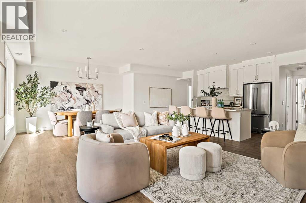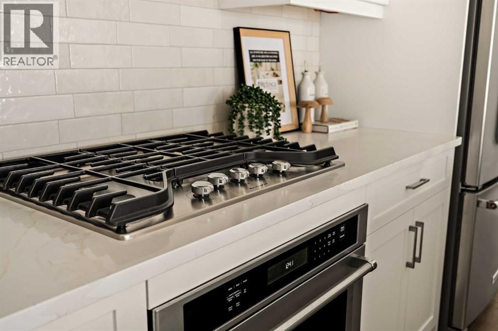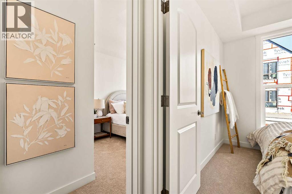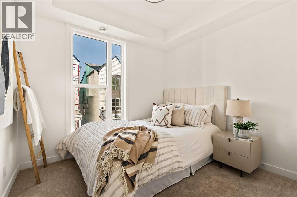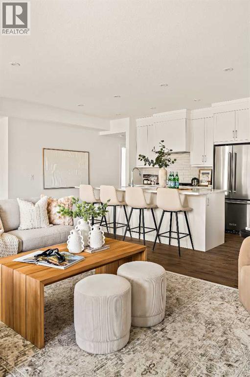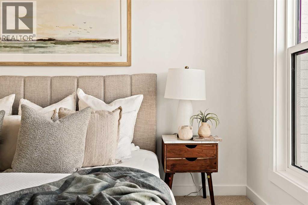 Welcome to the Regent at Crown Park - a thoughtfully designed townhouse that offers single-level bungalow style living without compromise. Designed with down-sizers in mind, this maintenance-free townhouse combines a bungalow lifestyle with a double attached garage - all while giving you a maintenance-free lifestyle, perfect for those who travel, or simply just don't want the hassle of exterior maintenance, landscaping or snow removal! This brand new 3 bedroom, 2 bathroom townhome has nearly 1,300 ft2 of living space over one level and a lower level with virtually endless storage and a private double attached garage! The brilliantly designed living area was created for entertainment with a central kitchen that opens to the living and dining areas with a wall of windows that flood the space with natural light. The timeless kitchen has white shaker cabinets, light quartz countertops and a suite of built-in appliances including a chimney hood fan, gas cooktop and built-in oven. The sprawling kitchen overlooks both the living and dining areas, ensuring the chef is never left out. A central fireplace with floor-to-ceiling plaster finish anchors the main living area with ample space for 6 to sit comfortably. The large dining area has space for a table and buffet if desired, providing flexible furnishing options to meet your needs. The primary suite is located at the back of the home and features a large walk-in closet and spa-inspired ensuite with dual sinks and a tiled walk-in shower. The centrally located laundry room, complete with upper cabinetry and a countertop for added convenience, perfectly separates the primary suite from secondary rooms for optimal privacy. Two additional bedrooms and a full bathroom round out this expansive single-level living space. The secondary rooms provide added flexibility for a guest room(s), home office, media room or studio space - while keeping a broad appeal for resale value. The lower level has a large storage room and oversized ut ility room (~17'x7') that could easily be used for a hobby space. An oversized double attached garage completes the interior of the home. Lastly, a large covered southwest-facing patio, spanning over 26' wide, provides the perfect outdoor living space with views overlooking the park and is complete with a gas line and hose bib for added convenience to everyday living. A bungalow style townhouse with a double attached garage is an exceptionally rare find - don't let this opportunity pass by. Purchase with peace of mind - this brand new home includes a comprehensive builder warranty + Alberta New Home Warranty. Located just minutes from downtown, countless amenities and in an established and developed area, you can move into your new home with confidence - knowing all that is around your beautiful new home. (31547998)