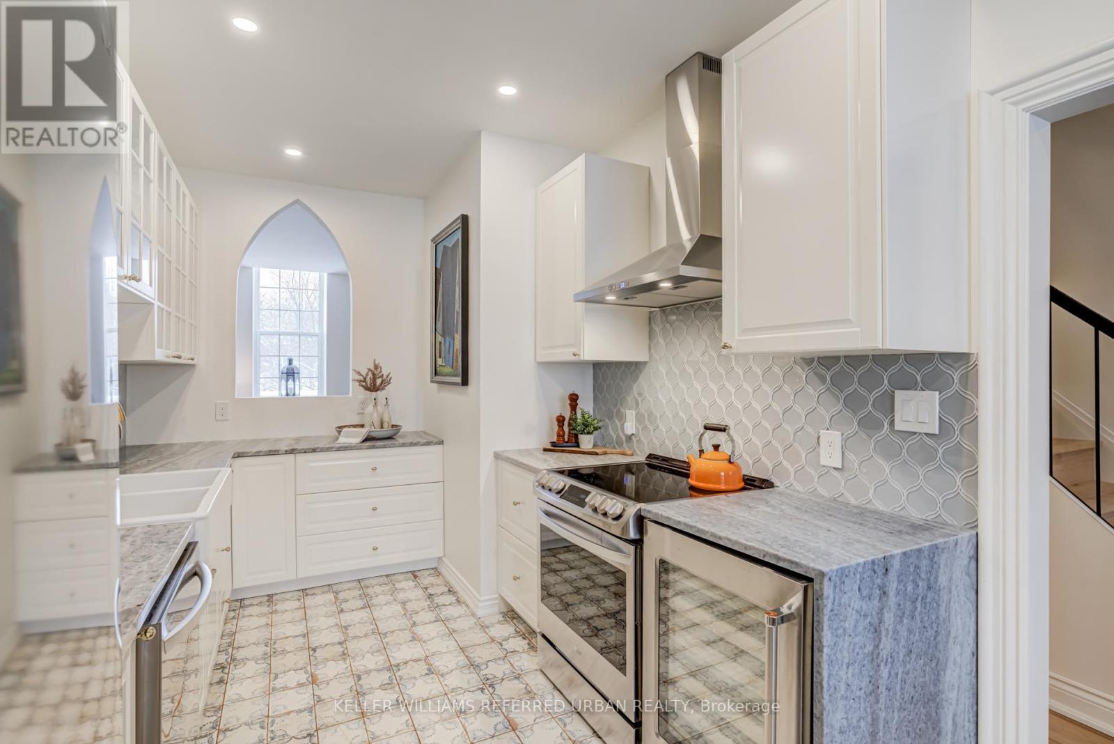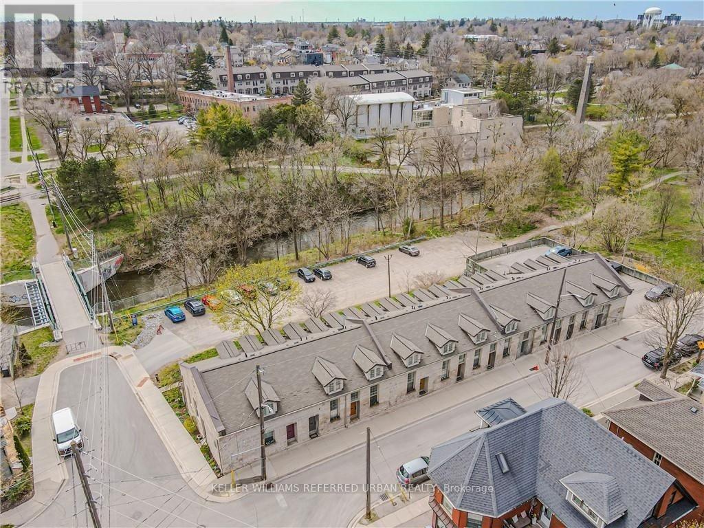 Welcome to the most exciting property listed so far in 2026! This Fully renovated up to date character home is full of unique charm in a premium location! This cozy stone townhome has been fully renovated from top to bottom. Heated flooring, new kitchen and bathroom, fully optimized. Ideally located 5 min walk to downtown Guelph restaurants, theatres and shops. Overlooking the river, this "downtown" home is surrounded by nature with beautiful Norwich walking bridge and Wolfond Park. This fantastic two-bedroom, two-storey layout features large windows and a private fully fenced backyard, perfect for gardening and relaxing outdoors. Both bedrooms are generously sized and offer ample storage, charming dormer windows/reading nooks, upgraded second-floor laundry(!), and fully modernized and stylish four-piece bathroom with heated floors. The main level includes brand new kitchen complete with *heated!* artisan tile flooring, convenient main floor two-piece powder room, and a gorgeous and inviting living and dining room, cosy this time of year with gas fireplace and access to backyard for entertaining and gardening in the summer. This unit Includes parking and your own storage locker! Walking distance to downtown, scenic trails, and a park right next door. A rare opportunity to own a unique downtown fully updated home that you can just move right into and enjoy the low maintenance lifestyle of condo townhome living in a property that truly feel like home. Come see for yourself! (41980227)