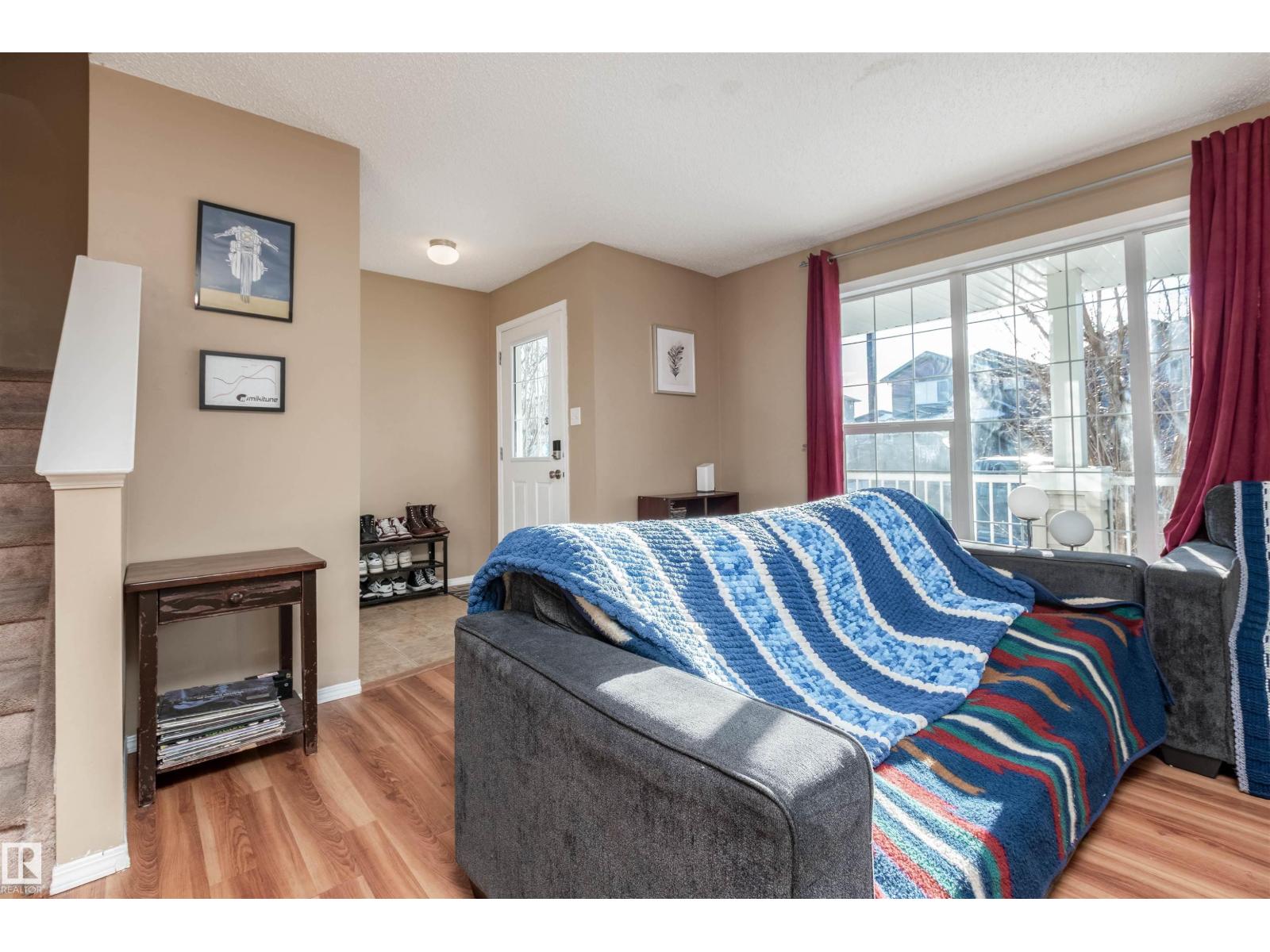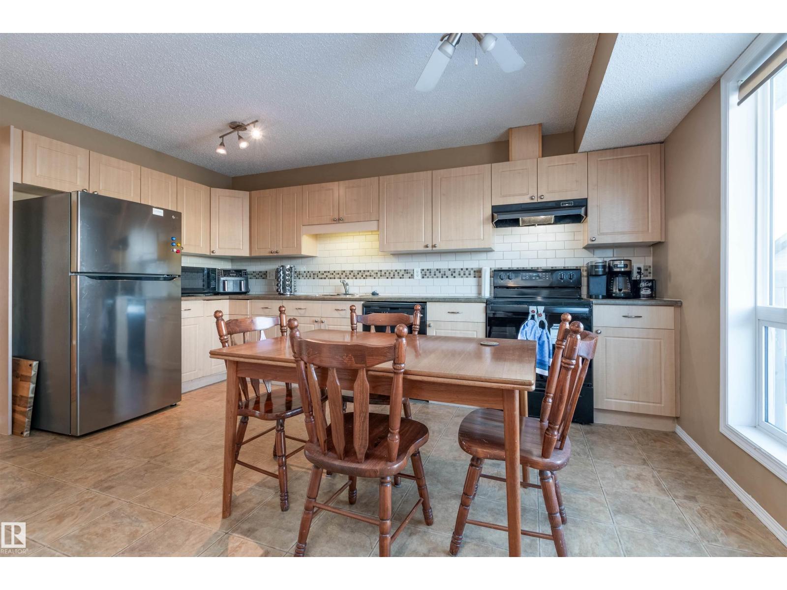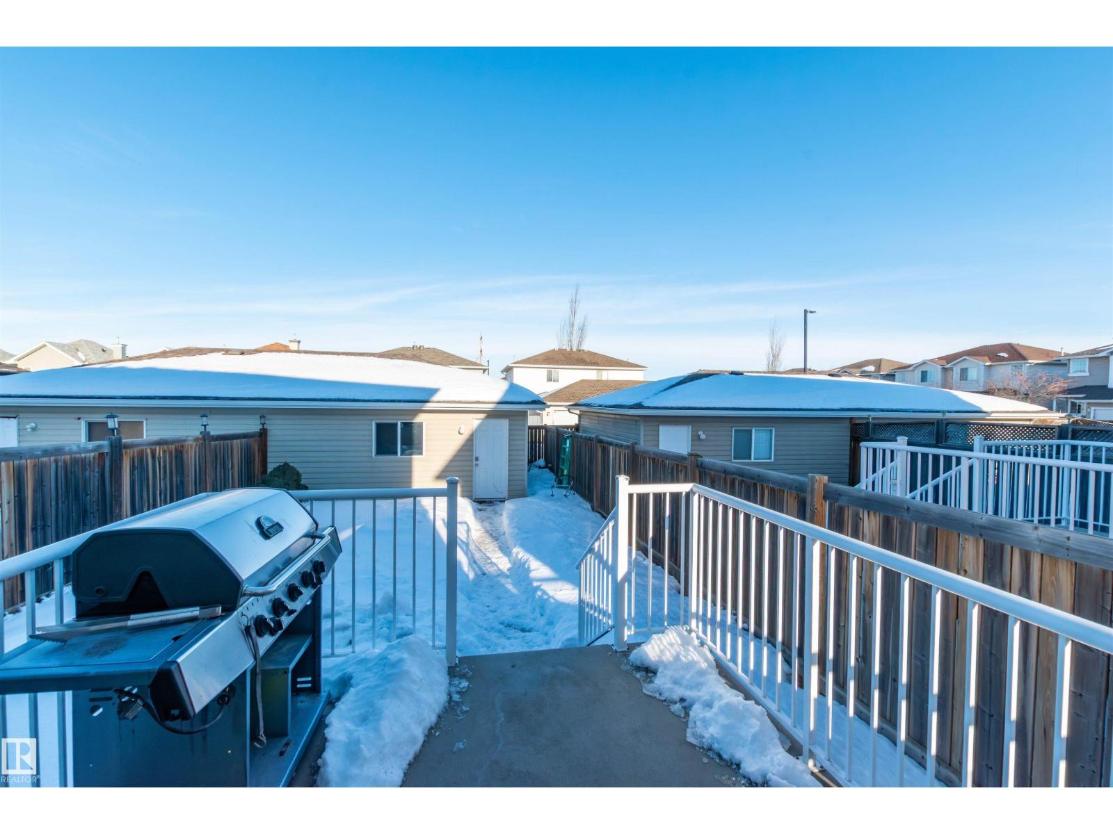 Welcome to Silver Berry, where this charming 2-storey half duplex delivers comfort, light, and practicality, plus a double detached garage. Step onto the large front porch and into a bright living room filled with windows and anchored by a cozy corner fireplace. Light permeates both levels, creating an inviting atmospher. The open flow continues to the kitchen, featuring light cabinetry, ceramic tile, and a smart mix of black and stainless steel appliances, with the dining area set up for everyday living and hosting. A convenient 2-piece bath sits just off the dining room near the back door, ideal for guests. Upstairs, you will find three generous carpeted bedrooms and a full 4-piece bathroom, including a primary suite with a walk-in closet for easy organization. Out back, enjoy a raised deck, room to entertain, and a clear path leading to the garage, so parking and storage are simple. At 1,128.93 sq ft with 3 bedrooms and 2 bathrooms, this home checks the boxes. Come see it and make it your next address. (33739199)