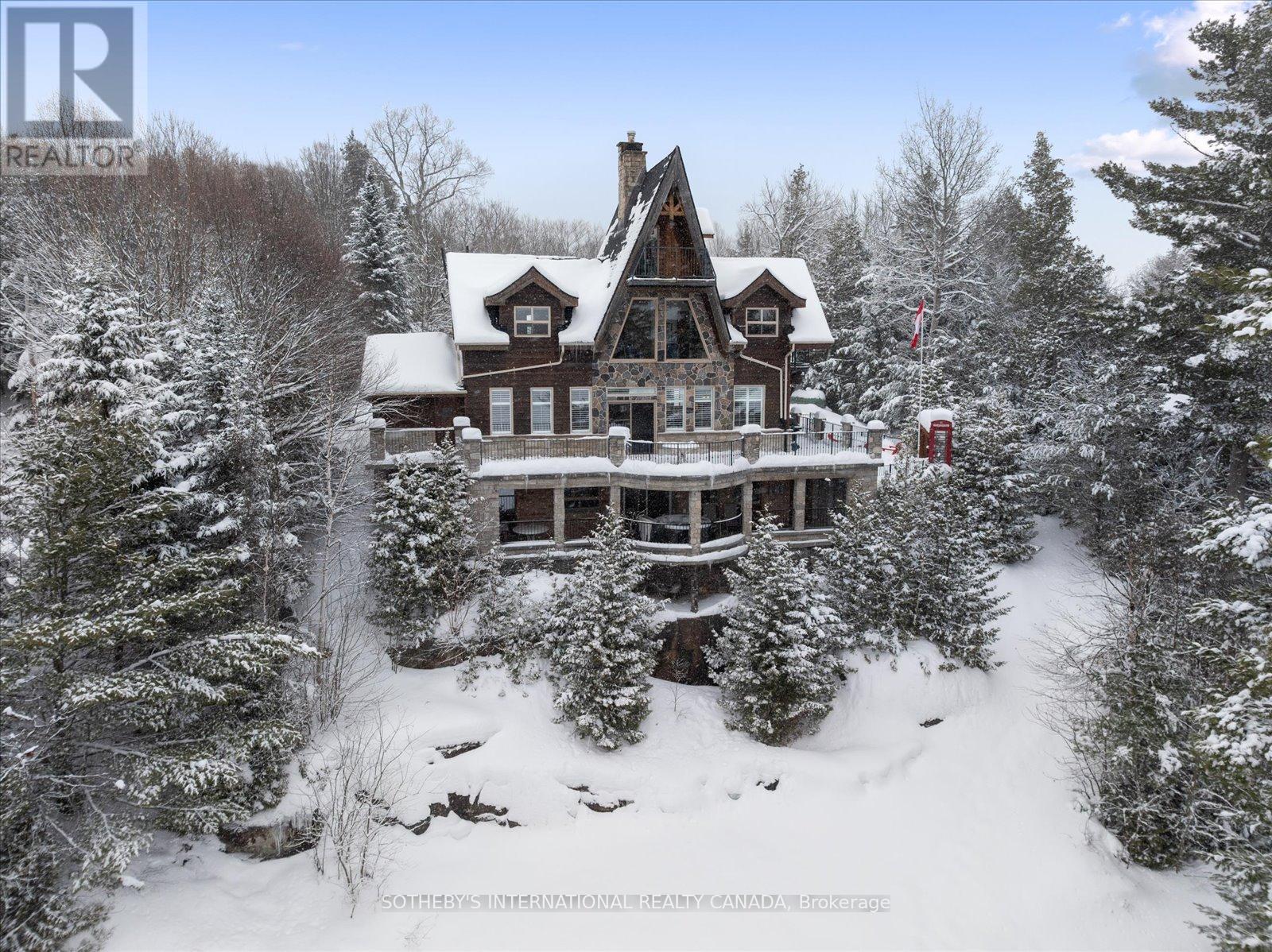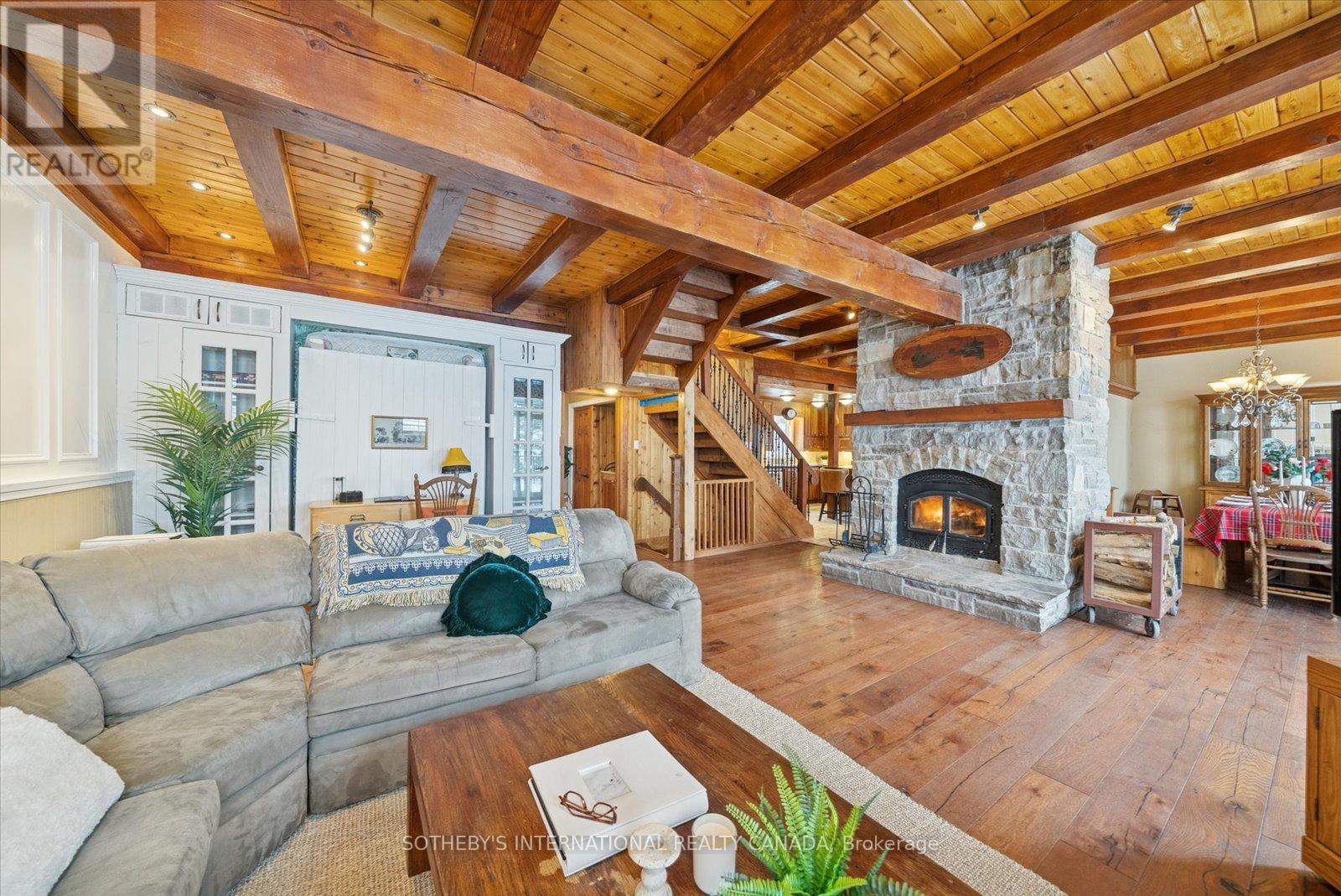 Welcome to the Edge: A Baronial Masterpiece on Little Kennisis Lake. This rare 3,700+ total square foot lake house marries rugged Canadian Shield granite with "Atmospheric Elegance." Perched dramatically with coveted North West sunset exposure, this 4-bed, 4-bath (plus Murphy bed) features soaring Cedar & Douglas Fir beams, rustic oak floors, and a magnificent floor-to-ceiling stone wood-burning fireplace.Designed for year-round entertaining, the walk-out lower level serves as a "fun & games" destination with a pool table, poker table, and hot tub. The pristine waterfront boasts deep, crystal-clear water, a 10x20 floating dock, and a large lakeside deck. A proven financial history, operating as a highly successful, licensed short-term rental with a stellar reputation and repeat clientele. This property is being sold FULLY TURN-KEY with all furnishings, decor and housewares included. Located on the prestigious Kennisis chain, minutes from a full-service marina and Haliburton Forest.The current owners enjoy the lake house for half of the year and rent it up to 180 days per year. Only 30 minutes to Sir Sam's Ski & Ride and to the Village of Haliburton for great shops, restaurants, services and Haliburton Hospital. The current owner has invested significantly in upgrades. Please refer to supporting documents for more information. Short term rental financials available upon request. (41980374)