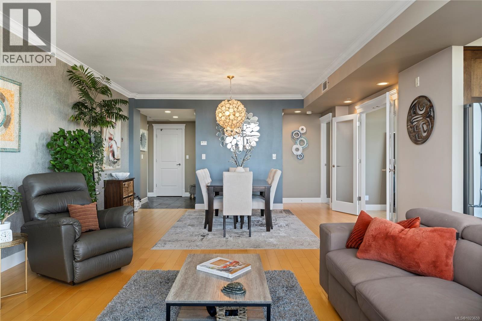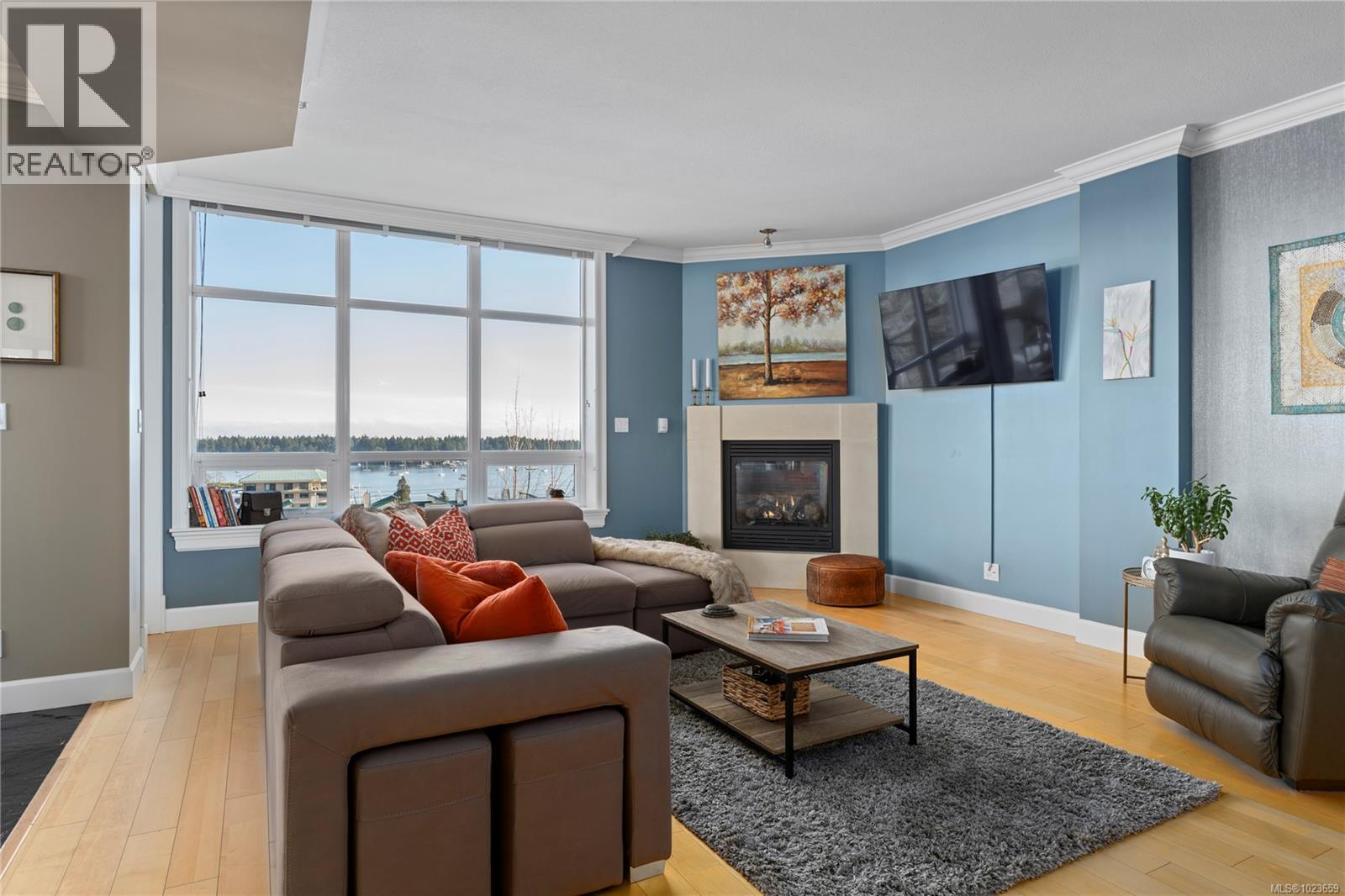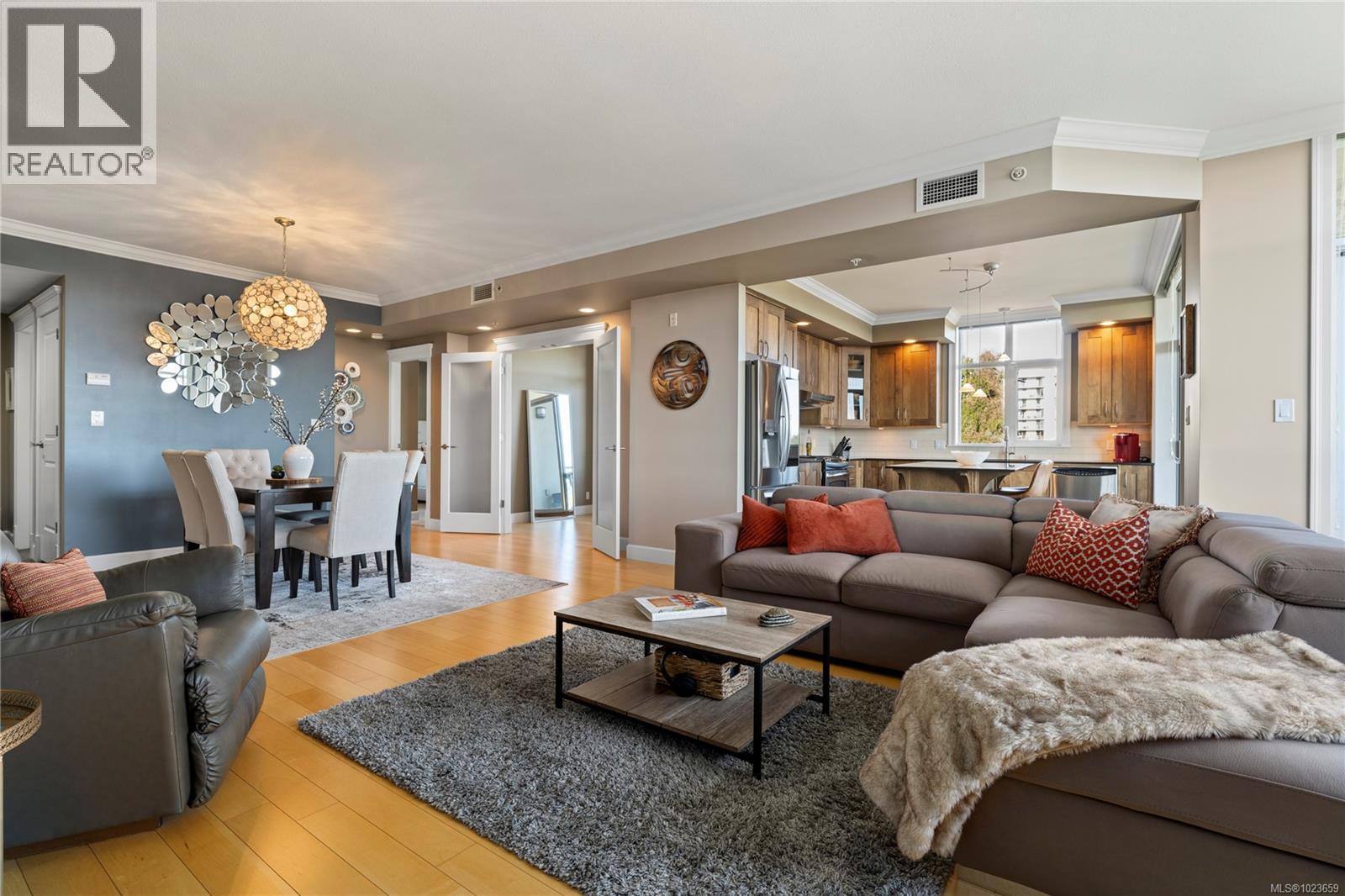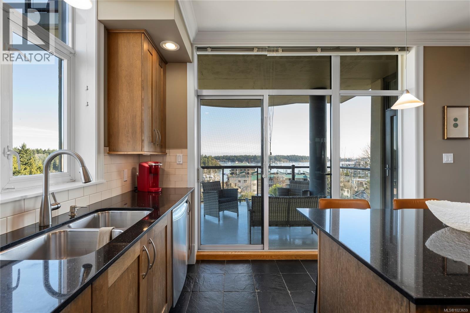 Breathtaking Ocean Views set the tone for an elevated coastal living experience at Marine Vista, one of Nanaimo’s most prestigious and impeccably maintained concrete residences. From the moment you enter the elegant lobby, the building exudes luxury, privacy, and pride of ownership, complemented by a serene grassed courtyard that offers a peaceful retreat in the heart of the city. This spacious 2 bedroom plus den, 2-bath home features impressive ocean, marina, and mountain views enjoyed from inside and from two decks. Inside, high ceilings and expansive windows flood the home with natural light, highlighting its modern design and refined finishes. The chef-inspired kitchen offers beautiful stainless steel appliances, an abundance of cabinetry, and generous counter space, all perfect for entertaining or everyday living. Enjoy seamless indoor-outdoor living with a patio sliding door leading to a large covered deck, plus a second private deck off the primary bedroom, both ideal for taking in the ever-changing coastal scenery. The primary suite is a true retreat, complete with a spa-like ensuite featuring double sinks, a separate shower, and a luxurious bathtub. A versatile den provides flexible space for a home office, studio, or wellness room. Two secure underground parking stalls and a small storage locker add rare convenience, while gas heating and cooking are included in the strata fee. Ideally located just steps from the Harbourfront Walkway, marinas, downtown Nanaimo’s dining and arts scene, and within walking distance to the Nanaimo Yacht Club, this residence offers an exceptional blend of modern luxury and West Coast lifestyle. Book your private showing today! All data and info approximate (30292477)