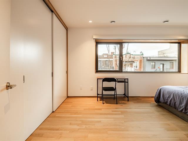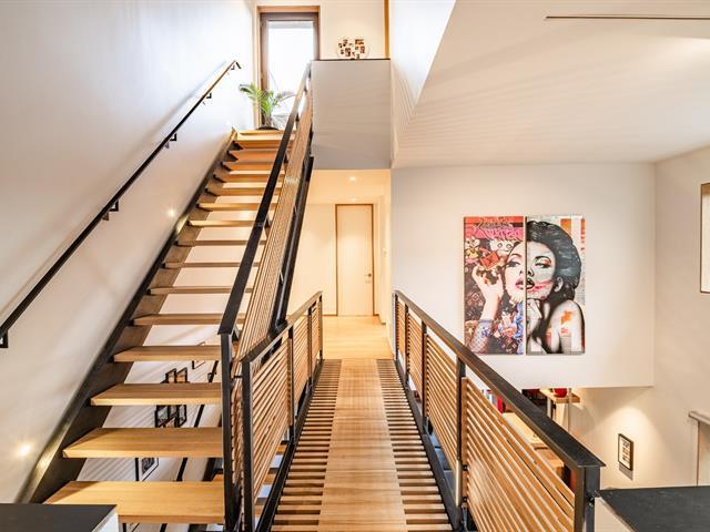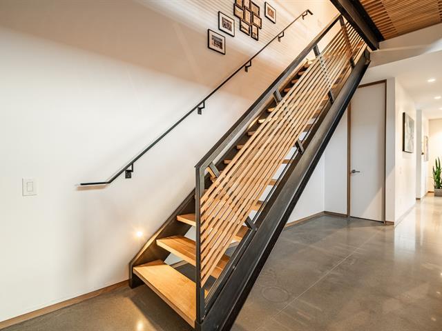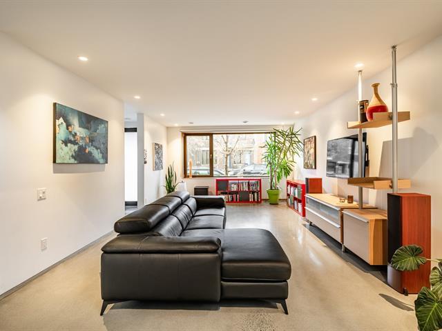 Superb corner townhouse located in the sought-after Mile-Ex neighborhood, designed by architect Henri Cleinge. Spread over three levels, it offers two bedrooms as well as a mezzanine office overlooking the main living area, two full bathrooms and a powder room. The architecture is striking, featuring ceilings over 33 feet high, a skylight, exposed concrete and refined finishes. A spacious, private and sun-filled rooftop terrace completes the property. Ideally located near Jean-Talon Market, Castelnau metro station and Little Italy. A truly exceptional property. (47461211)