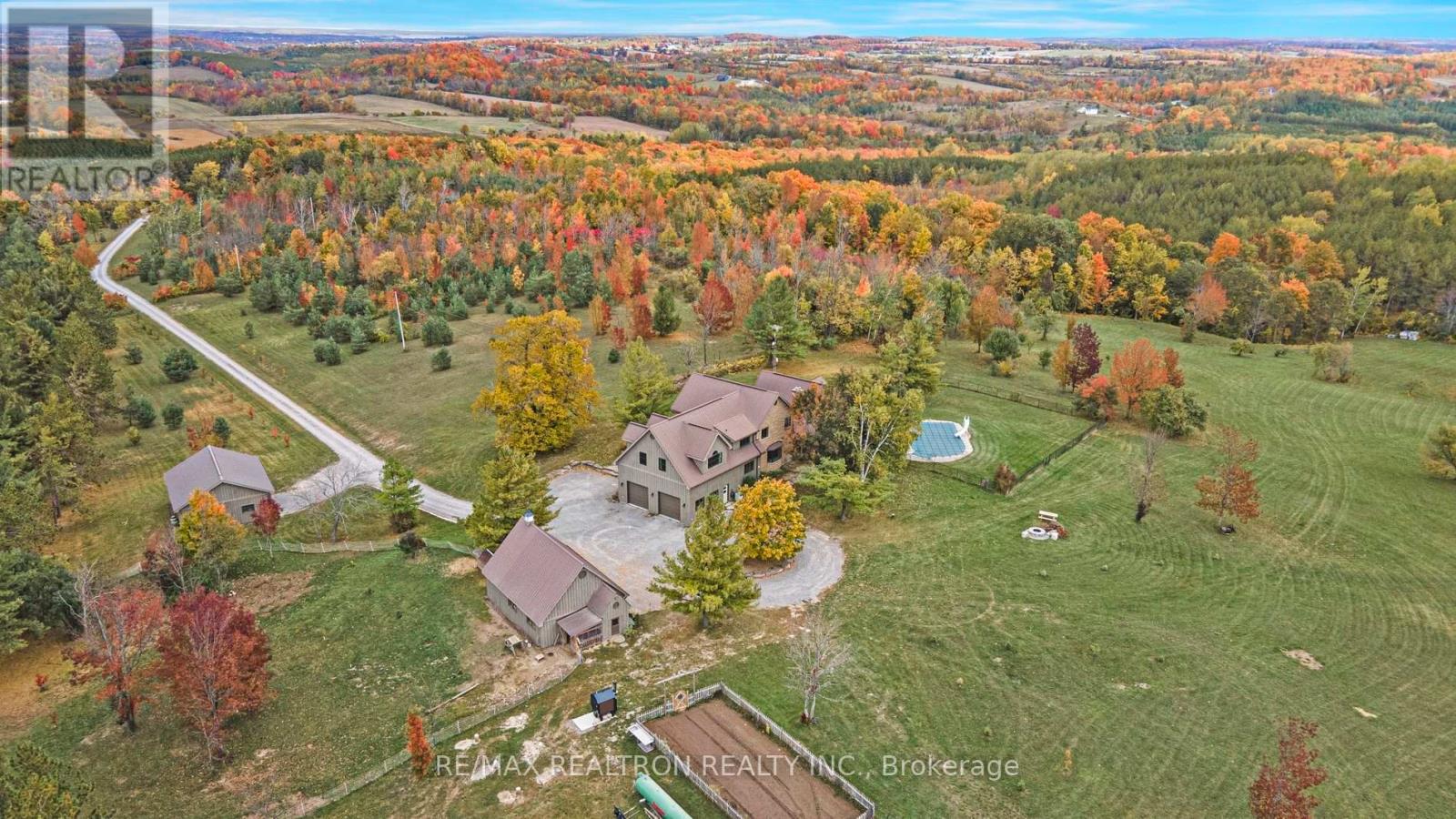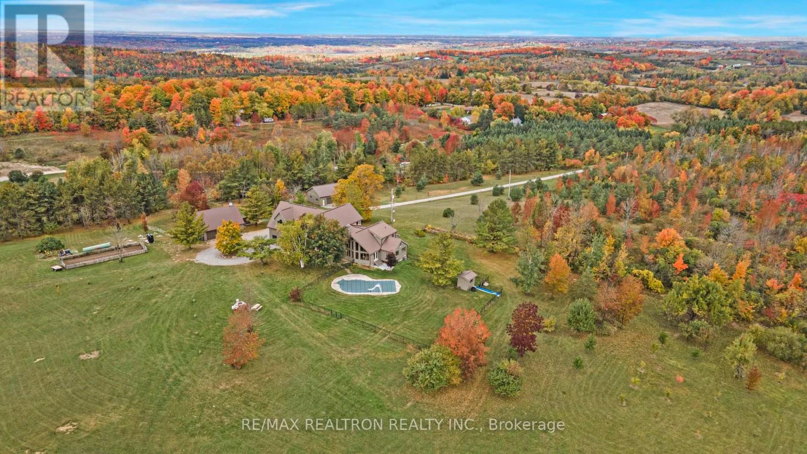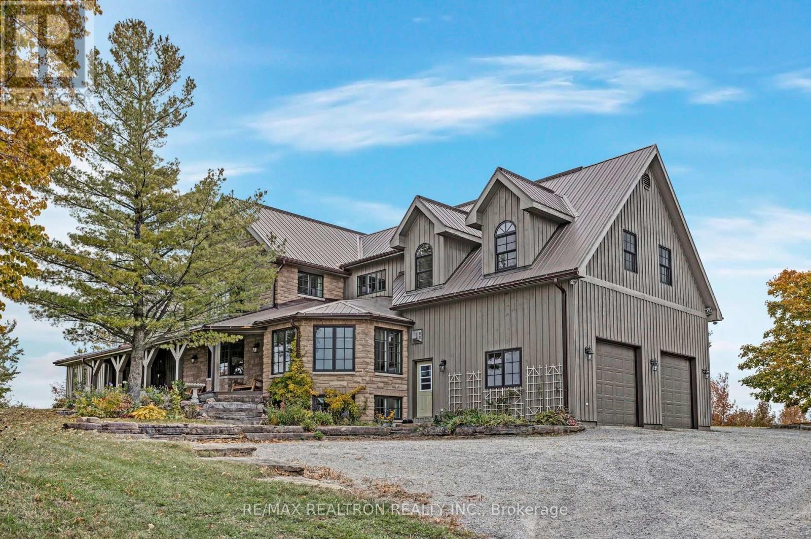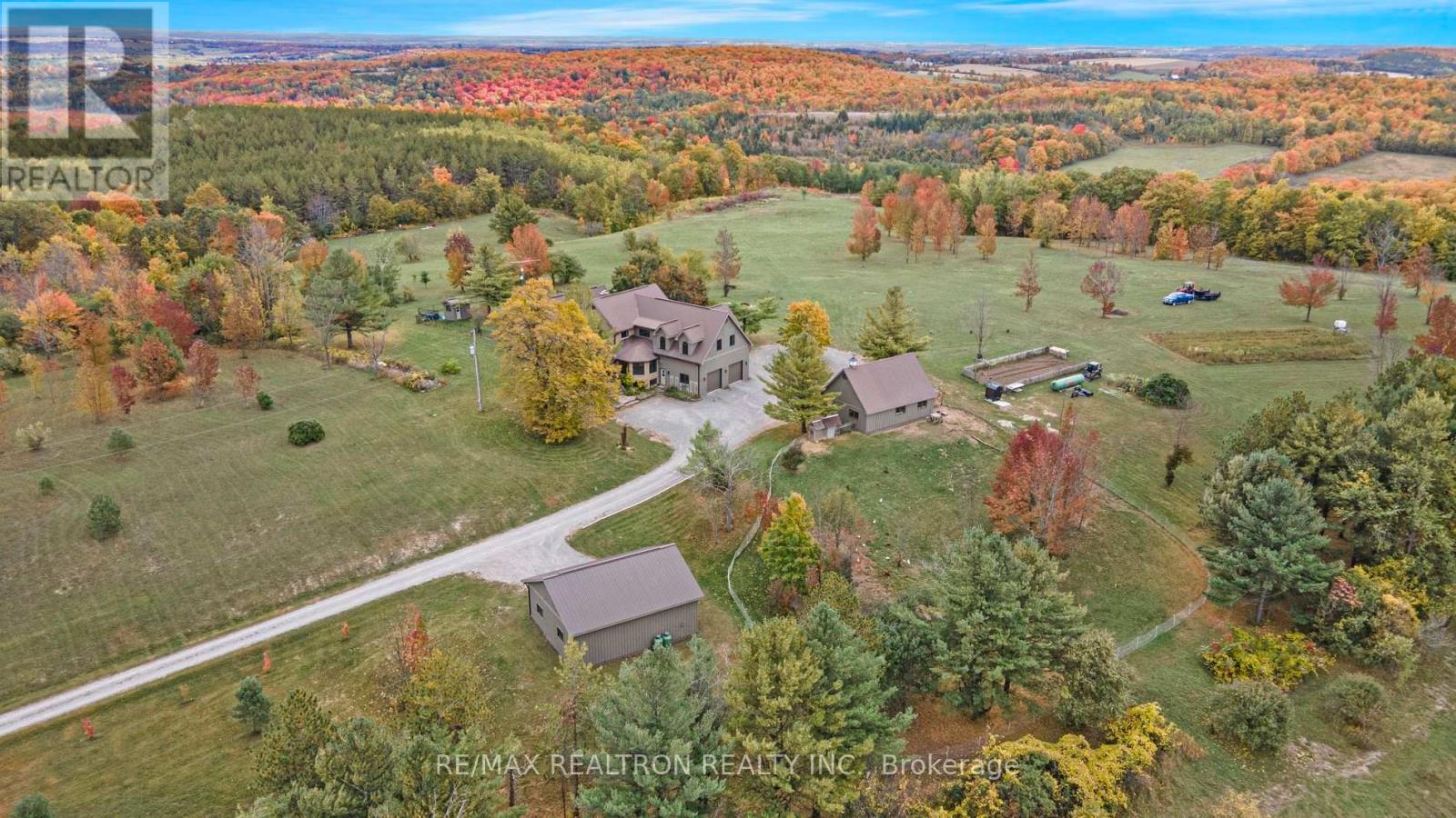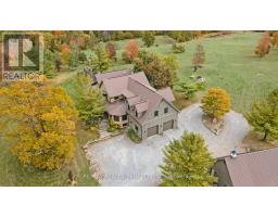 A breathtaking property! The ultimate in privacy and serenity! This unique and elegant home offers incredible views from each room, with over 6,800 square feet of living space. High ceilings; built-in speakers throughout; high-end trim work; large, stately rooms; lovely landscaping with flagstone patio and walkways. Live off the land with your very own veggie and herb gardens, maple syrup, fruits from the orchard and fresh eggs; approximately 30 acres with walking trails. You can live off grid by simply adding solar panels. Recently added boiler/heat exchanger heats entire home with wood. Propane available as back-up. 2+ car garage with oversized doors and radiant floor heating is attached to home. Another detached 2 car garage plus garden shed with chicken coop, plus a third, detached 3+ car garage/workshop with radiant floor heating and ICF construction. Metal roof on all buildings. Less than 30 min to Hwy 407. If you are looking for something absolutely unique and one-of-a kind, your search ends here! (41980910)