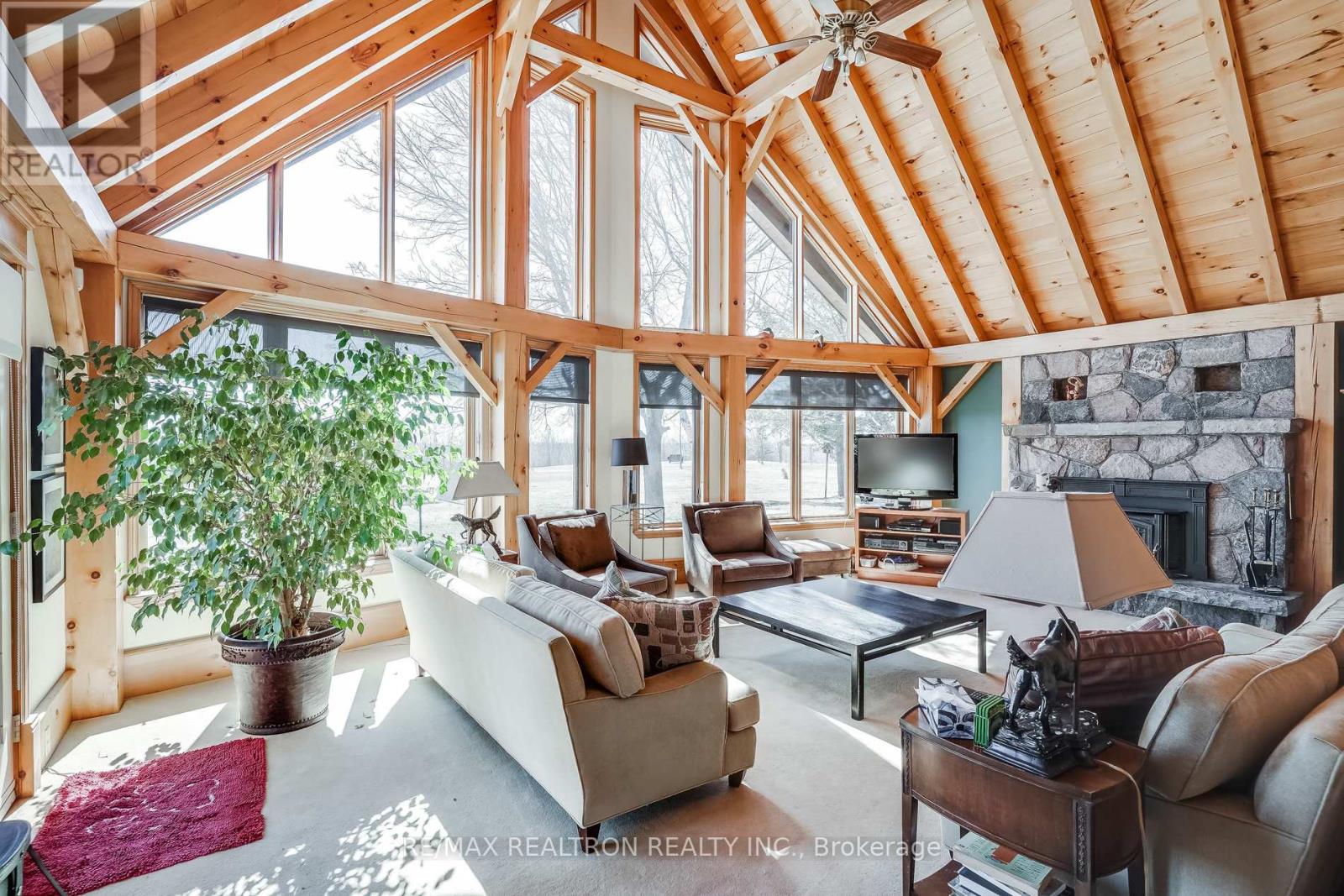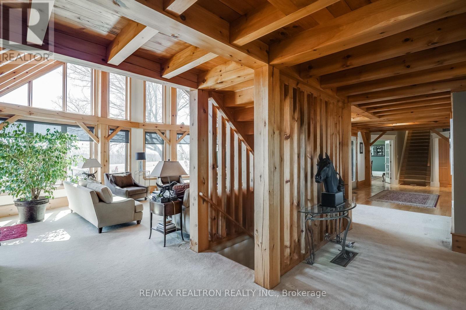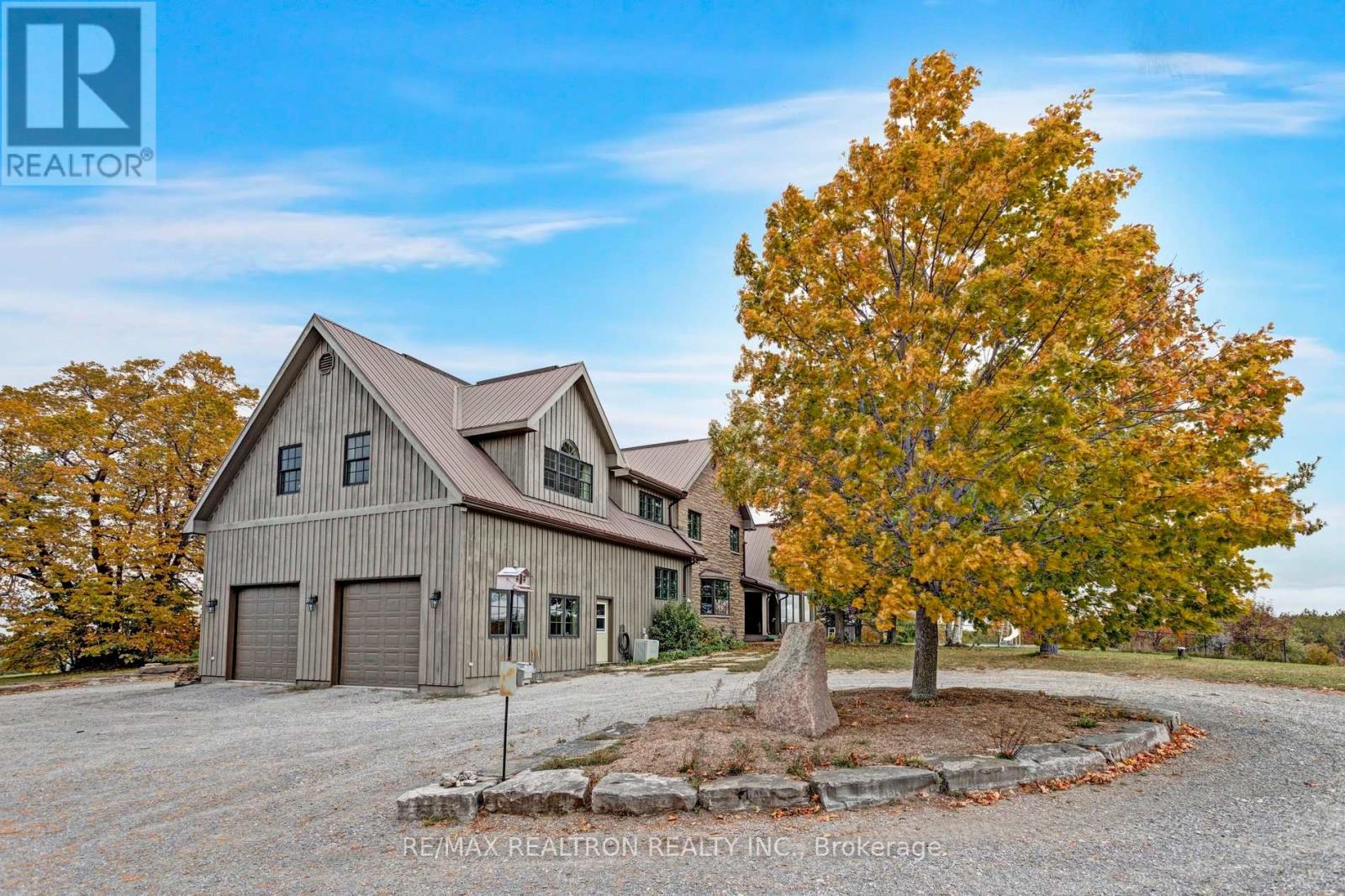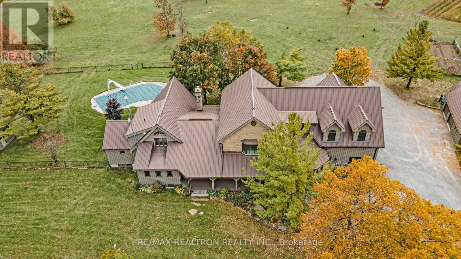 A breathtaking property! The ultimate in privacy and serenity! This unique and elegant home offers incredible views from each room, with over 6,800 square feet of living space. High ceilings; built-in speakers throughout; high-end trim work; large, stately rooms; lovely landscaping with flagstone patio and walkways. Live off the land with your very own veggie and herb gardens, maple syrup, fruits from the orchard and fresh eggs; approximately 30 acres with walking trails. You can live off grid by simply adding solar panels. Recently added boiler/heat exchanger heats entire home with wood. Propane available as back-up. 2+ car garage with oversized doors and radiant floor heating is attached to home. Another detached 2 car garage plus garden shed with chicken coop, plus a third, detached 3+ car garage/workshop with radiant floor heating and ICF construction. Metal roof on all buildings. Less than 30 min to Hwy 407. If you are looking for something absolutely unique and one-of-a kind, your search ends here! (41980910)