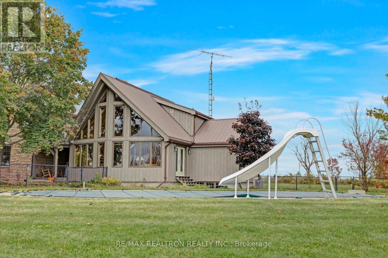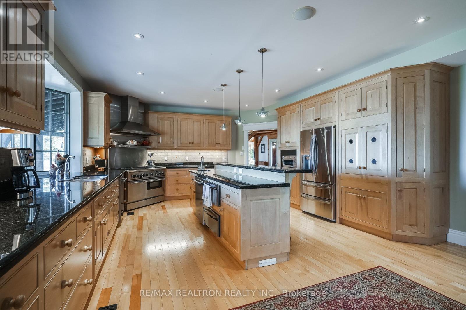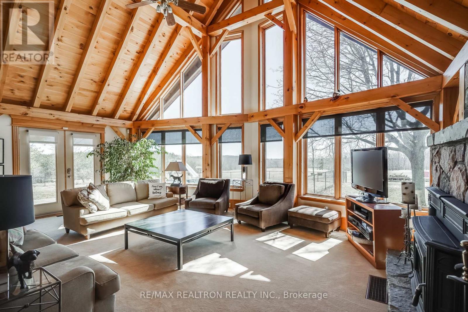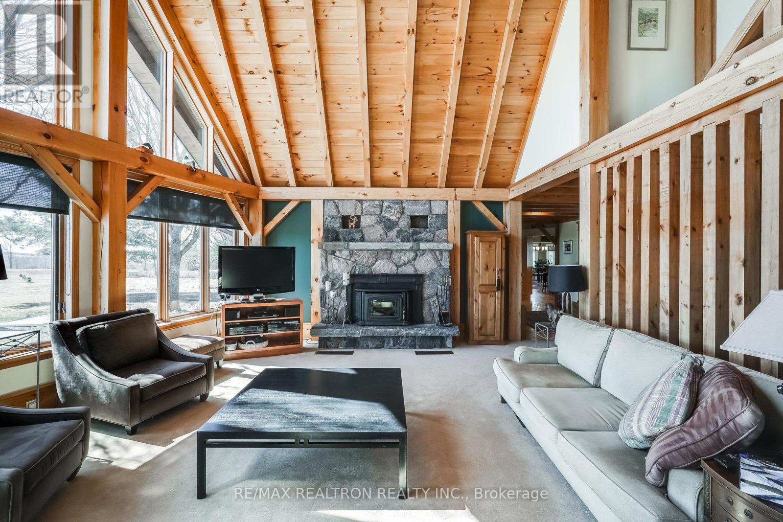 A breathtaking property! The ultimate in privacy and serenity! This unique and elegant home offers incredible views from each room, with over 6,800 square feet of living space. High ceilings; built-in speakers throughout; high-end trim work; large, stately rooms; lovely landscaping with flagstone patio and walkways. Live off the land with your very own veggie and herb gardens, maple syrup, fruits from the orchard and fresh eggs; approximately 30 acres with walking trails. You can live off grid by simply adding solar panels. Recently added boiler/heat exchanger heats entire home with wood. Propane available as back-up. 2+ car garage with oversized doors and radiant floor heating is attached to home. Another detached 2 car garage plus garden shed with chicken coop, plus a third, detached 3+ car garage/workshop with radiant floor heating and ICF construction. Metal roof on all buildings. Less than 30 min to Hwy 407. If you are looking for something absolutely unique and one-of-a kind, your search ends here! (41980910)
