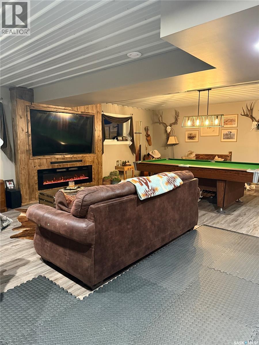 Welcome to this gorgeous 54-acre property boasting breathtaking views of the Cypress Hills, located just a short 15-minute drive east of Maple Creek. The land is well set up for livestock and equestrian use, featuring paddocks, sheltered pens, and five water bowls—three energy-free and two powered—for year-round convenience. A spacious 150 x 200 slab riding arena, illuminated by solar lights, adds to the property’s exceptional functionality. The meticulously updated home features new windows and a hot water tank, with the seller noting that the furnace was replaced in 2017. Inside, you’ll find four spacious bedrooms—including one upstairs currently used as an office—and two bathrooms, creating a comfortable family home. The home is fully modernized, down to thoughtful touches like a pot-filling tap above the stove, and offers the comfort of air conditioning. Downstairs was designed with family and friends in mind, featuring a bar, space for a pool table, a built-in entertainment centre, and even room for a workout machine. Step outside to enjoy a single-car garage near the house, a cozy firepit area, and expansive views in every direction. The fuel source is a large propane tank that requires filling only once or twice a year, and the well provides potable water. For hobbyists or those needing extra workspace, the 30 x 50 shop comes complete with a cement floor and a wood-burning stove. This unique property blends rural charm with modern conveniences—truly a must-see! (29296237)