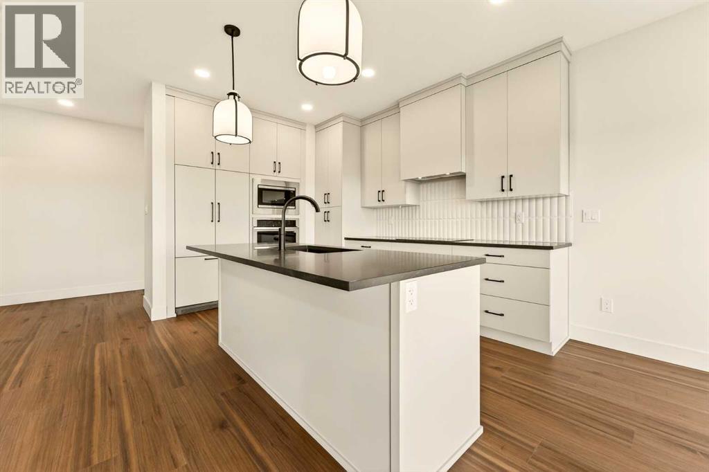 Welcome to a brand new Christensen floor plan by Stranville Living Master Builder, tucked away on a quiet cul-de-sac in the desirable Country Meadows community and set on a rare pie-shaped lot with convenient alley access. This is the kind of location buyers wait for—low traffic, extra backyard space, and a layout that actually makes sense for everyday living.The main floor is bright, open, and intentionally designed to feel both elevated and functional, anchored by a standout kitchen that truly sets the tone for the home. Extended cabinetry runs all the way to the ceiling, paired with quartz countertops and a sleek induction cooktop, while the built-in oven and microwave keep everything clean and streamlined. The panelled Fisher & Paykel fridge and matching panelled dishwasher blend seamlessly into the cabinetry, giving the kitchen a polished, high-end look without feeling overdone. Just off the kitchen, the dining and living areas flow effortlessly together and open to the spacious backyard through sliding glass doors, perfectly positioned for a future deck and indoor-outdoor entertaining.Upstairs, the layout continues to impress with a generous bonus room that works equally well as a second living space, media room, or kids’ hangout. Two large bedrooms each feature their own walk-in closet, making them ideal for family or guests, and are complemented by a well-appointed four-piece bathroom. The primary bedroom checks every box, offering plenty of space for a king-sized bed, a walk-in closet, and a four-piece ensuite highlighted by a tiled walk-in shower that feels both modern and timeless.Thoughtfully designed, beautifully finished, and located in a quiet pocket of Country Meadows, this home delivers the comfort of a new build with the layout and features that everyone is looking for. Included in the price is a 10 year new home warranty and GST! Photos are virtually staged. (31549521)