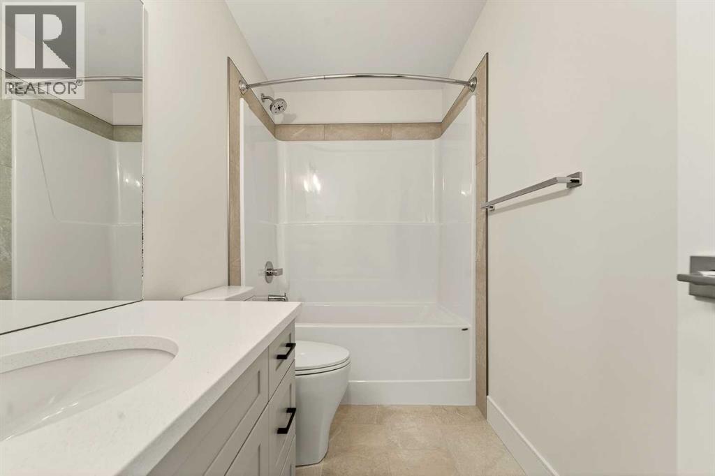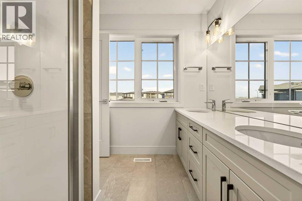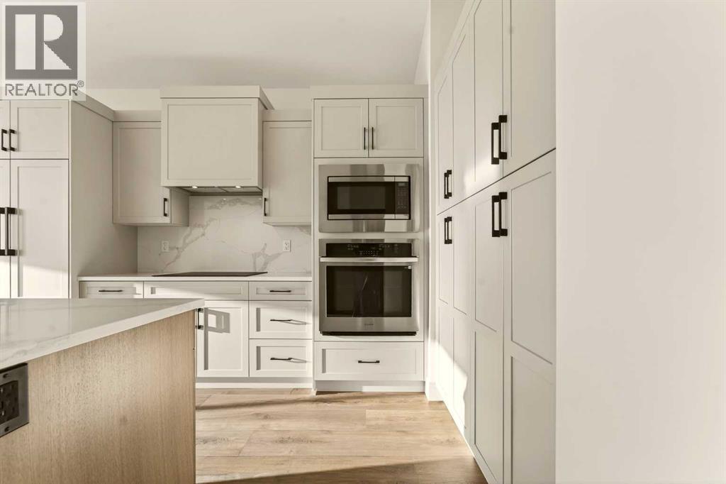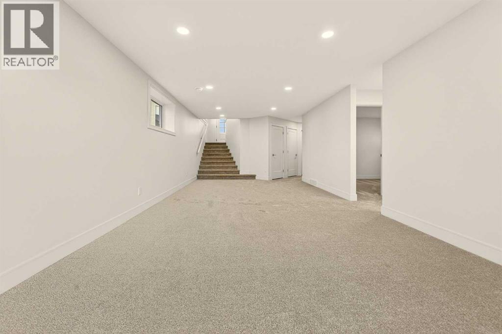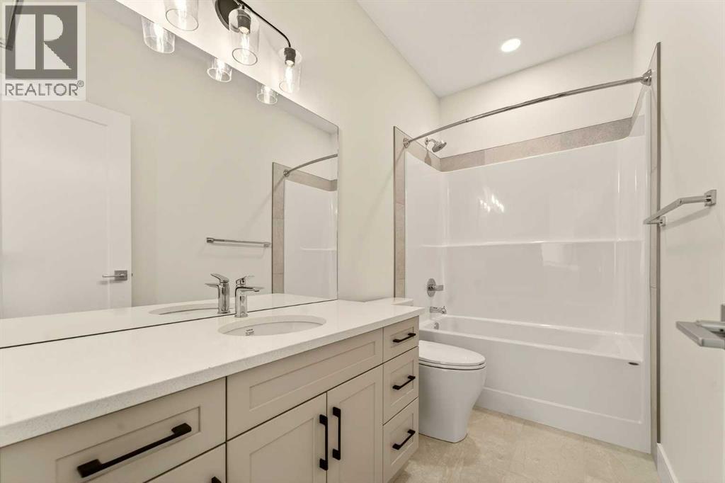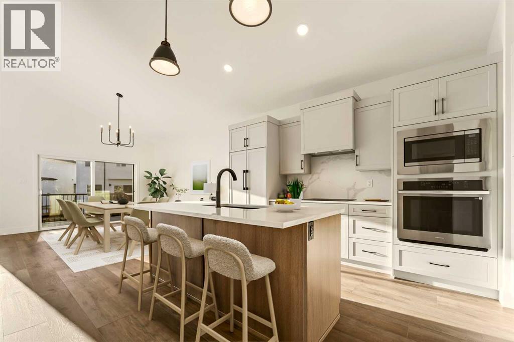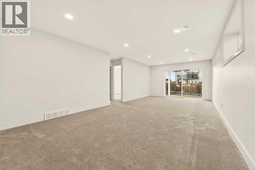 Welcome to a brand new, fully developed bi-level home built by Stranville Living Master Builder, complete with a walkout basement and finished deck, and located in one of Lethbridge’s most recreation-focused communities—Blackwolf. Tucked away on a quiet cul-de-sac, this home backs directly onto one of Blackwolf’s green strips and sits on an impressive pie-shaped lot, offering a rare combination of privacy, views, and outdoor space. Just minutes away is Legacy Park, widely regarded as the best family outdoor park in the city, making this location especially appealing for active households.The main floor is designed to impress the moment you step inside, with tall vaulted ceilings that immediately create a sense of openness and scale. The kitchen anchors the space and blends high-end finishes with thoughtful design, featuring quartz countertops, a panelled Fisher & Paykel fridge, a panelled dishwasher that disappears into the cabinetry, an induction cooktop, and built-in oven and microwave. It’s a clean, modern look that feels both elevated and practical. Adjacent to the kitchen, the dining area opens through sliding glass doors onto the finished deck, perfectly positioned to overlook the green strip and expansive backyard.The living room takes full advantage of the home’s setting with double-height windows that flood the space with natural light while framing the view and enhancing the dramatic ceiling height. Also on this level are two spacious bedrooms and a well-appointed four-piece bathroom, making the layout functional for families and guests alike.The primary bedroom is set on its own level, offering a sense of privacy that’s often hard to find. This retreat includes a spacious walk-in closet and a thoughtfully designed ensuite with dual vanities and a walk-in shower, creating a comfortable and refined space to unwind.The walkout basement is fully developed and extends the living space with two additional bedrooms and a large family room featuring slidi ng glass doors that open directly to the backyard. With direct access to the pie-shaped lot and green space beyond, this lower level feels bright, open, and seamlessly connected to the outdoors.Set in a community known for trails, parks, and lifestyle-focused design, this Blackwolf home delivers standout construction, a rare lot, and a layout that maximizes both space and setting. GST is included in the price, as well as a 10 year new home warranty, photos are virtually staged. (31549740)
