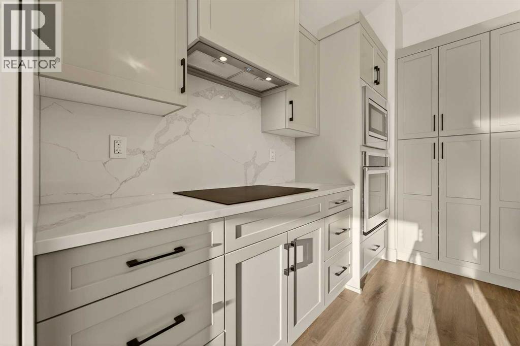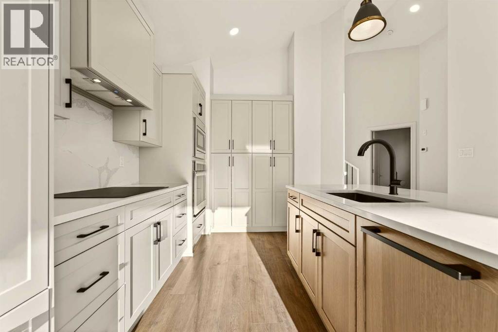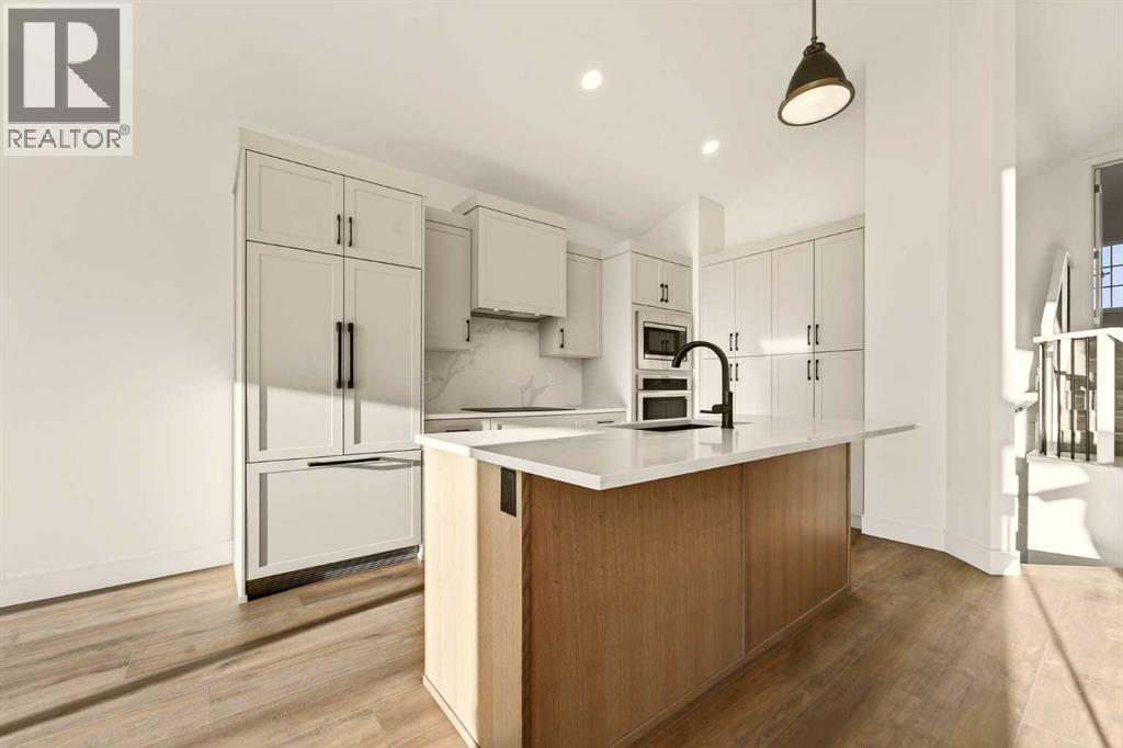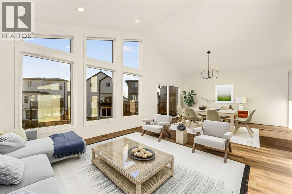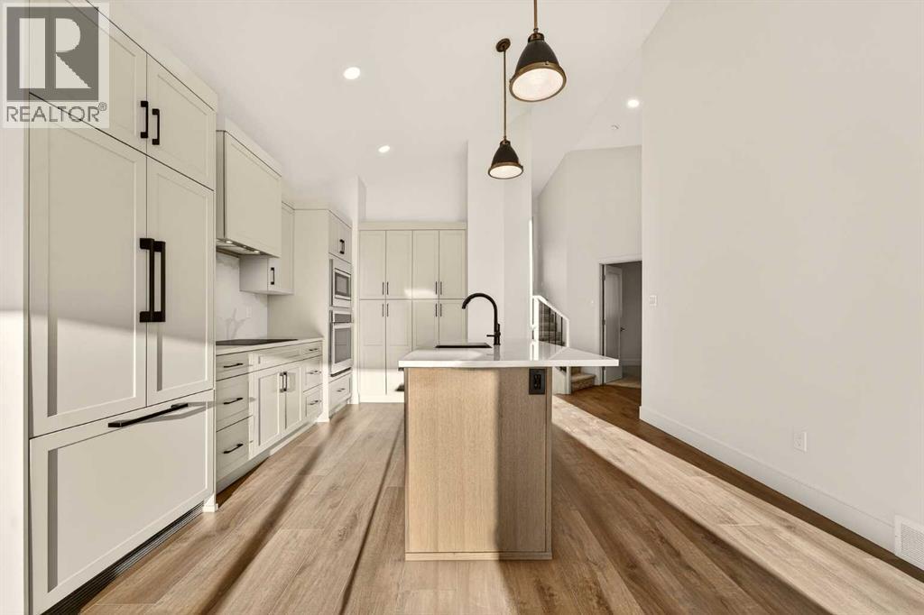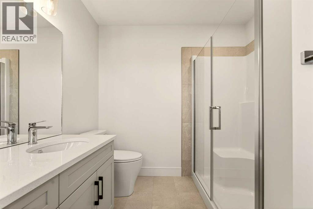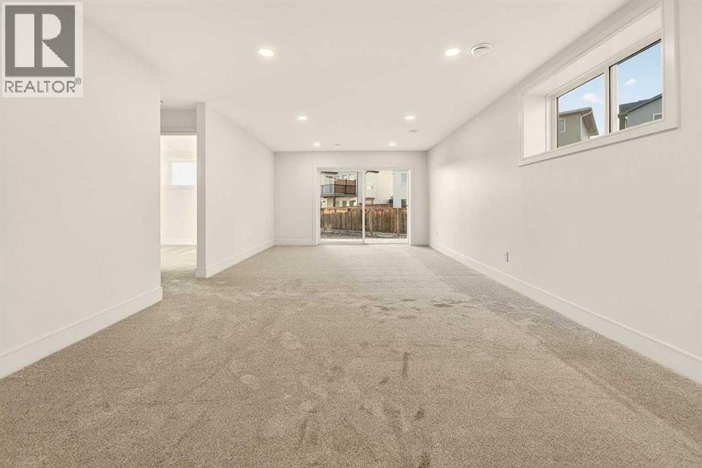 Welcome to a brand new, fully developed bi-level home built by Stranville Living Master Builder, complete with a walkout basement and finished deck, and located in one of Lethbridge’s most recreation-focused communities—Blackwolf. Tucked away on a quiet cul-de-sac, this home backs directly onto one of Blackwolf’s green strips and sits on an impressive pie-shaped lot, offering a rare combination of privacy, views, and outdoor space. Just minutes away is Legacy Park, widely regarded as the best family outdoor park in the city, making this location especially appealing for active households.The main floor is designed to impress the moment you step inside, with tall vaulted ceilings that immediately create a sense of openness and scale. The kitchen anchors the space and blends high-end finishes with thoughtful design, featuring quartz countertops, a panelled Fisher & Paykel fridge, a panelled dishwasher that disappears into the cabinetry, an induction cooktop, and built-in oven and microwave. It’s a clean, modern look that feels both elevated and practical. Adjacent to the kitchen, the dining area opens through sliding glass doors onto the finished deck, perfectly positioned to overlook the green strip and expansive backyard.The living room takes full advantage of the home’s setting with double-height windows that flood the space with natural light while framing the view and enhancing the dramatic ceiling height. Also on this level are two spacious bedrooms and a well-appointed four-piece bathroom, making the layout functional for families and guests alike.The primary bedroom is set on its own level, offering a sense of privacy that’s often hard to find. This retreat includes a spacious walk-in closet and a thoughtfully designed ensuite with dual vanities and a walk-in shower, creating a comfortable and refined space to unwind.The walkout basement is fully developed and extends the living space with two additional bedrooms and a large family room featuring slidi ng glass doors that open directly to the backyard. With direct access to the pie-shaped lot and green space beyond, this lower level feels bright, open, and seamlessly connected to the outdoors.Set in a community known for trails, parks, and lifestyle-focused design, this Blackwolf home delivers standout construction, a rare lot, and a layout that maximizes both space and setting. GST is included in the price, as well as a 10 year new home warranty, photos are virtually staged. (31549740)