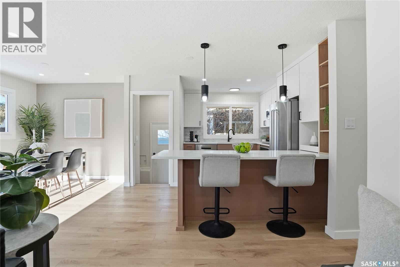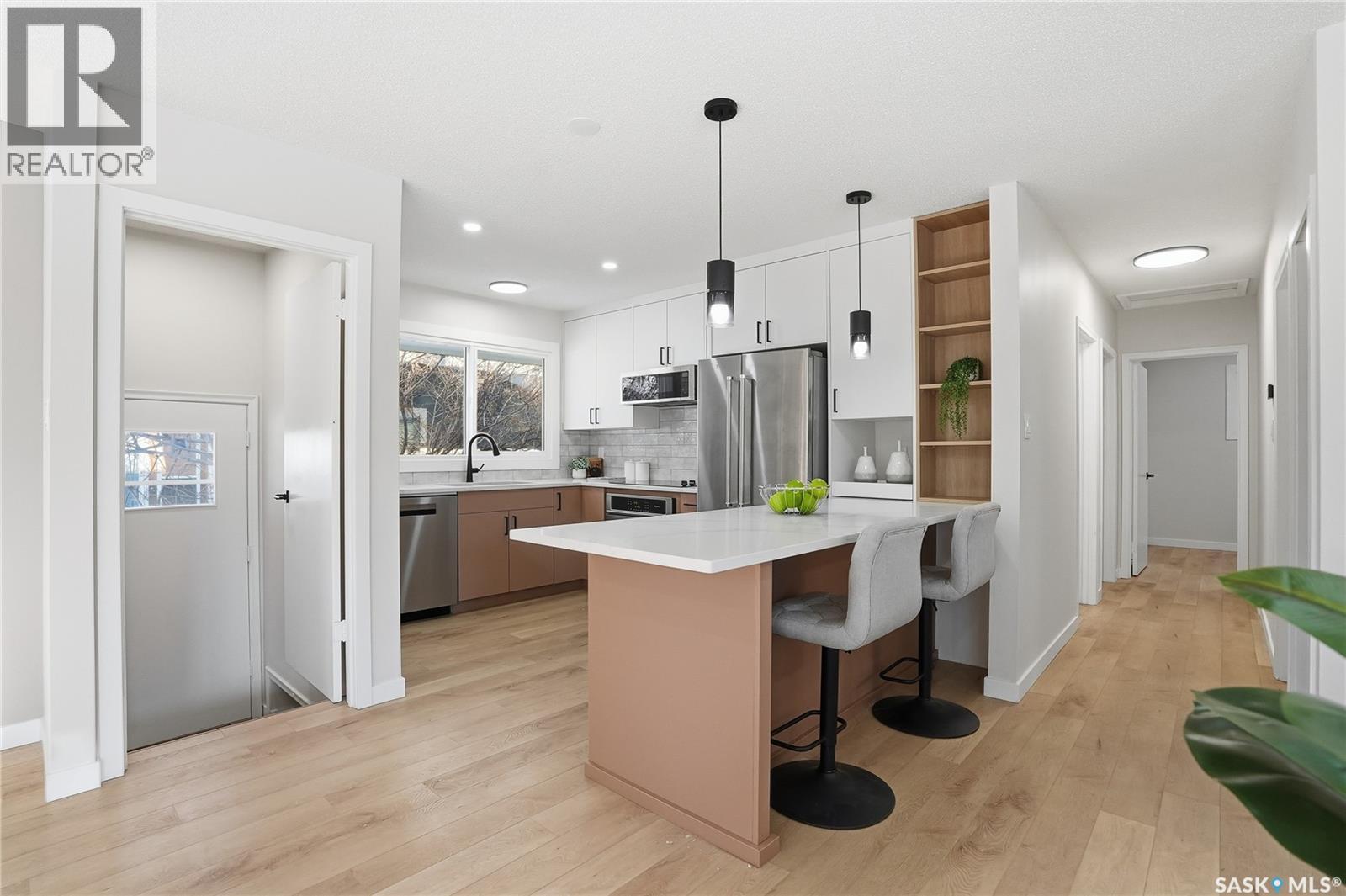 Extensively and professionally renovated, this stunning Brevoort Park home is truly move-in ready. Set in one of Saskatoon’s most sought-after neighbourhoods, you’ll love the convenience of being close to schools, parks, Circle Drive, and the amenities of 8th Street. The main floor offers a bright, open, and functional layout featuring three generous bedrooms, a stylish and practical kitchen, and a beautifully sunlit living room that flows seamlessly into a spacious dining area. A modern five-piece bathroom completes this level. With a separate entrance, the lower level offers excellent flexibility and revenue potential. The thoughtfully designed non-conforming suite is ideal for extended family, a nanny suite, rental income, or Airbnb. It includes a brand-new kitchen, comfortable living and dining space, two bedrooms (one bedroom window may not meet current egress requirements), a three-piece bathroom, and a dedicated laundry area. A separate laundry and mechanical room serve the main floor. Upgrades are extensive and include: new flooring throughout, windows, furnace, central air conditioning, appliances (one set of laundry currently in use), bathrooms, paint, trim and baseboards, exterior paint, and new electrical and plumbing fixtures. Outside, enjoy a fully fenced yard complete with a fire-pit area and storage shed. The property also offers a three-car driveway, carport, rear alley access, and ample space to build a future double garage. A beautifully updated home in an exceptional location — perfect for families, investors, or those looking for flexible living options. (29296336)
