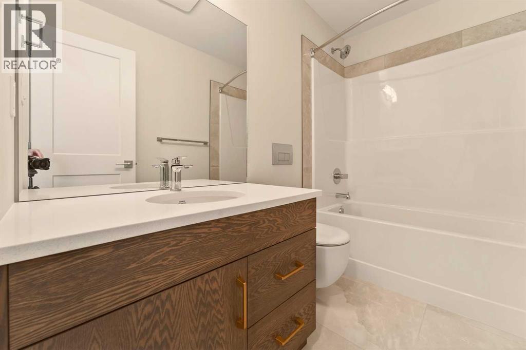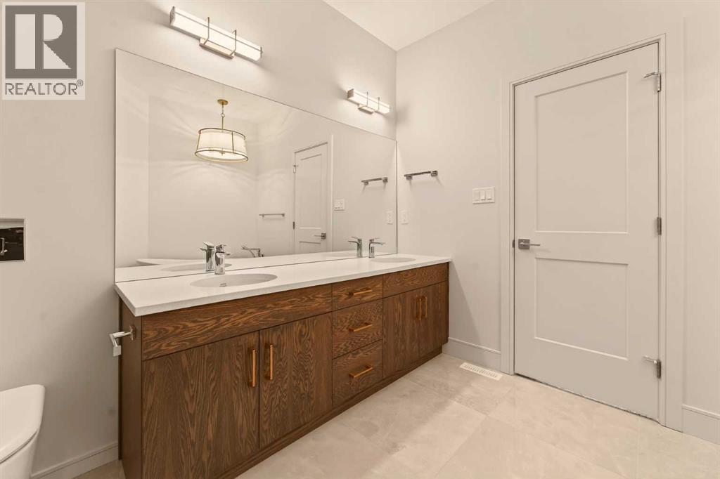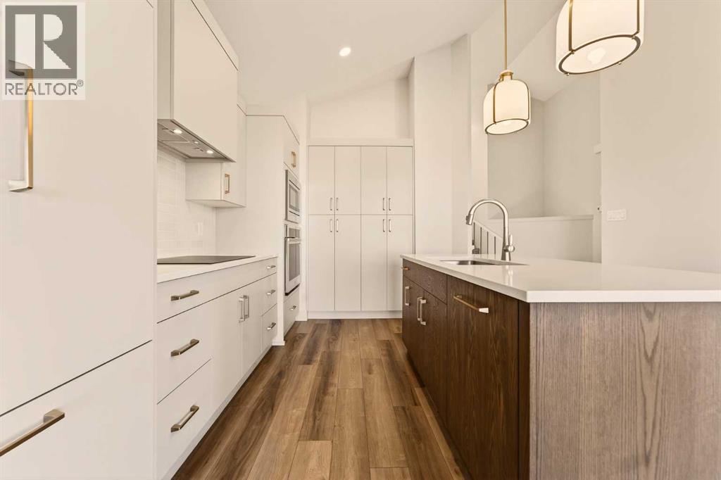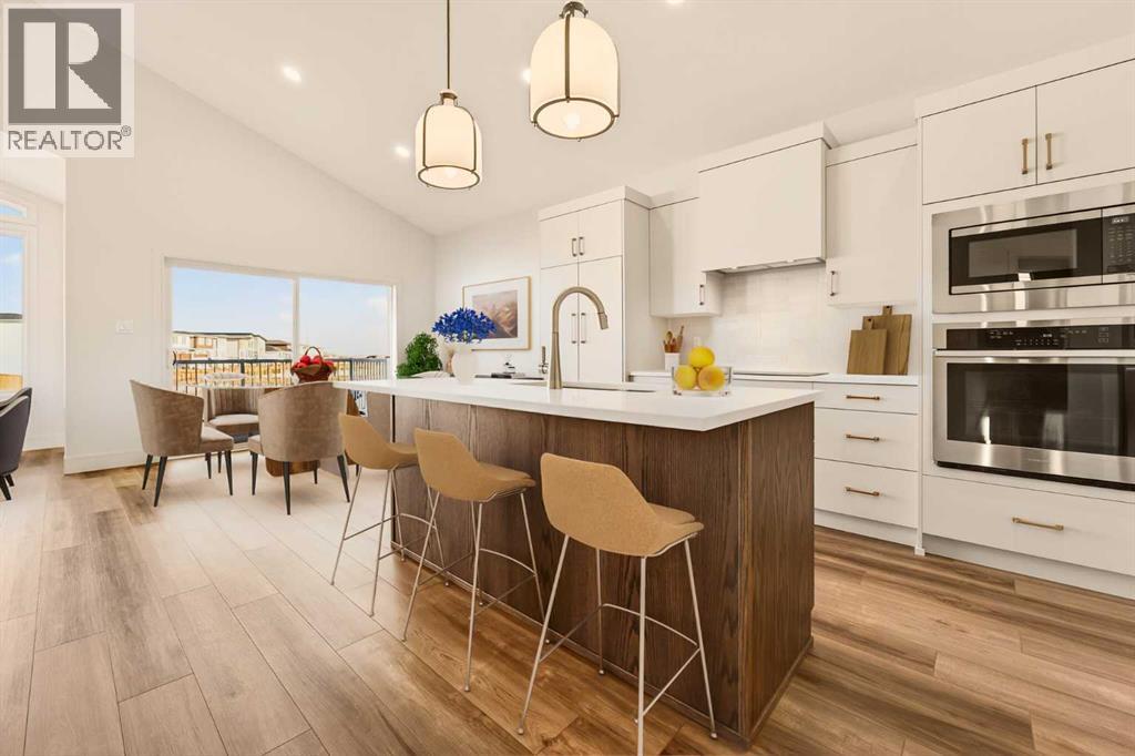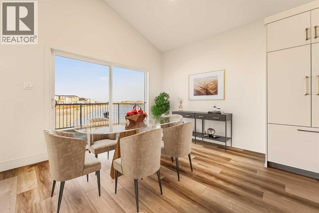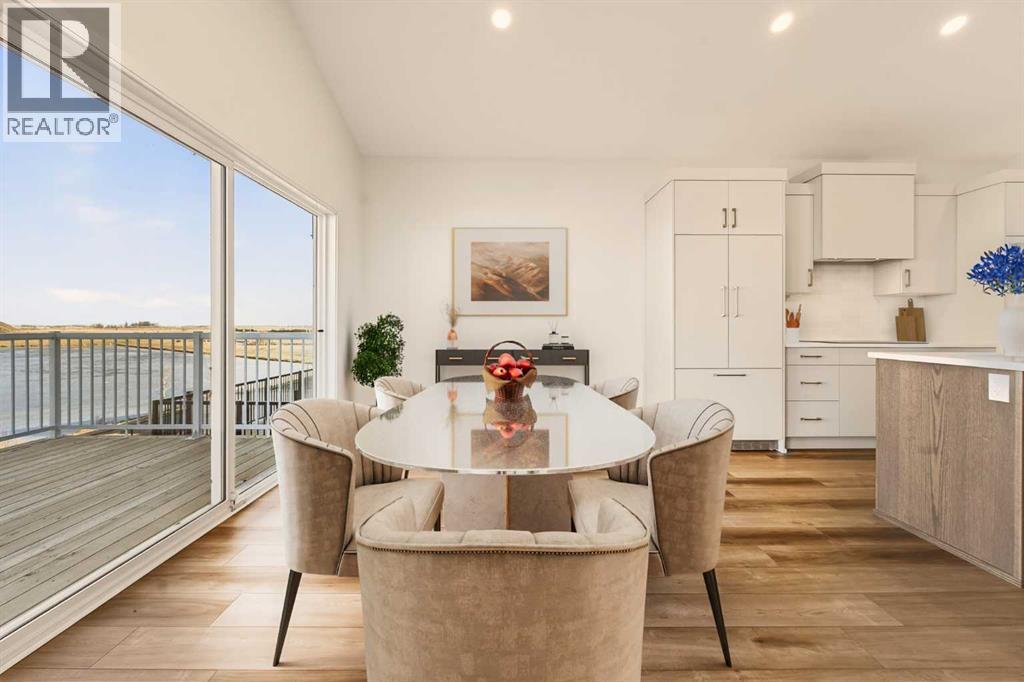 Built by Stranville Living Master Builder, this brand new bi-level walkout home is beautifully positioned backing directly onto a pond in the highly sought-after community of Southbrook. GST is included in the sale price. Southbrook is widely regarded as one of the most convenient new developments in Lethbridge, offering quick access to everyday essentials while still feeling calm and residential. From here, you’re minutes to Henderson Lake, Evergreen Golf Centre, and major shopping hubs including Costco and Real Canadian Superstore, with an elementary school comfortably within walking distance.Stepping onto the main level, the vaulted ceilings immediately create a sense of scale that feels both open and dramatic, setting the tone for the rest of the home. The upgraded kitchen is a standout, featuring quartz countertops, soft-close cabinetry, a sleek induction cooktop, built-in oven and microwave, and a fully paneled Fisher & Paykel refrigerator that blends seamlessly into the cabinetry for a clean, modern look. The adjoining dining room is flooded with natural light and opens through sliding glass doors onto a finished deck overlooking the pond, making indoor-outdoor living effortless.The living room carries that same sense of grandeur, highlighted by chalet-style windows that rise upward and perfectly frame the pond beyond, turning the view into a focal point year-round. This level also includes two spacious bedrooms and a well-appointed four-piece bathroom, offering flexibility for family, guests, or a home office setup.The upper level is dedicated entirely to the primary retreat, creating a private space separated from the rest of the home. The primary bedroom enjoys elevated views and flows into a five-piece ensuite complete with dual vanities, a tiled walk-in shower, and a spacious walk-in closet designed for everyday functionality. With its walkout basement, thoughtful layout, and one of Southbrook’s most desirable pond-backed settings, this home delive rs a refined balance of comfort, design, and location. This home is virtually staged, and included in the price is a 10 year new home warranty. (31549297)