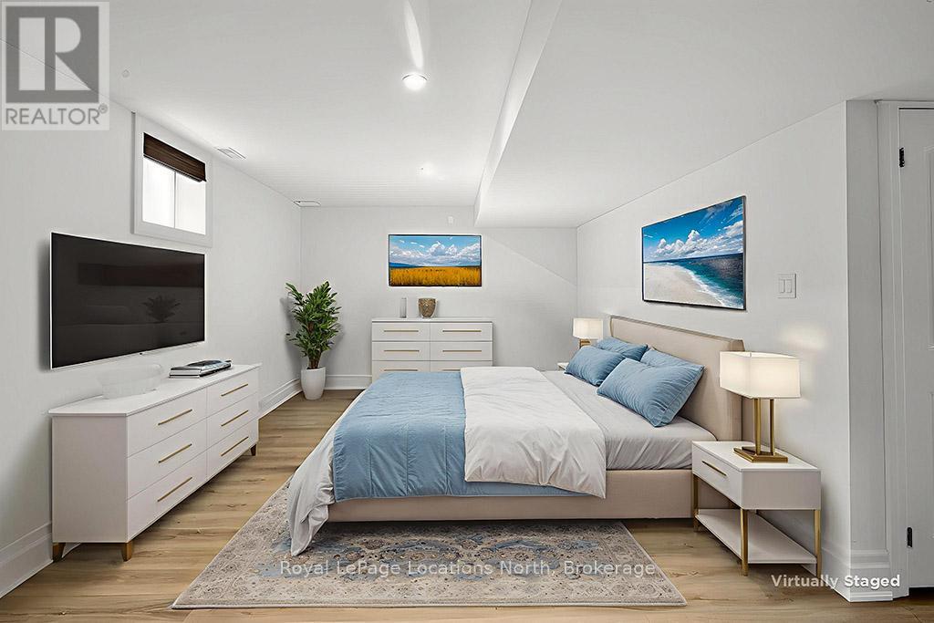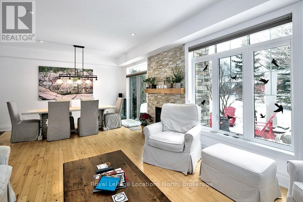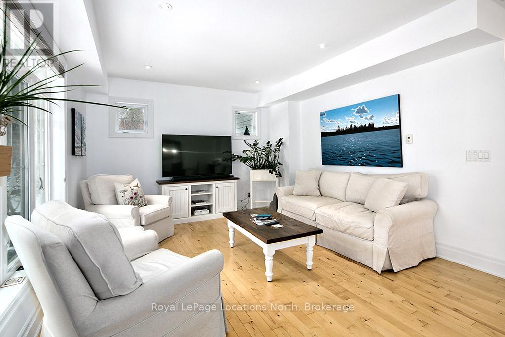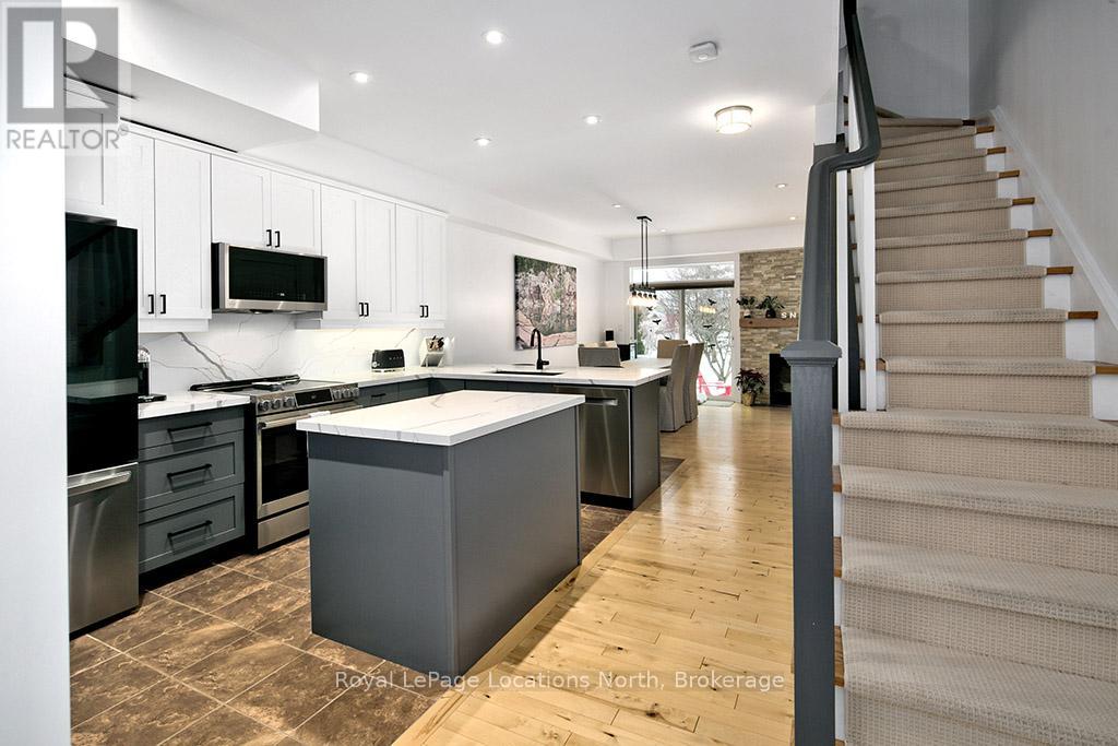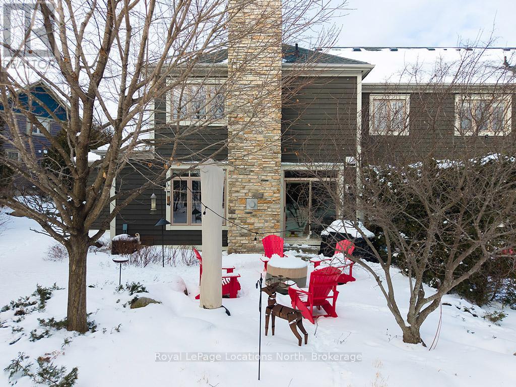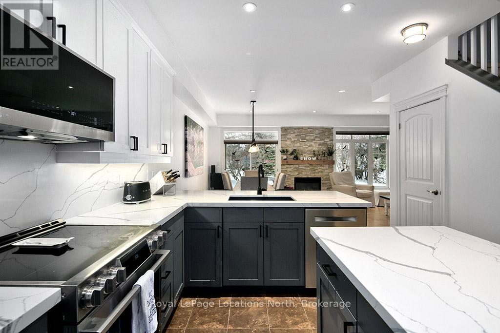 This sun-filled end-unit villa in sought-after Lora Bay offers a refined yet comfortable living experience, thoughtfully updated for today's lifestyle. The main floor is designed for easy living and entertaining, featuring an open layout with hardwood flooring throughout. The updated kitchen showcases sleek new stainless appliances, stunning countertops, and a contemporary backsplash, flowing effortlessly into the dining area and inviting living space. A gas fireplace with stone surround anchors the living room, with direct access to a private stone patio framed by mature trees and greenery-ideal for relaxing or hosting outdoors. A powder room completes this level. Upstairs, two generously sized bedrooms each enjoy their own private ensuite, creating excellent separation and comfort for owners and guests alike. Convenient upper-level laundry and additional storage add to the home's practicality. The finished lower level expands the living space with a spacious recreation room suitable for movie nights, hobbies, or guest overflow, complemented by a full 3-piece bathroom. An attached double garage provides plenty of space for vehicles, storage, and outdoor equipment. Residents enjoy the exceptional Lora Bay lifestyle, with access to waterfront amenities, golf, walking trails, and the Clubhouse which includes a gym, lounge areas, and a restaurant. Just minutes to the ski hills and the vibrant communities of Thornbury and Meaford. (41981808)