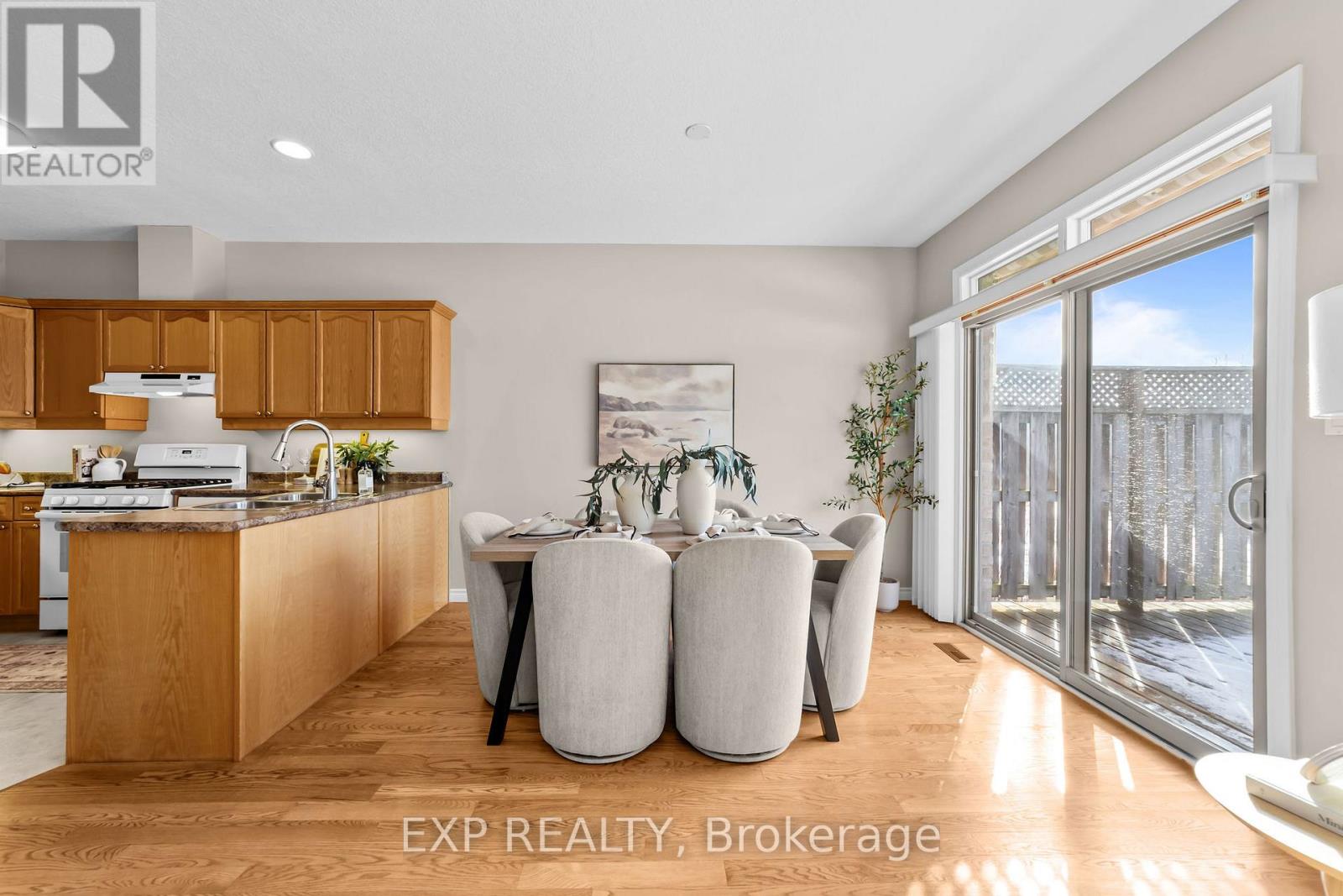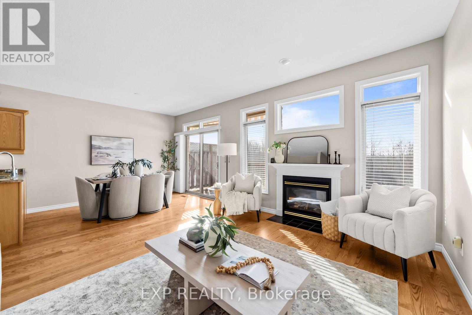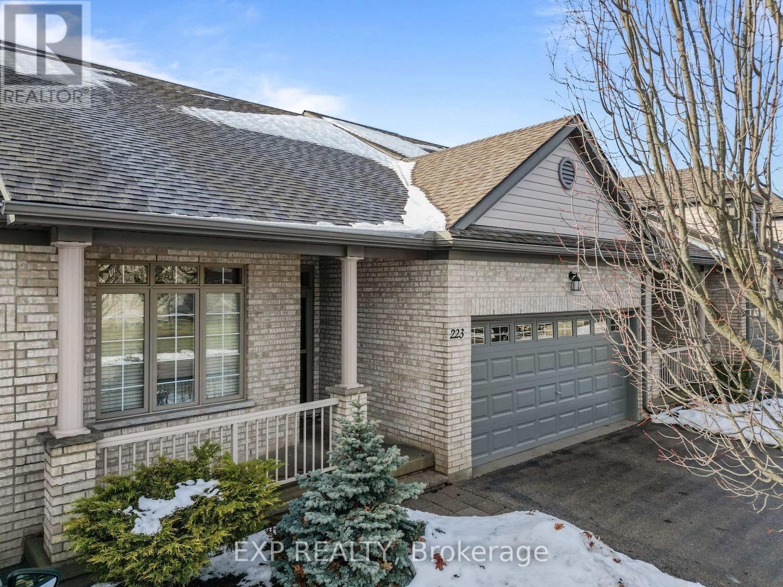 West-facing sunsets, protected green space, and everything you need on one level. This bungalow-style residence at 600 Hyde Park Road, Unit 223 is quietly positioned backing onto Sifton Bog, offering a rare blend of walkable convenience and nature-filled surroundings. The home features 1,169 sq ft of bright main-floor living plus an additional 1,159 sq ft unfinished walkout basement, providing exceptional flexibility for future use. The open-concept main level showcases oak hardwood flooring refinished in 2022, flowing seamlessly through the living room, hallway, and both bedrooms. A cozy gas fireplace anchors the living space, while west-facing windows and patio doors capture tranquil treed views and stunning sunset skies, filling the home with warm natural light throughout the afternoon and evening. Step outside to the private deck and enjoy peaceful sunsets overlooking protected greenery. The kitchen offers ample cabinetry with a stove and dishwasher updated in 2018, complemented by main-floor laundry with a new dryer installed in 2024. The primary bedroom includes a walk-in closet and private ensuite, with a second full bathroom for guests. The walkout basement with bathroom rough-in presents outstanding future potential for a recreation room, guest suite, or hobby space. Additional highlights include a double-car garage, new furnace and air conditioning in 2019, and a setting that feels tucked away while remaining within walking distance to shopping, dining, and everyday amenities. A rare opportunity for those seeking bungalow-style living with sunset views, privacy, and long-term flexibility. (41981801)