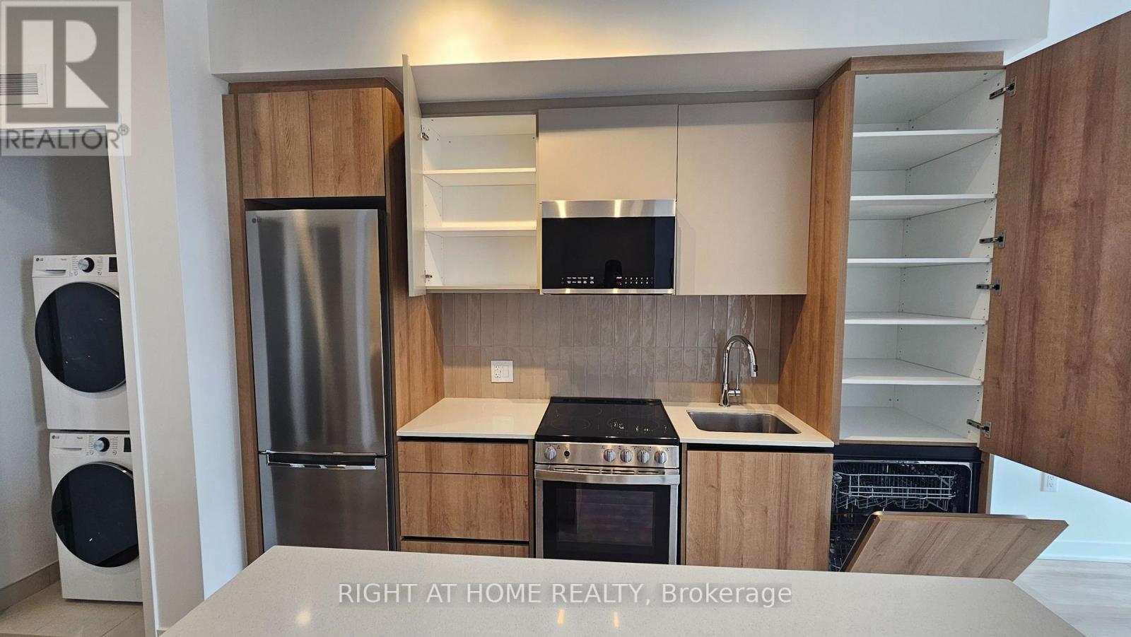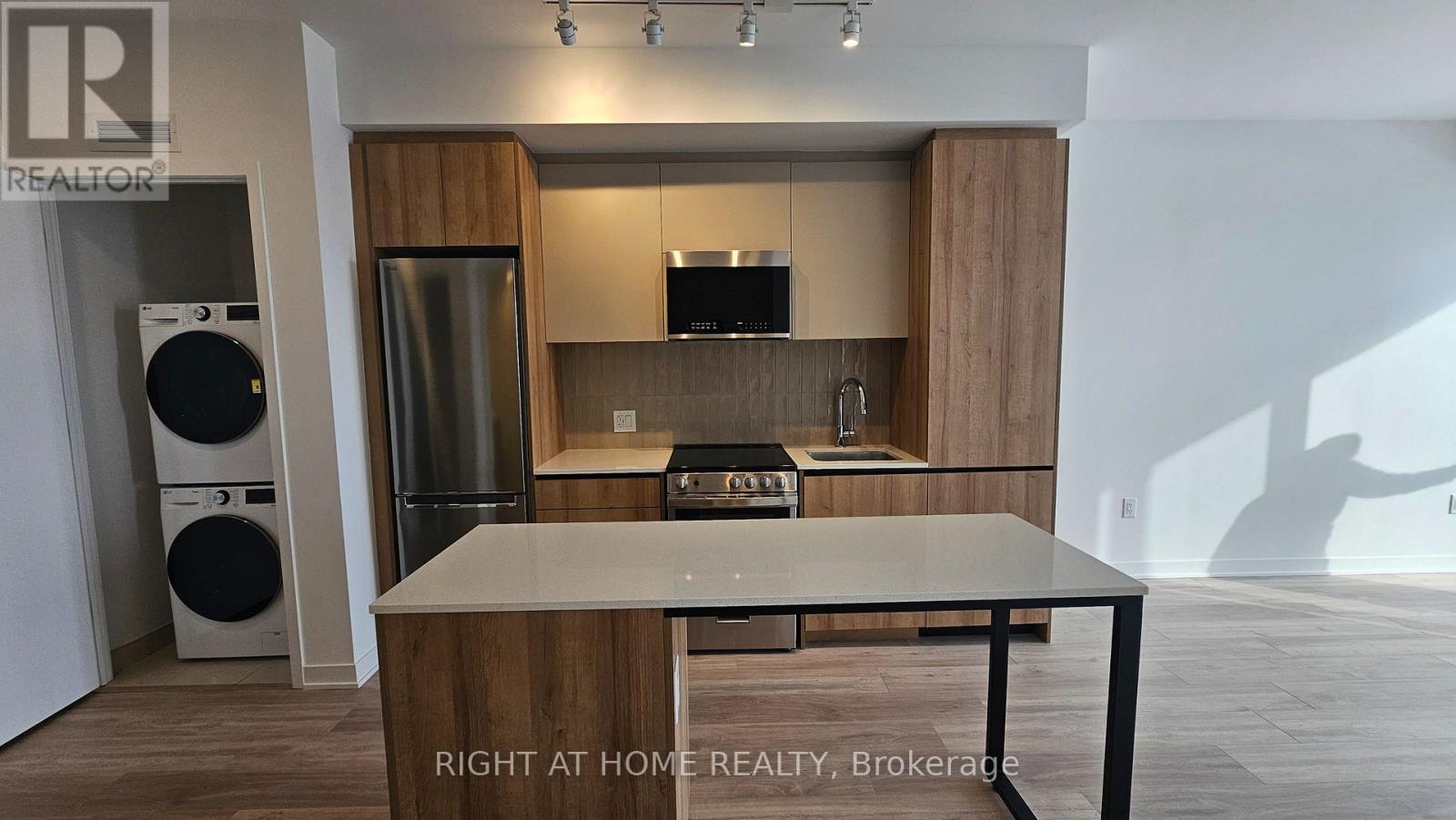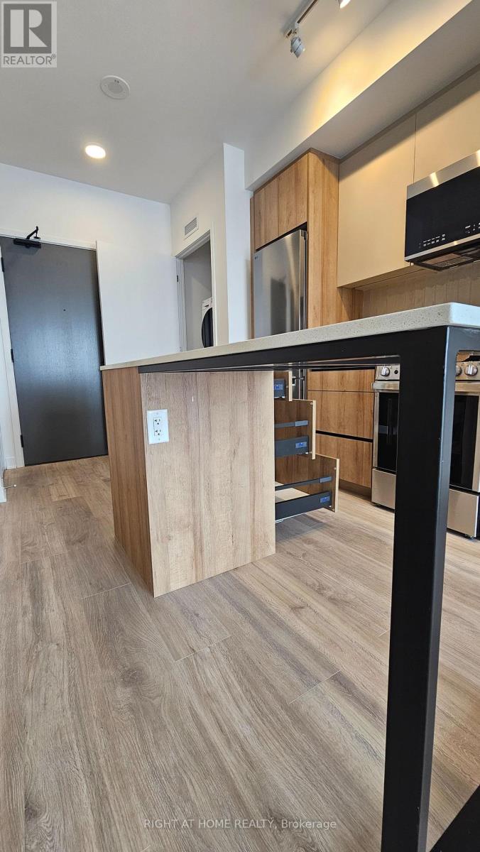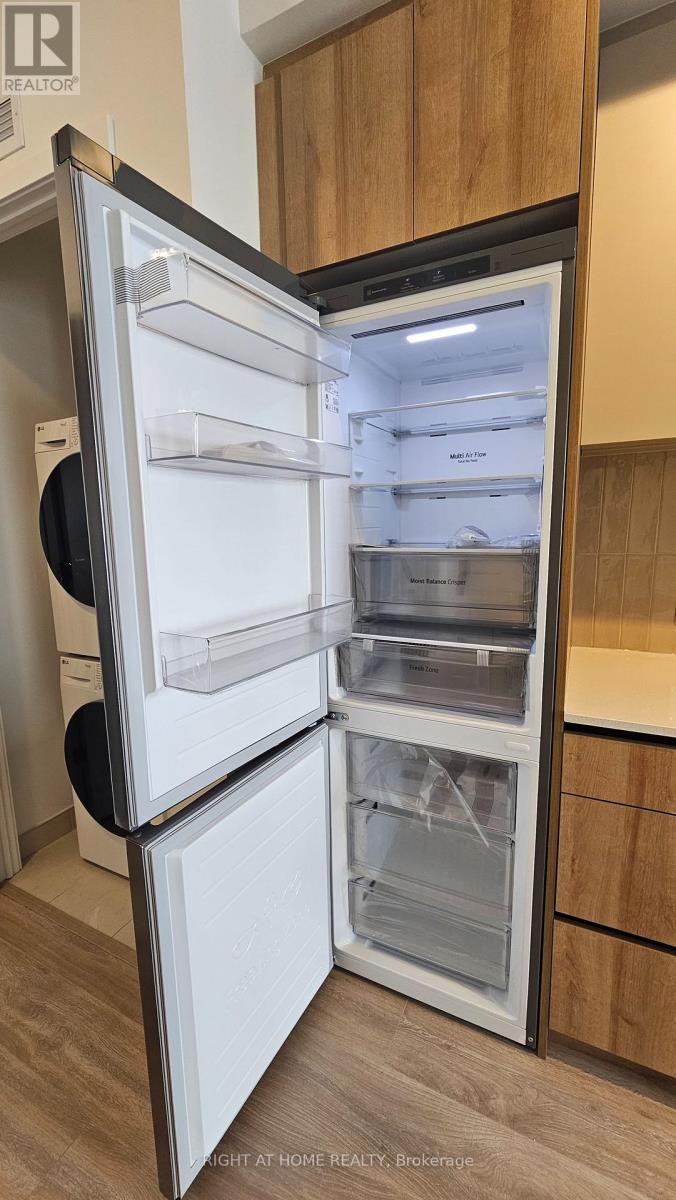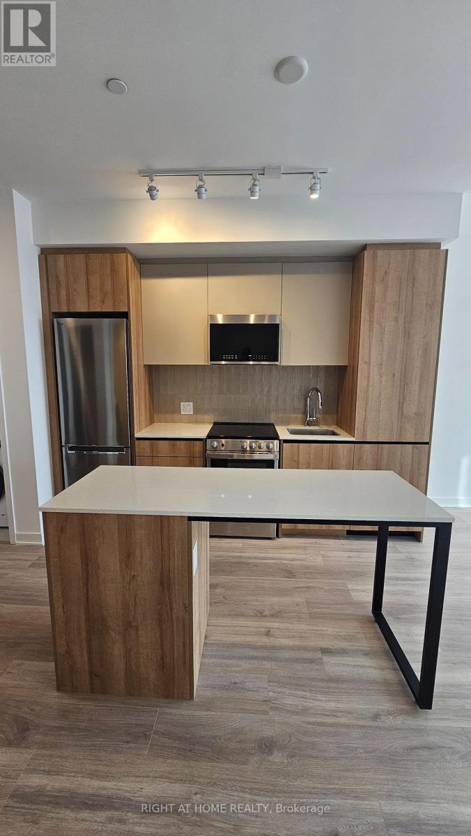 Gorgeous brand new 'never lived in' One Bedroom plus den condo located in the sought after Mount Pleasant area in MPV2 (East Tower) by "Daniels". Excellent layout with 9 foot ceilings, Led lighting, smooth ceilings, laminate plank floors throughout, and a walkout to a large balcony with an unobstructed South view. Property features one parking, LG en-suite laundry. Modern kitchen with quartz counter tops, soft closing cabinetry/drawers, ceramic backsplash, under cabinet lighting, under mount sink, centre island with storage space, paneled GE dishwasher, and stainless steel appliances. Open concept living/dining room area with walk-out to balcony. Primary bedroom with large double mirrored closet. Good sized den ideal for home office. 4 piece bathroom offering vanity with soft closing drawers and soaker tub. Premium building facilities with fitness centre, activity zone, impressive lobby area with 24 hour concierge, co-working space, kid's club, games lounge, party room, outdoor barbeque. Conveniently located just minutes to Mount Pleasant GO Station, shopping, parks, trails, schools, highways, and public transit. All utilities to be paid by tenant. (41981937)