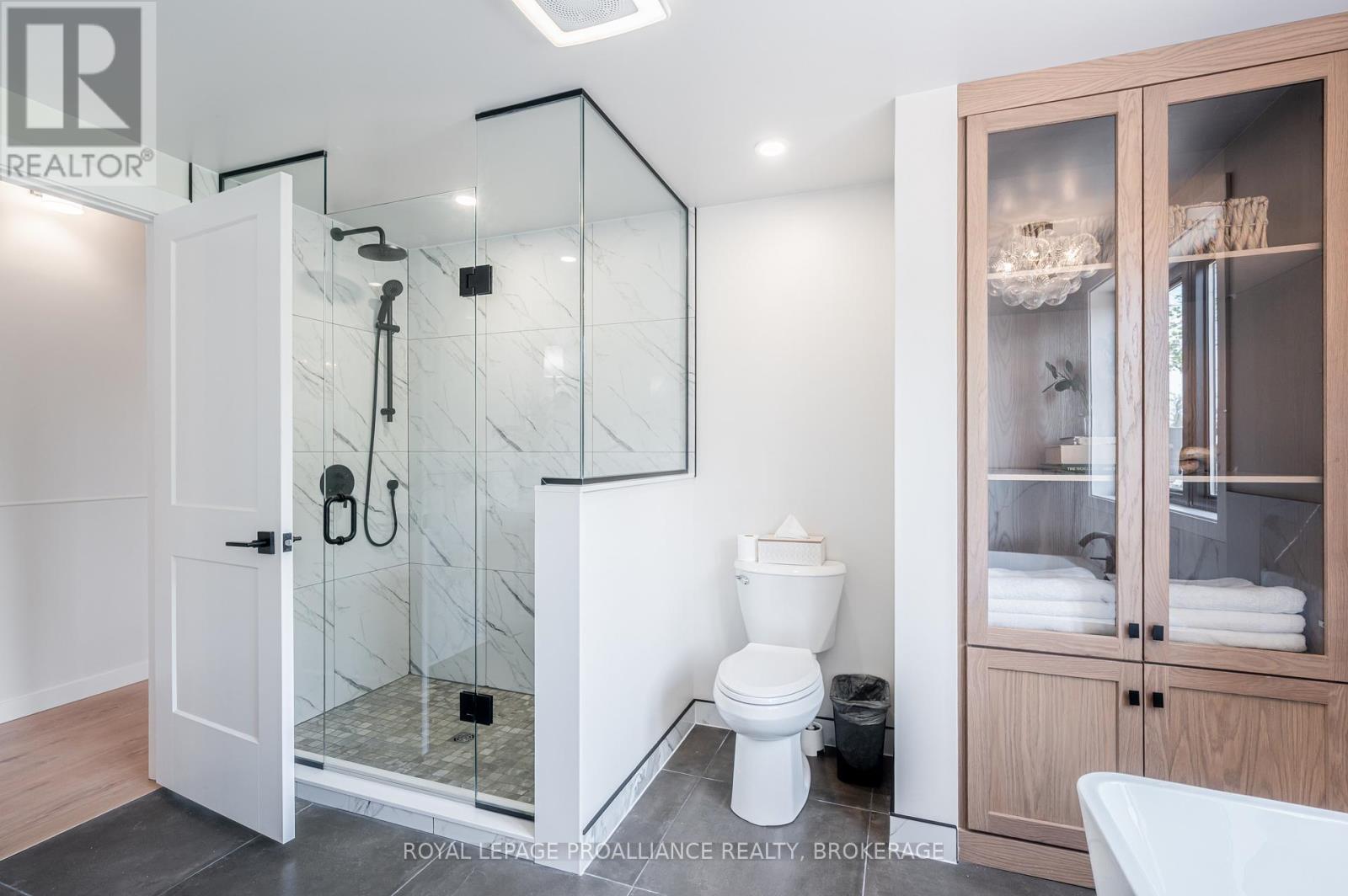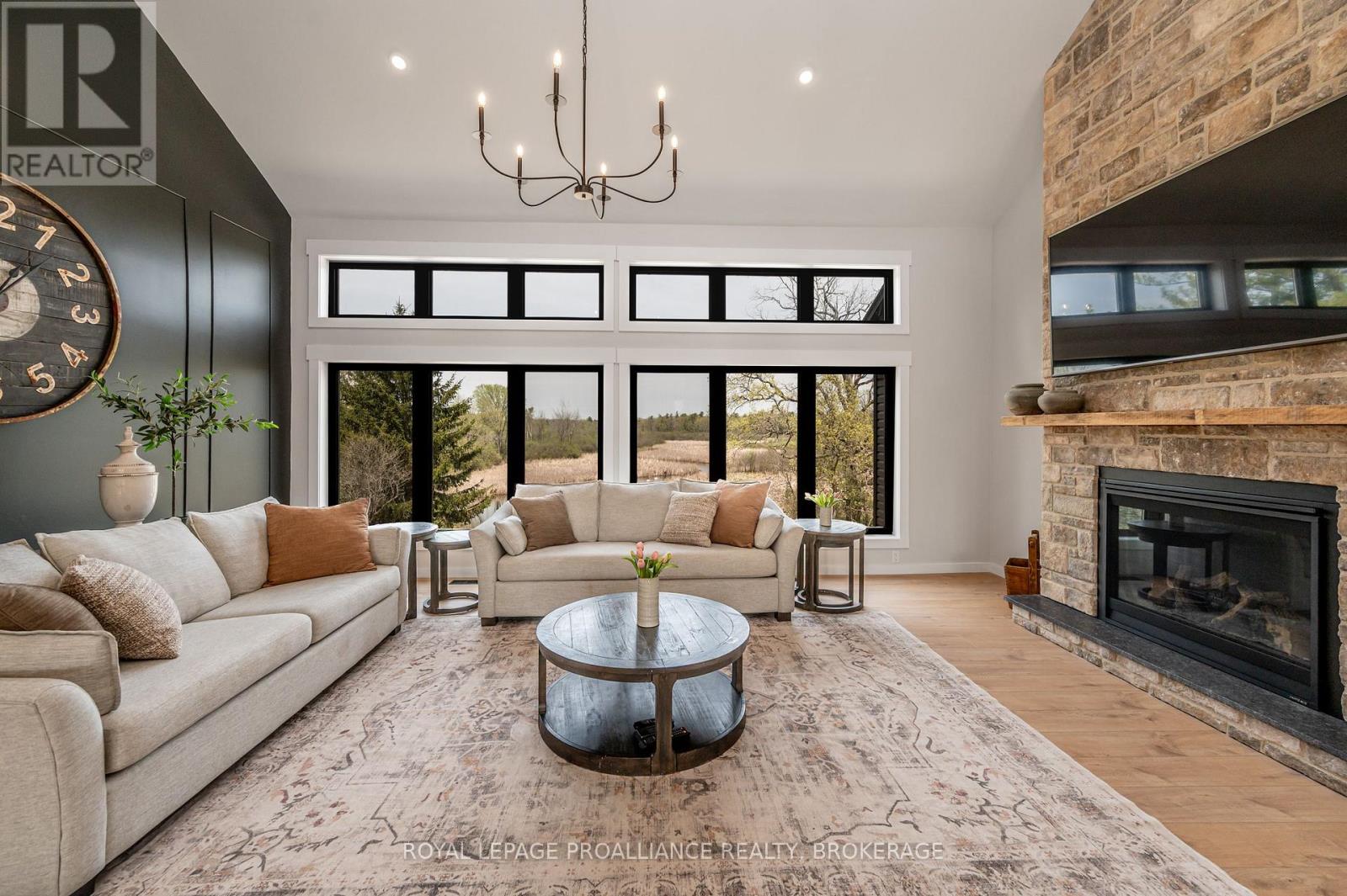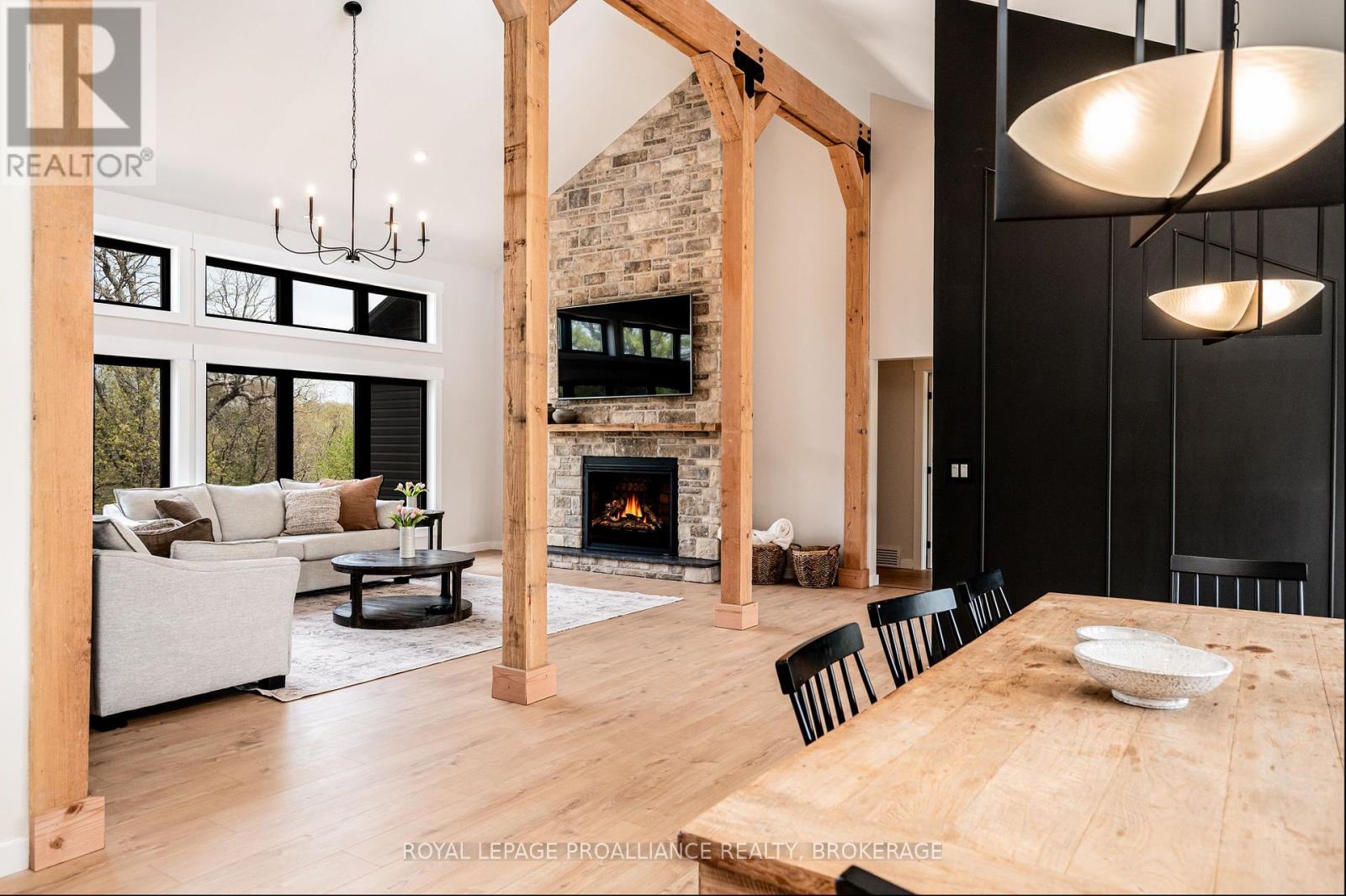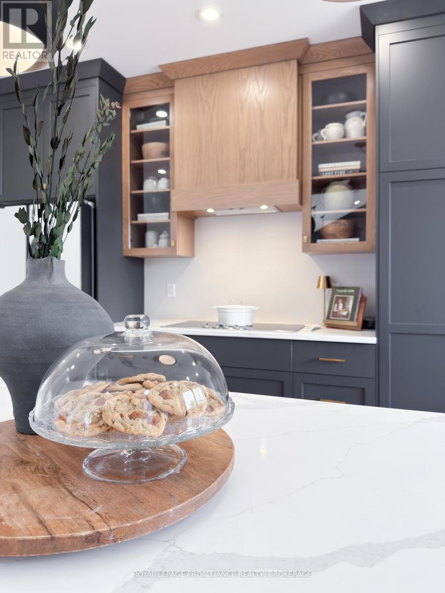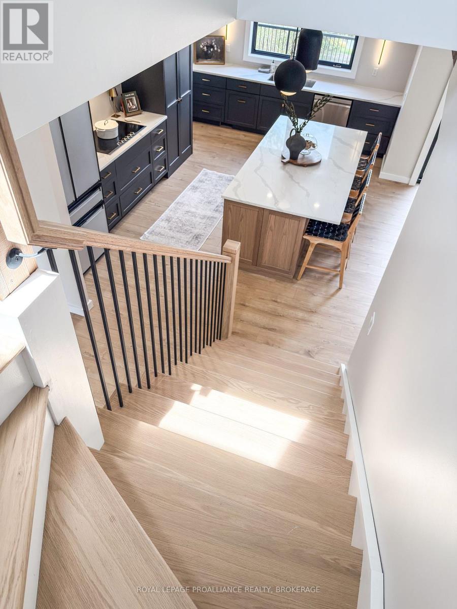Discover this extraordinary 4-bedroom, 3-bathroom residence, beautifully renovated and set on over 30 acres of breathtaking land along Grass Creek. A brand new septic system installed in 2025 adds peace of mind to this already exceptional property. Step inside to soaring vaulted ceilings and an open concept layout filled with natural light. The stunning living room welcomes you with a cozy propane fireplace and rustic posts that seamlessly transition into a grand dining area-spacious enough to host gatherings of 10 or more, creating the perfect setting for lively conversations and unforgettable moments. The remarkable kitchen is a true culinary haven, featuring two toned cabinetry, gleaming white countertops, built in appliances, and an impressive pantry complete with double wall ovens and a wine fridge. This thoughtfully designed space inspires creativity and effortless entertaining. The main floor continues with a convenient laundry room, two generous bedrooms with vaulted ceilings, and a luxurious 4 piece bathroom showcasing a glass shower and deep soaker tub for ultimate relaxation. The second floor is dedicated entirely to the primary suite-a private retreat offering a bright bedroom, a spacious walk in closet, and an exquisite 4 piece ensuite with double sinks and a rejuvenating glass shower. The lower level reveals an inviting family room with a fireplace and a wall of windows framing enchanting views of the creek. Two additional spacious bedrooms, a 3 piece bathroom, and a dedicated gym space complete this versatile level, supporting a lifestyle of comfort and wellness. Step outside to an expansive deck overlooking the serene waterfront-perfect for entertaining, unwinding, or simply soaking in the beauty of nature. With Grass Creek Park just minutes away and downtown Kingston only a 10 minute drive, convenience and tranquility come together seamlessly. This property is a rare treasure-luxury, privacy, and natural beauty all in one extraordinary package. (41982616)