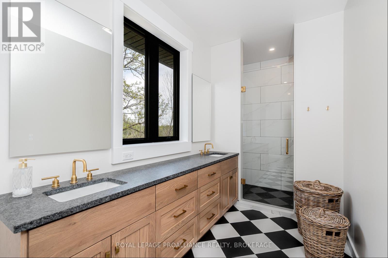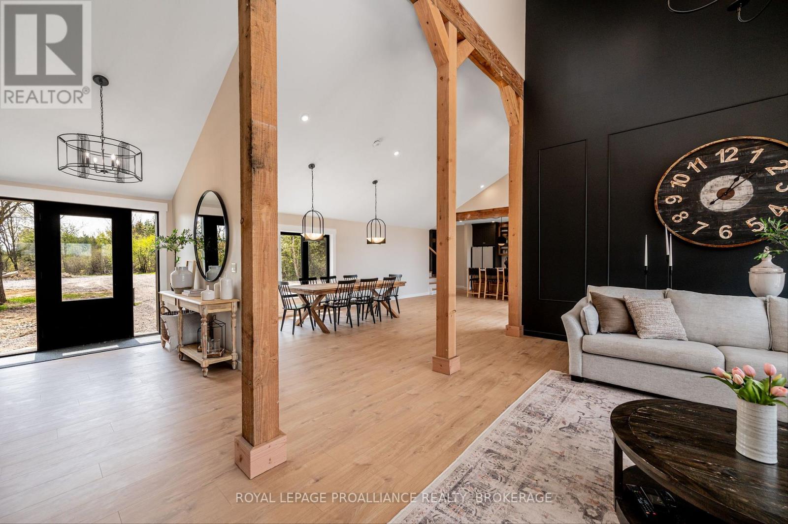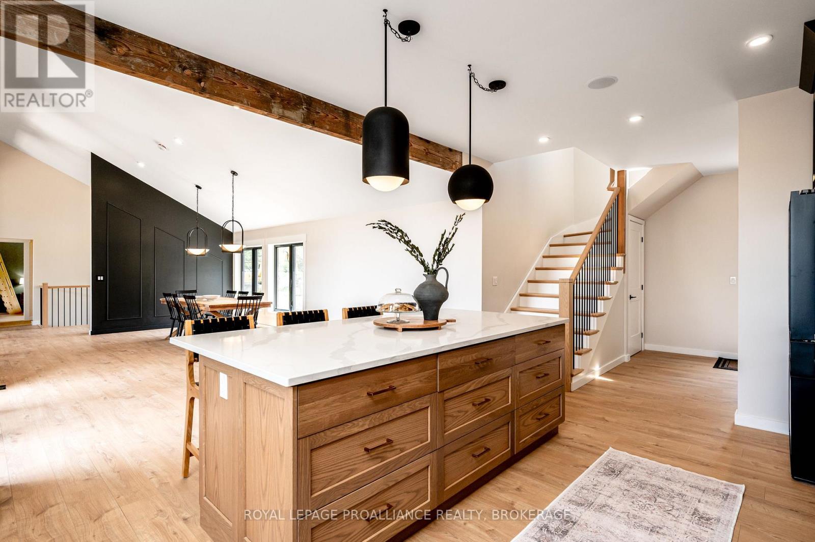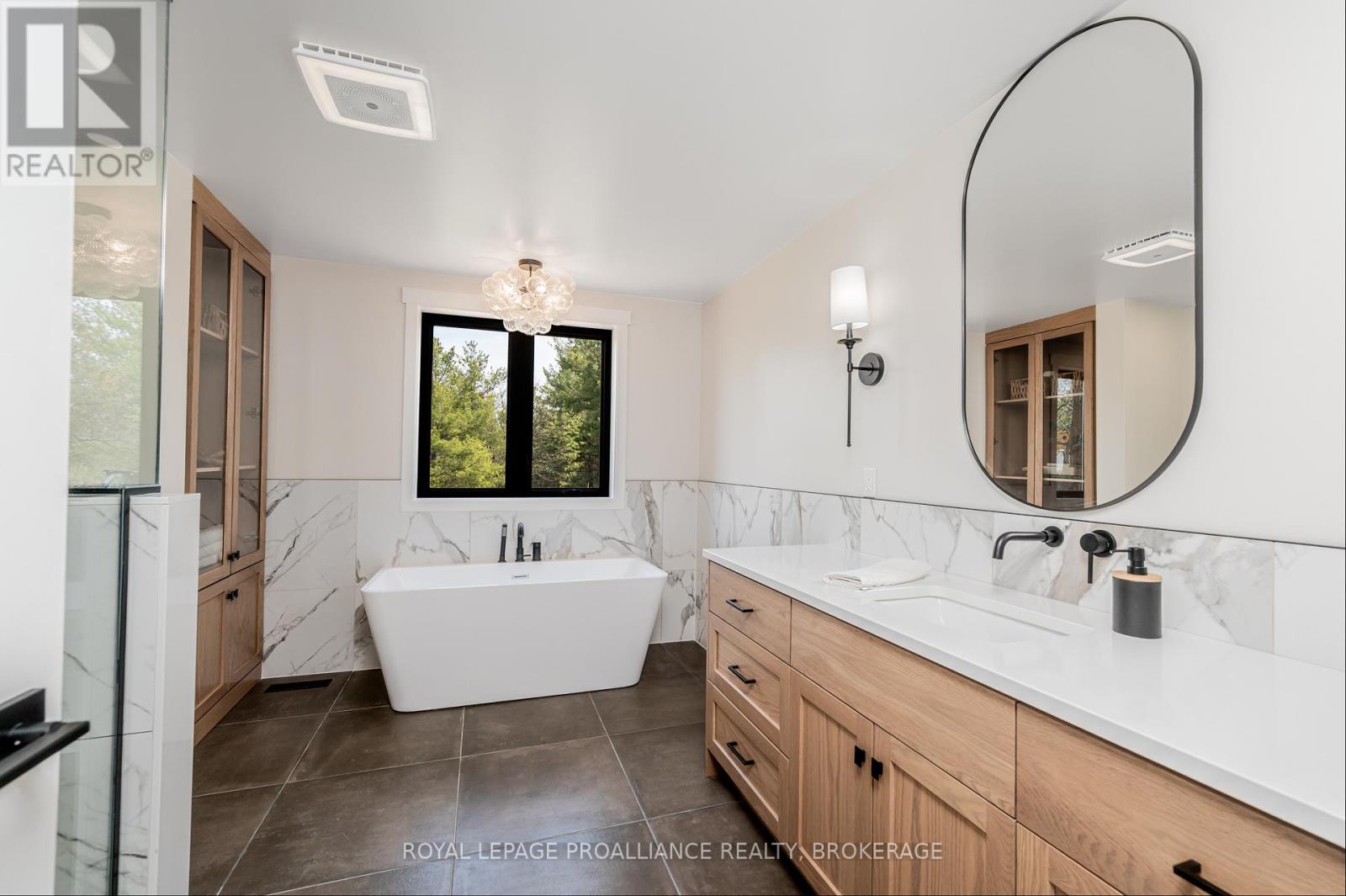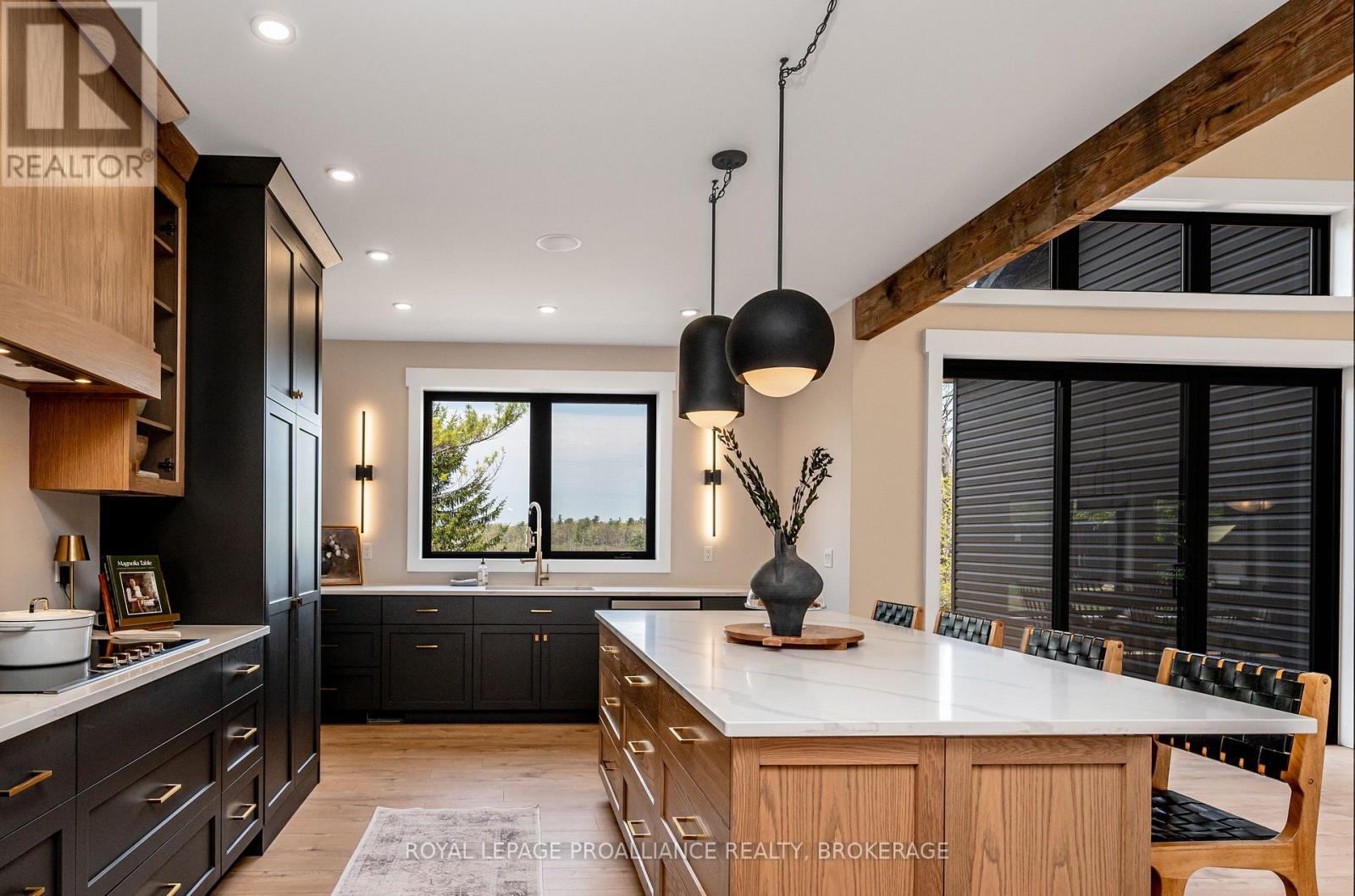 Discover this extraordinary 4-bedroom, 3-bathroom residence, beautifully renovated and set on over 30 acres of breathtaking land along Grass Creek. A brand new septic system installed in 2025 adds peace of mind to this already exceptional property. Step inside to soaring vaulted ceilings and an open concept layout filled with natural light. The stunning living room welcomes you with a cozy propane fireplace and rustic posts that seamlessly transition into a grand dining area-spacious enough to host gatherings of 10 or more, creating the perfect setting for lively conversations and unforgettable moments. The remarkable kitchen is a true culinary haven, featuring two toned cabinetry, gleaming white countertops, built in appliances, and an impressive pantry complete with double wall ovens and a wine fridge. This thoughtfully designed space inspires creativity and effortless entertaining. The main floor continues with a convenient laundry room, two generous bedrooms with vaulted ceilings, and a luxurious 4 piece bathroom showcasing a glass shower and deep soaker tub for ultimate relaxation. The second floor is dedicated entirely to the primary suite-a private retreat offering a bright bedroom, a spacious walk in closet, and an exquisite 4 piece ensuite with double sinks and a rejuvenating glass shower. The lower level reveals an inviting family room with a fireplace and a wall of windows framing enchanting views of the creek. Two additional spacious bedrooms, a 3 piece bathroom, and a dedicated gym space complete this versatile level, supporting a lifestyle of comfort and wellness. Step outside to an expansive deck overlooking the serene waterfront-perfect for entertaining, unwinding, or simply soaking in the beauty of nature. With Grass Creek Park just minutes away and downtown Kingston only a 10 minute drive, convenience and tranquility come together seamlessly. This property is a rare treasure-luxury, privacy, and natural beauty all in one extraordinary package. (41982616)