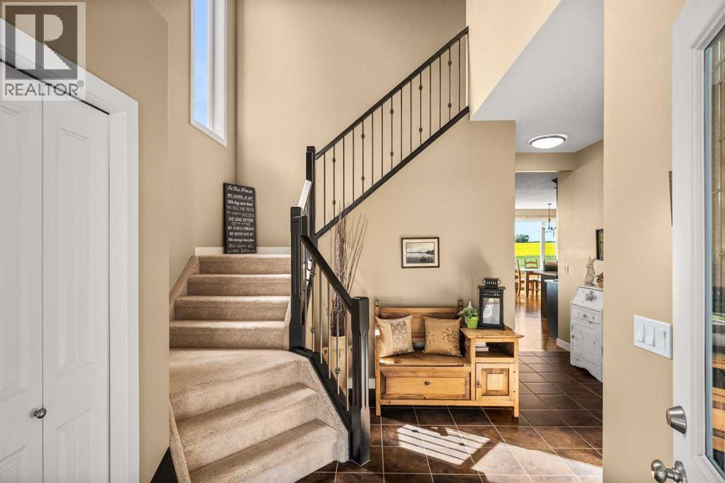 REAR WEST-FACING PROPERTY SITTING ON OVER 1/4 ACRE! The property spans an impressive 0.299 acres and features established fruit trees, raised garden beds and vegetable plots, offering ample opportunities for gardening enthusiasts or those passionate about homegrown produce and canning. Additionally, the lot provides plenty of space for further cultivation, sustainable urban farming or expansive landscaping, making it an ideal choice for the dedicated grower and even the opportunity to build your additional shop/garage if you desire! Nestled in the charming and peaceful community of Carstairs, Alberta, this meticulously maintained, two-story home offers a rare combination of modern elegance, thoughtful design, and serene surroundings. Proudly owned and cared for by its original owner, the home looks and feels brand new, ready to welcome its next family. Situated on one of the largest, beautifully landscaped, pie-shaped lots in this prestigious community, the property boasts a west-facing rear yard with breathtaking views of a picturesque farmer’s field and tranquil pond. Whether you’re enjoying the stunning sunsets from the covered rear deck or relaxing on the welcoming front porch, this home is perfectly positioned to capture the beauty of its surroundings. Inside, the grand foyer impresses with soaring vaulted ceilings and an abundance of natural light, creating a warm and inviting atmosphere throughout. The thoughtful layout includes a walk-through pantry that connects the spacious kitchen directly to the garage, making everyday tasks like grocery trips a breeze. The living room features a cozy gas fireplace, perfect for relaxing evenings with family or friends. Upstairs, the spacious, elegant primary bedroom serves as a luxurious retreat, complete with a spa-inspired five piece ensuite featuring a jetted tub, dual sinks, and a separate shower for ultimate comfort and convenience. Second level laundry and two more bedrooms with a four piece bath complete the upper level. The outdoor space is equally impressive, with a large landscaped yard that provides ample room for outdoor activities and relaxation. The unobstructed views of the Alberta's prairie landscape create a peaceful, park-like setting, perfect for entertaining or enjoying quiet moments in nature. From the deck, one can enjoy the sight of a wide variety of migratory birds, while the expansive open sky provides the perfect backdrop for stargazing. Located just a short drive from Calgary, Carstairs offers the charm of small-town living with the convenience of city amenities close by. This exceptional property is a rare gem, combining modern features, meticulous upkeep, and unbeatable views. Don’t miss your chance to make it your new home—schedule your private showing today! (31549935)