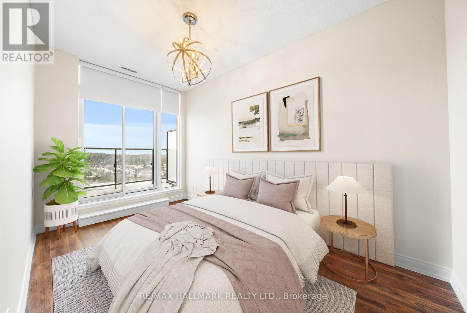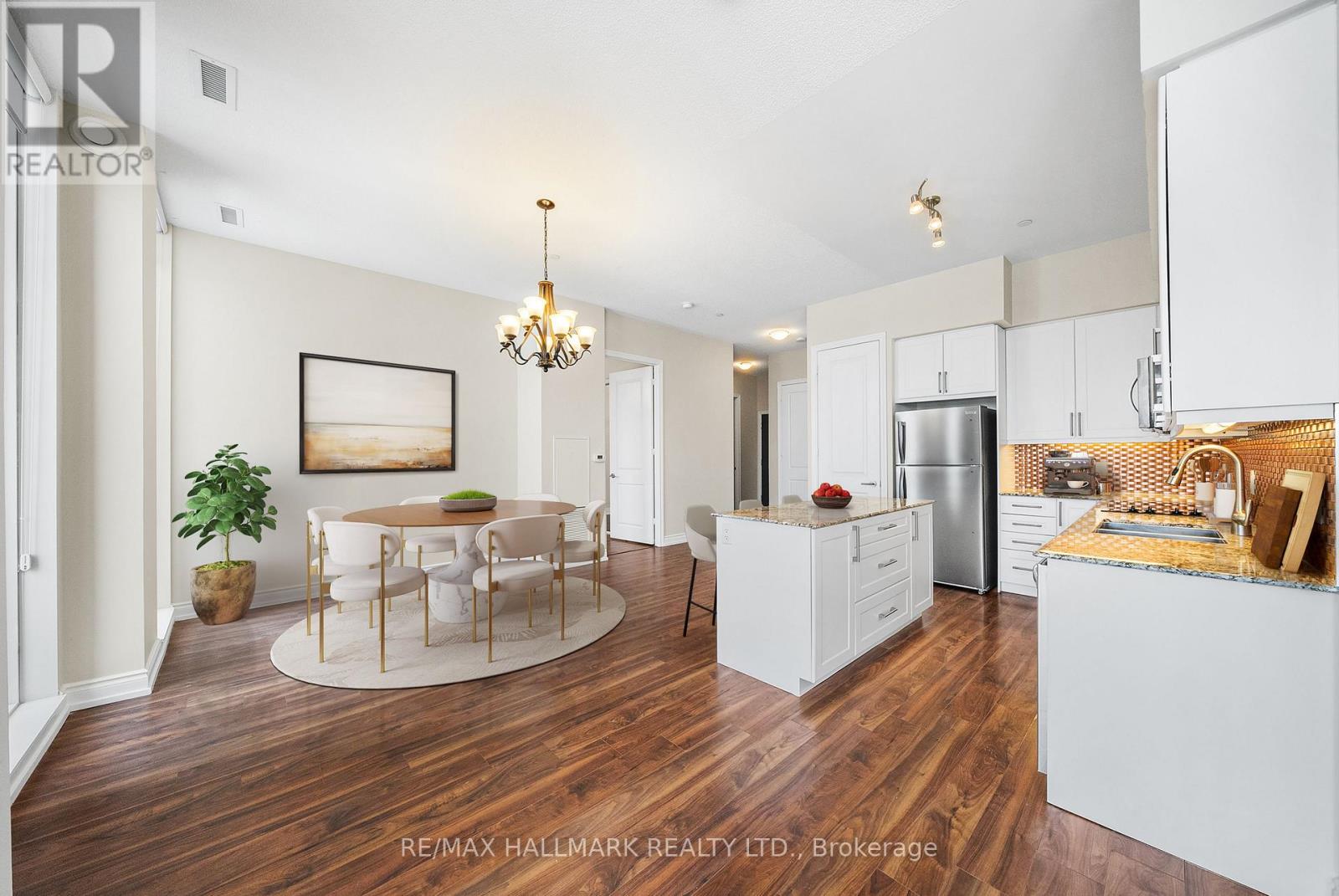Welcome to PH06 at 9600 Yonge Street, a truly rare offering that elevates luxury living to the pinnacle of Richmond Hill. This exquisite 1,295 sq. ft. penthouse showcases a bright, open-concept design with soaring 10' ceilings and floor-to-ceiling windows that capture breathtaking panoramic east and northeast views. The sophisticated living and dining areas seamlessly connect to a chef-inspired kitchen featuring granite countertops, stainless steel appliances, and a stylish breakfast bar-perfect for both everyday living and elegant entertaining. Laminate flooring and pot lights add refined, modern finishes throughout. Two private balconies, one equipped with a gas BBQ line, providing the ideal setting to relax or host guests while taking in the skyline views. The well-designed layout includes two spacious bedrooms, each offering a closet and a beautifully appointed ensuite. A private locker conveniently located directly in front of your parking spot adds everyday practicality. Residents benefit from the exceptional Grand Palace amenities, including 24/7 concierge, indoor pool, sauna, gym, yoga studio, party room, guest suites, visitor parking, and a rooftop terrace. All of this is just steps from Hillcrest Mall, dining, transit, and top-rated schools, delivering the perfect blend of luxury, comfort, and convenience. *Some photos have been virtually staged* (41982849)