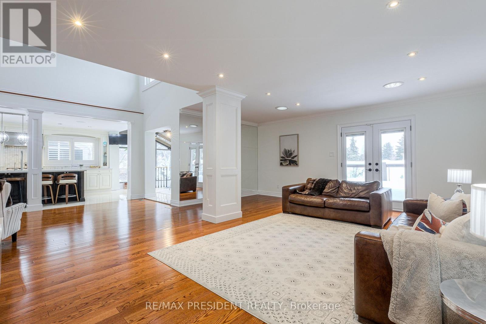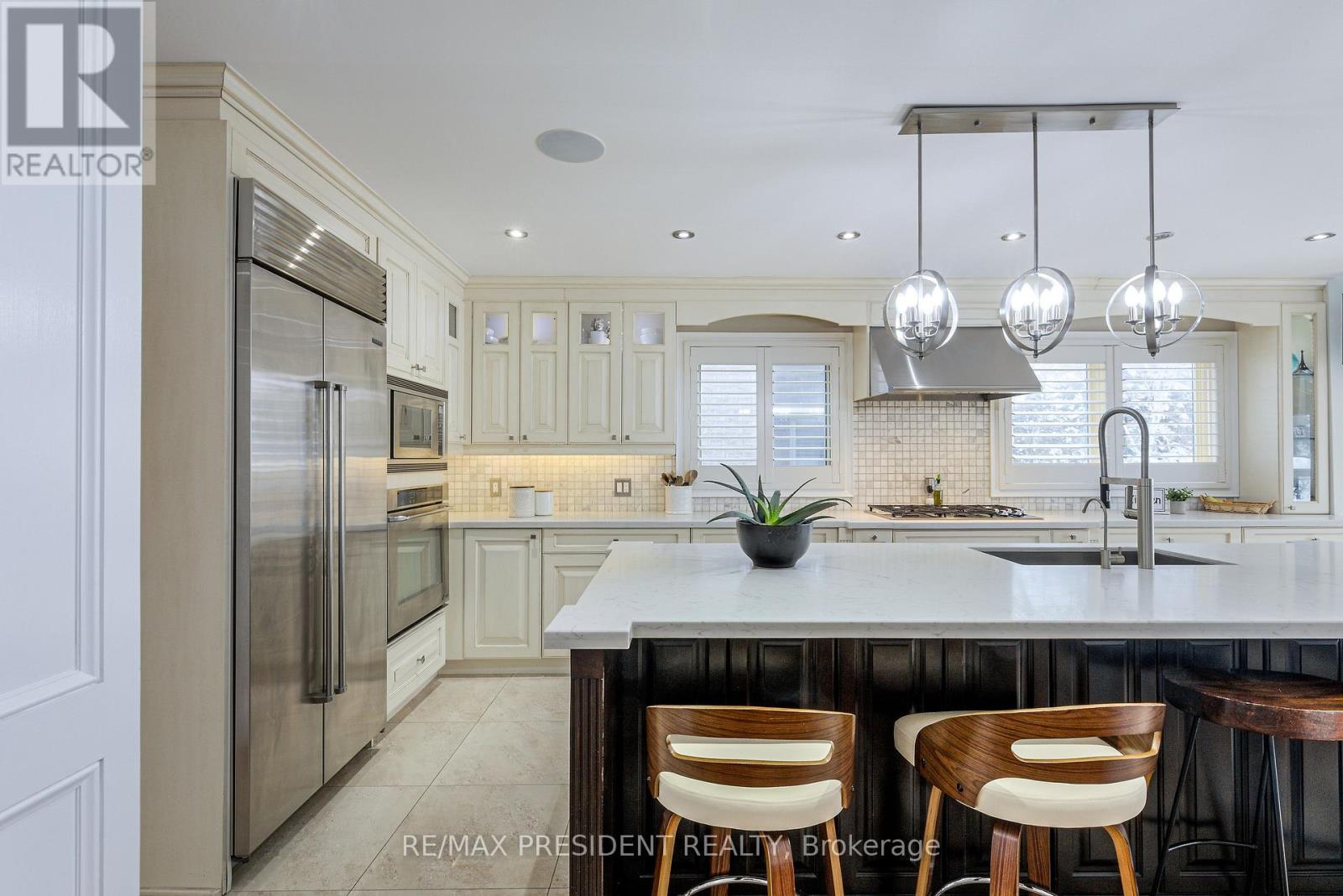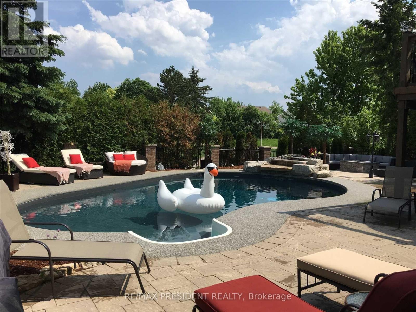 Luxury, privacy, and entertainer's paradise at 42 Mount Forest. This 3,600 sq ft all-brick home sits on a rare 65' x 130' lot backing onto a serene greenbelt and trails. Featuring a 3-car garage and professionally landscaped grounds, the backyard boasts an underground pool, interlocking stone, and a dramatic stone waterfall. Step inside to a grand foyer with designer chandeliers and custom wainscoting. Sunken living and dining rooms are perfect for hosting, while the gourmet kitchen features high-end Sub-Zero and Dacor appliances, a 10' quartz island, marble backsplash, and overlooks a sitting area with a two-storey stone gas fireplace. Family room with custom TV wall unit and deck access. Two-level glass solarium with private greenbelt views, custom espresso bar, and cast-iron staircase. Second floor hosts four spacious bedrooms. The primary suite features a 4-piece ensuite, enormous walk-in closet, and custom wall unit. The second full bathroom is fully renovated, spa-like, with a custom curbless shower. No carpet throughout. Walkout basement includes a hot tub, sauna, custom home theatre ($250K invested), and two full-size bathrooms. Backyard oasis perfect for entertaining with pool and waterfall. A rare luxury home designed for comfort, style, and unforgettable gatherings. (41982877)