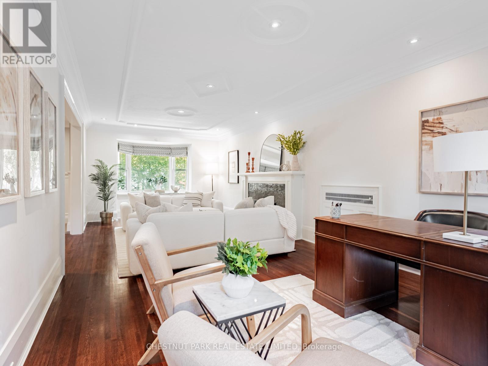 In the heart of Lytton Park, nestled in a picturesque ravine-like setting, this timeless family home exudes warmth, character & thoughtful modern upgrades.A classic centre-hall plan offers an inviting layout filled with charm-featuring hardwood floors, crown moulding, wainscoting, and beautiful proportions throughout.The modern Scavolini kitchen is a showpiece, boasting quartz countertops, high-end appliances, wine fridge & a large centre island. It flows into the dining room, complete with an EcoSmart gel fireplace & a backlit walnut feature wall-creating a sophisticated space perfect for entertaining or relaxed family living.Upstairs, three spacious bedrooms offer flexibility-each large enough to serve as a primary suite. The actual primary bedroom features a renovated 4-piece ensuite, while the other two have plenty of closet space & room for all you need plus a renovated 4pc Hall bathroom.The lower level is bright & inviting, with large windows, a side entrance, and a walkout to the backyard. The back of the house is almost entirely above grade & offers excellent ceiling height with sunny rooms incl a recreation room, 4th bedroom, laundry room & plenty of storage.This tastefully renovated home has had many mechanical upgrades incl: plumbing, electrical, most windows, tankless HWT, Boiler & More. Outdoors, a private south-facing lot provides an exceptional retreat surrounded by mature trees. Enjoy a saltwater pool with an outdoor shower, a Swedish sauna (housed in the converted garage), & a fully fenced yard-an oasis for relaxation or entertaining. Once owned by the celebrated Canadian poet E.J. Pratt, this home carries a rich history and enduring appeal. With its stone front patio, lush greenery, & classic curb appeal, it stands as a beautiful blend of tradition & modern living.Located within walking distance to Toronto's most coveted public and private schools, this exceptional residence offers the perfect balance of serenity, sophistication & city convenience. (41983071)
