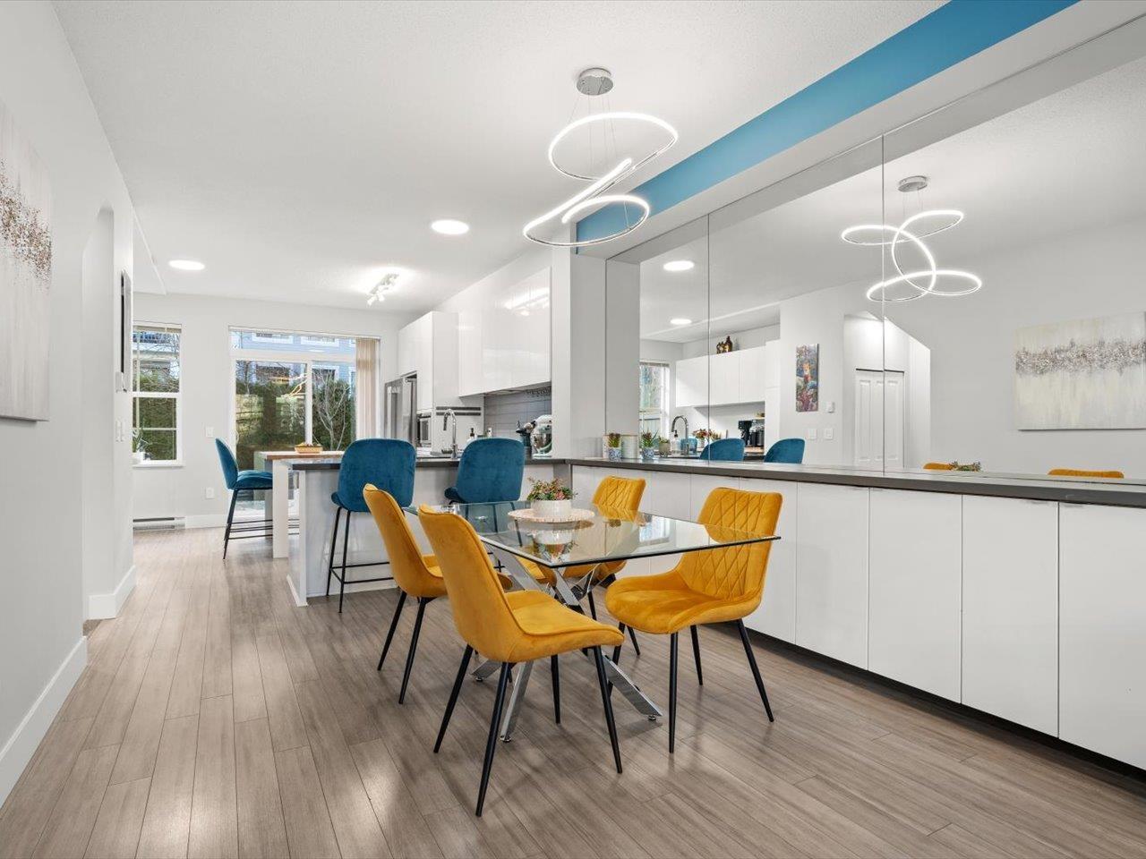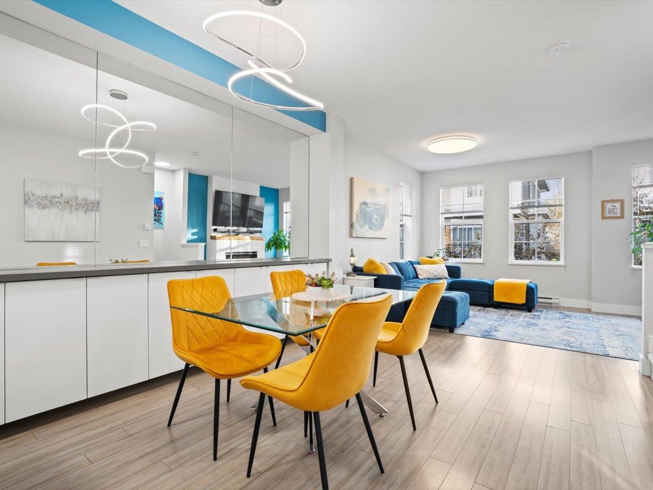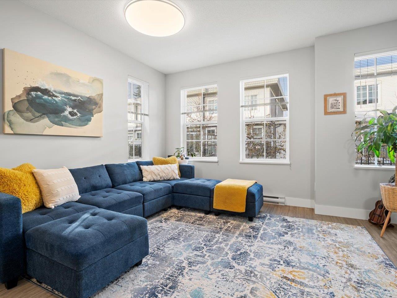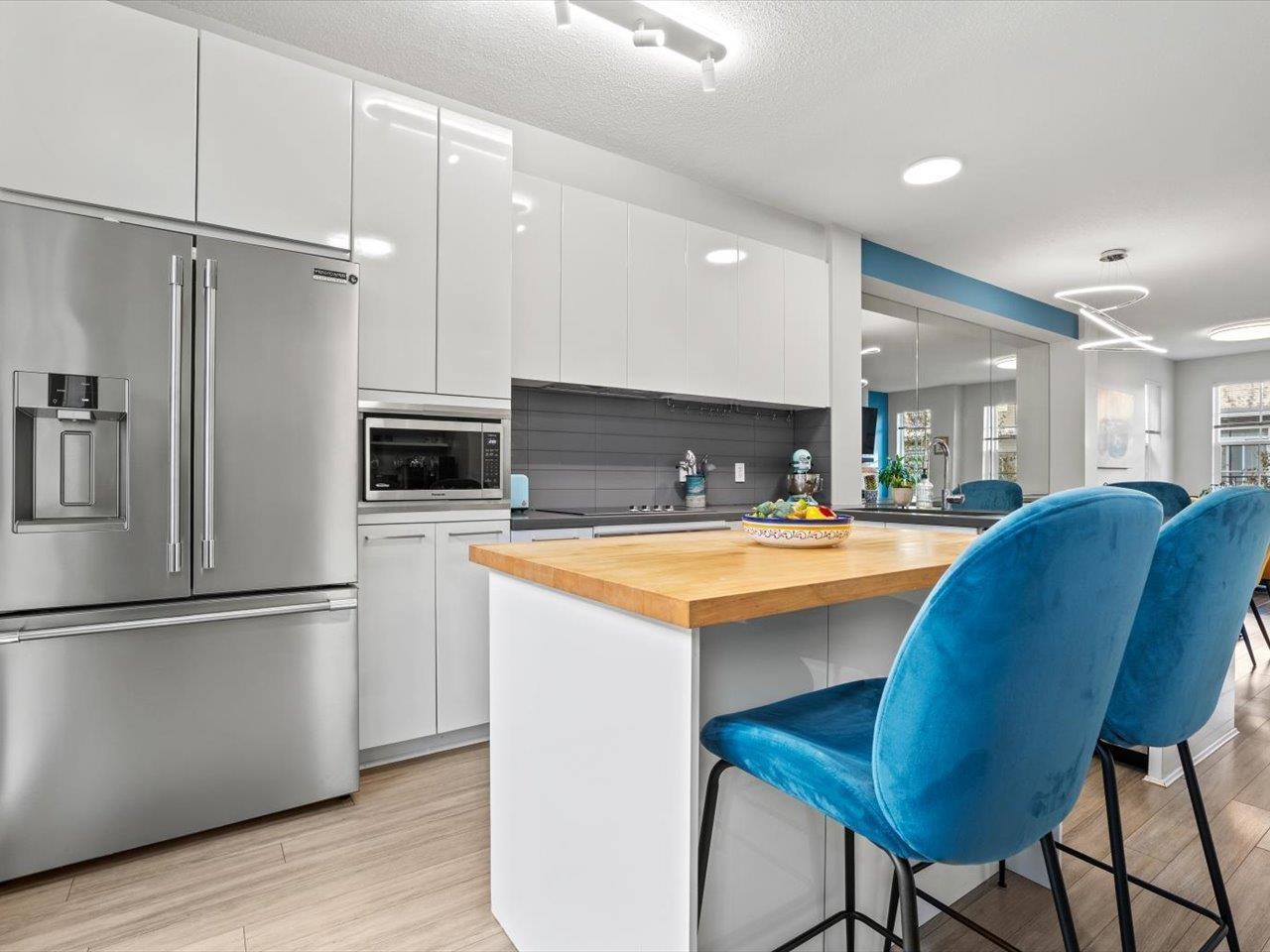 Welcome to Laureates Walk by Polygon. This beautifully refreshed 3 bed/2 bath end unit townhome offers bright & modern living. Enjoy 9ft ceilings and a south-facing private backyard directly off the kitchen. Recent updates include fresh paint on ceilings/walls/trim/doors, carpet, updated lighting, epoxy garage floor and a lifetime hot water tank. The kitchen features a new Frigidaire Professional Series appliance package with induction cooktop & convection oven. Convenient laundry location is upstairs with the bedrooms. The garage is thoughtfully designed to allow for additional storage or workshop space. Residents enjoy premium amenities - swimming pool, hot tub, theatre room, guest suite & more. Ideal South Surrey location near restaurants, shops & walking trails. 2 pets allowed. (32351165)