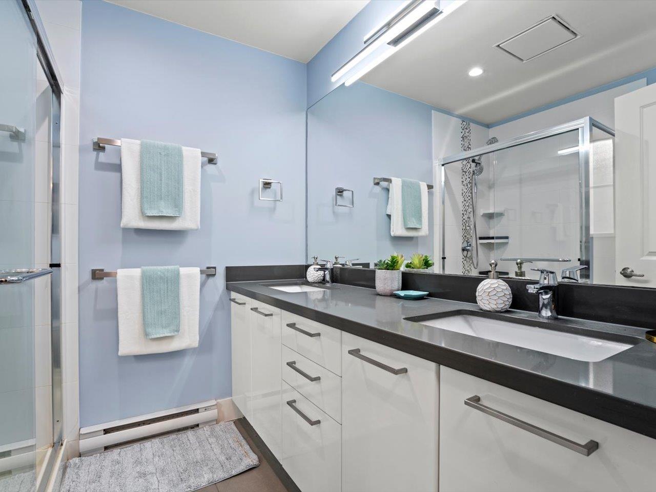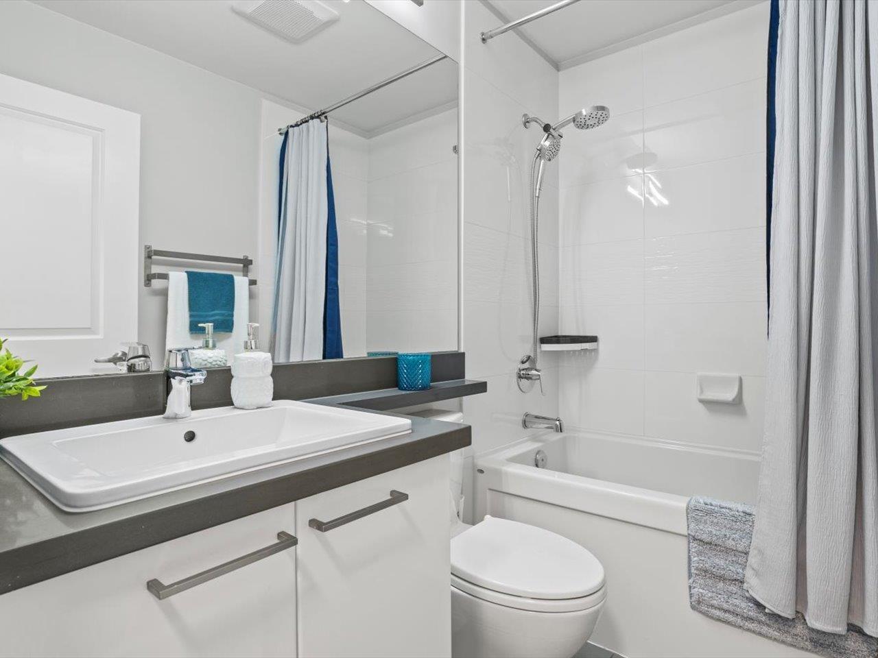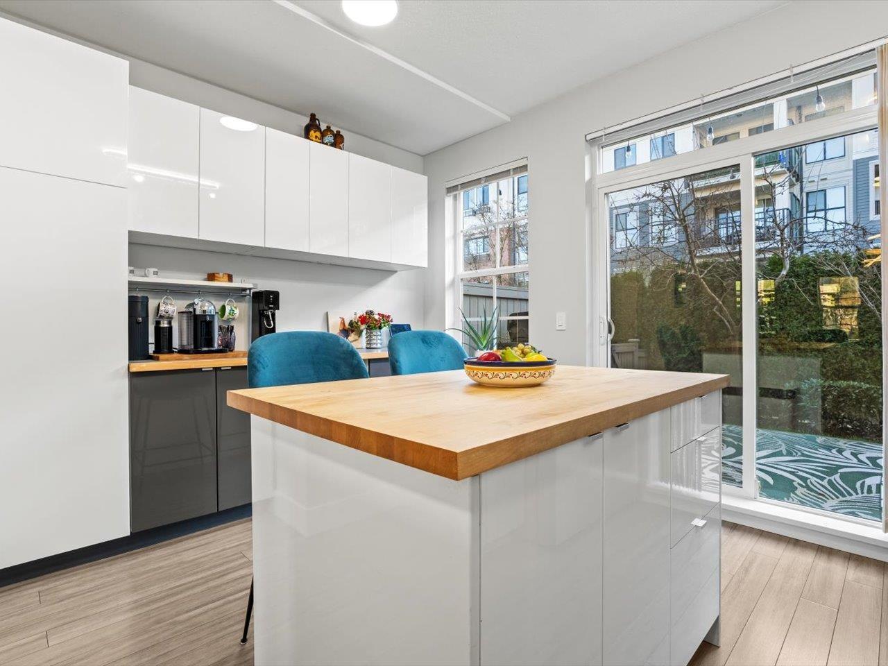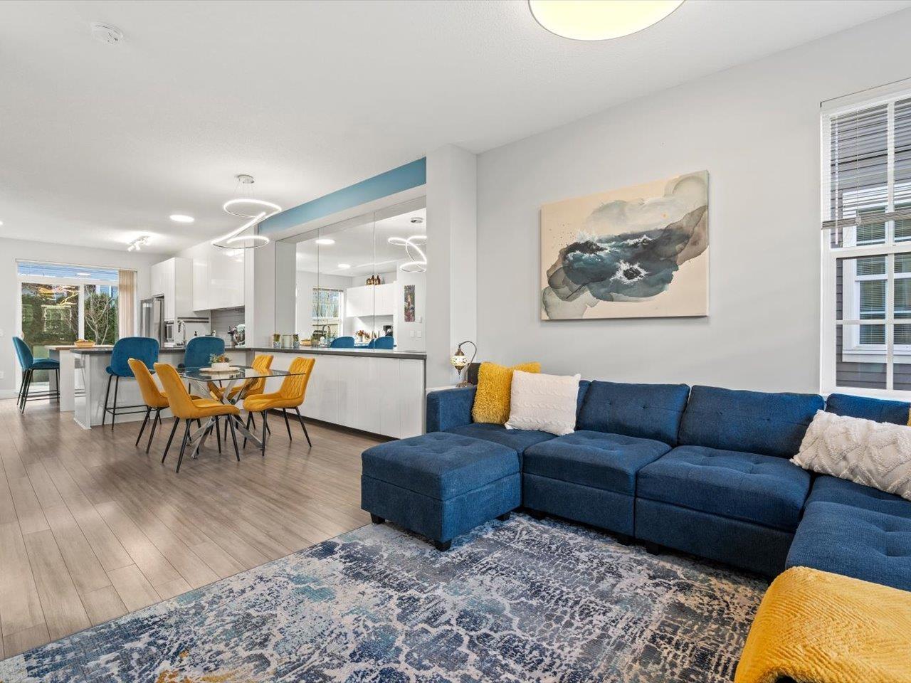 Welcome to Laureates Walk by Polygon. This beautifully refreshed 3 bed/2 bath end unit townhome offers bright & modern living. Enjoy 9ft ceilings and a south-facing private backyard directly off the kitchen. Recent updates include fresh paint on ceilings/walls/trim/doors, carpet, updated lighting, epoxy garage floor and a lifetime hot water tank. The kitchen features a new Frigidaire Professional Series appliance package with induction cooktop & convection oven. Convenient laundry location is upstairs with the bedrooms. The garage is thoughtfully designed to allow for additional storage or workshop space. Residents enjoy premium amenities - swimming pool, hot tub, theatre room, guest suite & more. Ideal South Surrey location near restaurants, shops & walking trails. 2 pets allowed. (32351165)