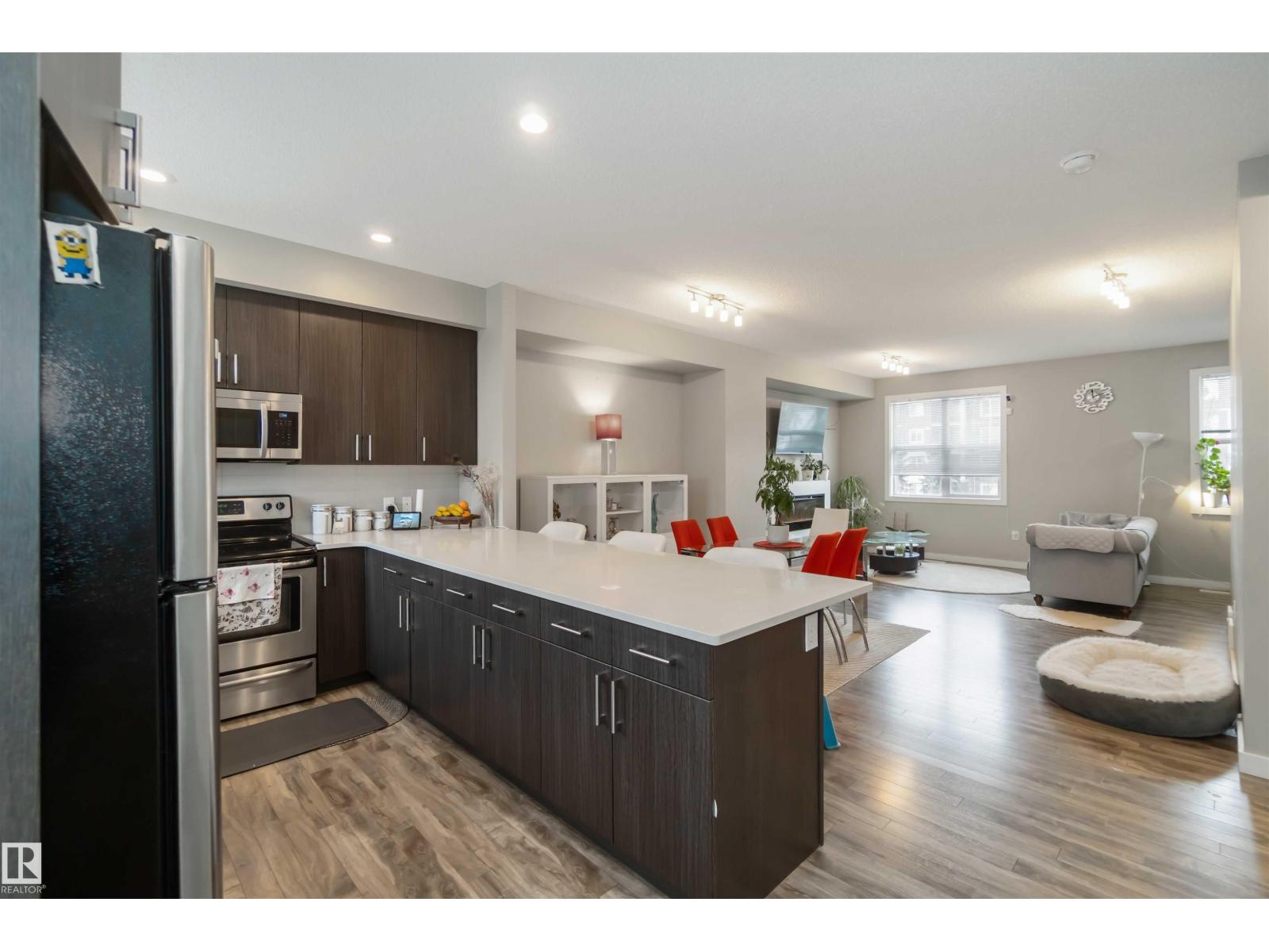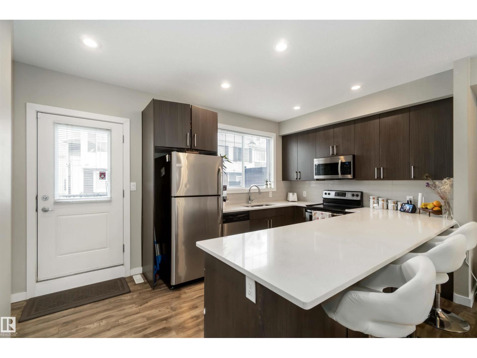 Welcome to this beautiful 3-storey townhome in sought-after Callaghan, SW Edmonton. Offering 1,520 sq ft, this well-maintained home features 3 bedrooms upstairs, a main-level living space, and a lower-level office, perfect for today’s lifestyle. Built in 2014, it blends comfort, functionality, and convenience. The bright main level showcases a modern kitchen with quartz countertops, ample cabinetry, and access to a private balcony. The open-concept dining and living areas are filled with natural light from large windows. Upstairs, the primary bedroom includes a private ensuite, two additional bedrooms, a full bath, and upper-floor laundry. Enjoy unbeatable location—Superstore and shopping plaza across the street, bus stop just 30 seconds away, Dr. Anne Anderson School, Rec center, and Splash park only 3 minutes away, plus quick access to major routes. Ideal for first-time buyers or investors with strong rental demand. (33741404)